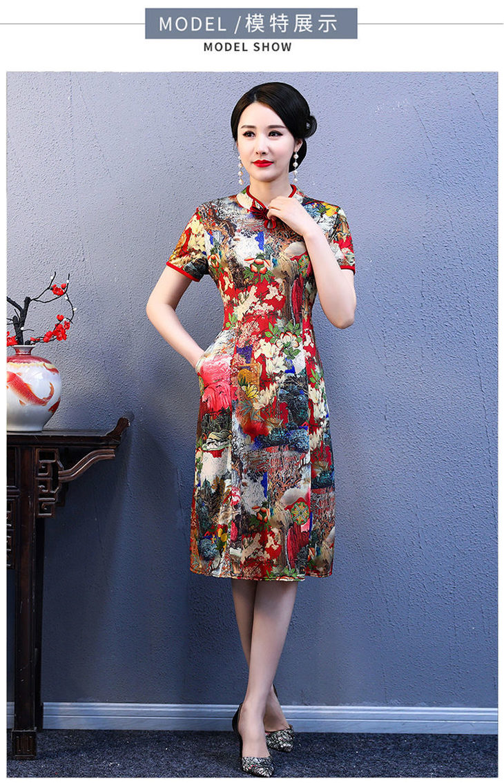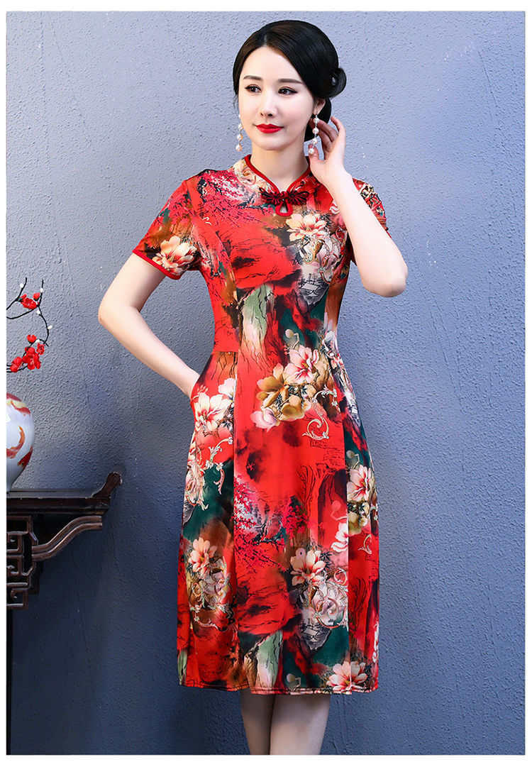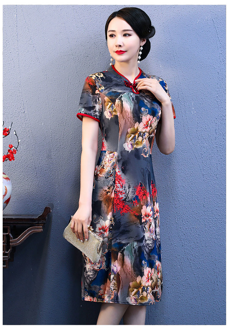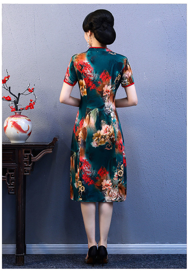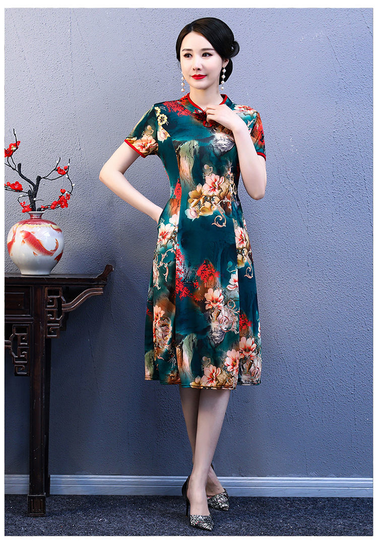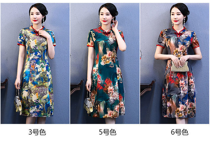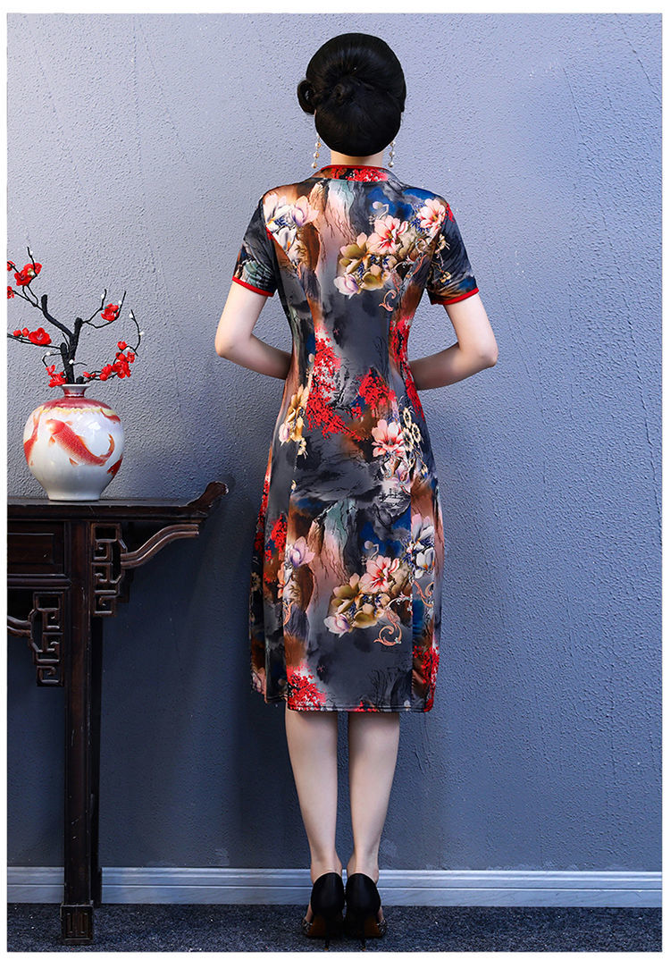 JXG-新款妈妈女装改良旗袍无开衩短袖礼服女连衣裙中老年复古洋气夏装