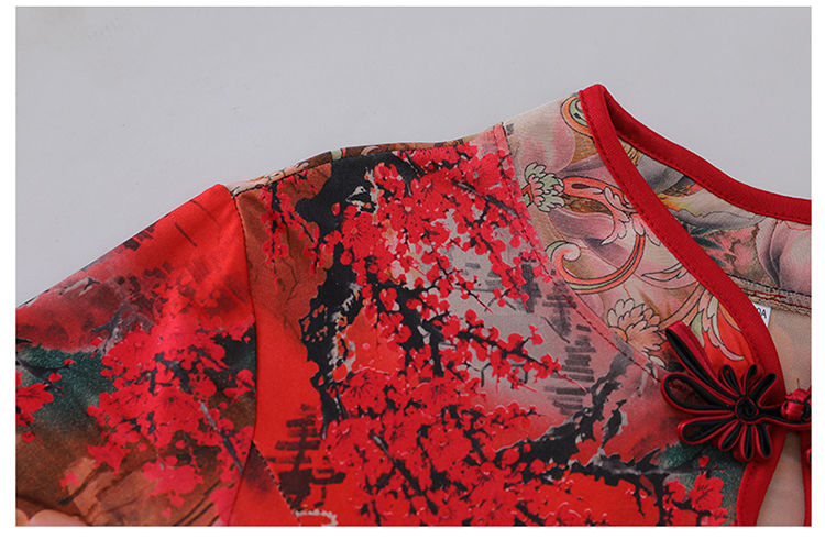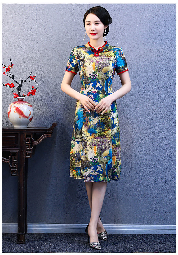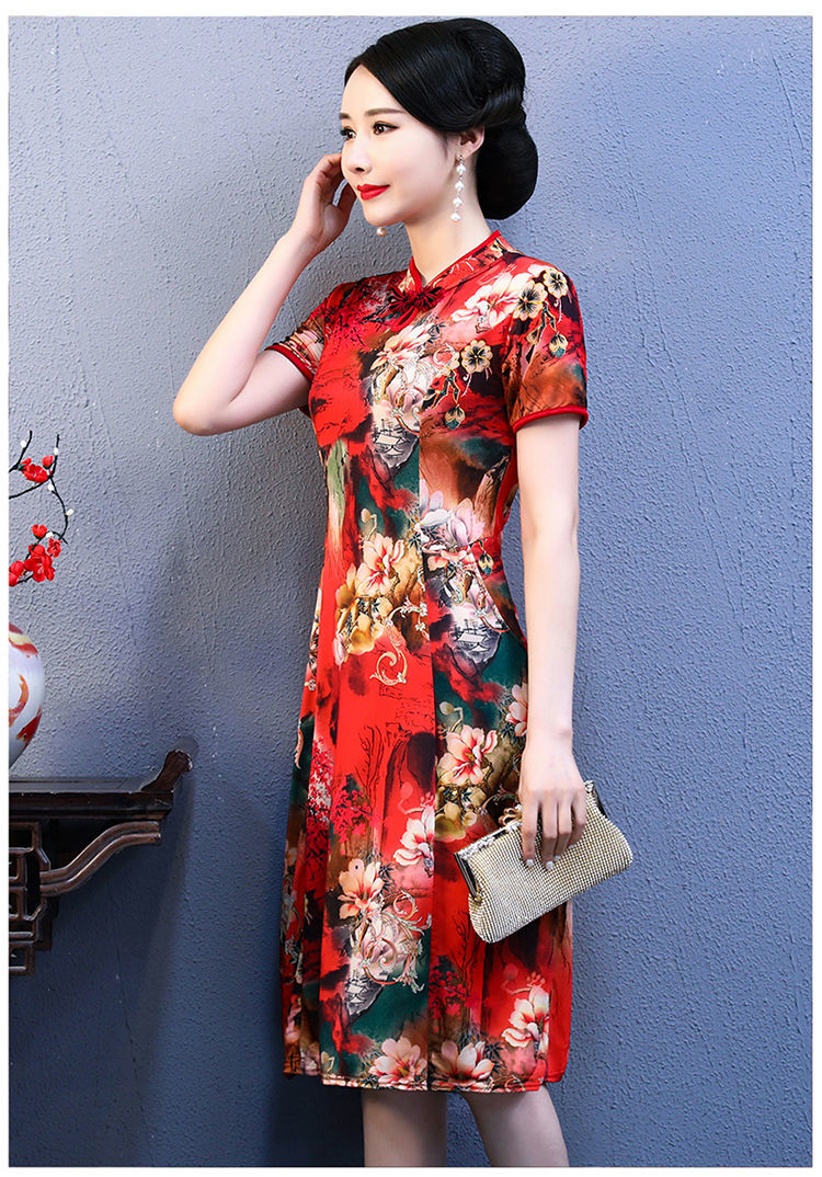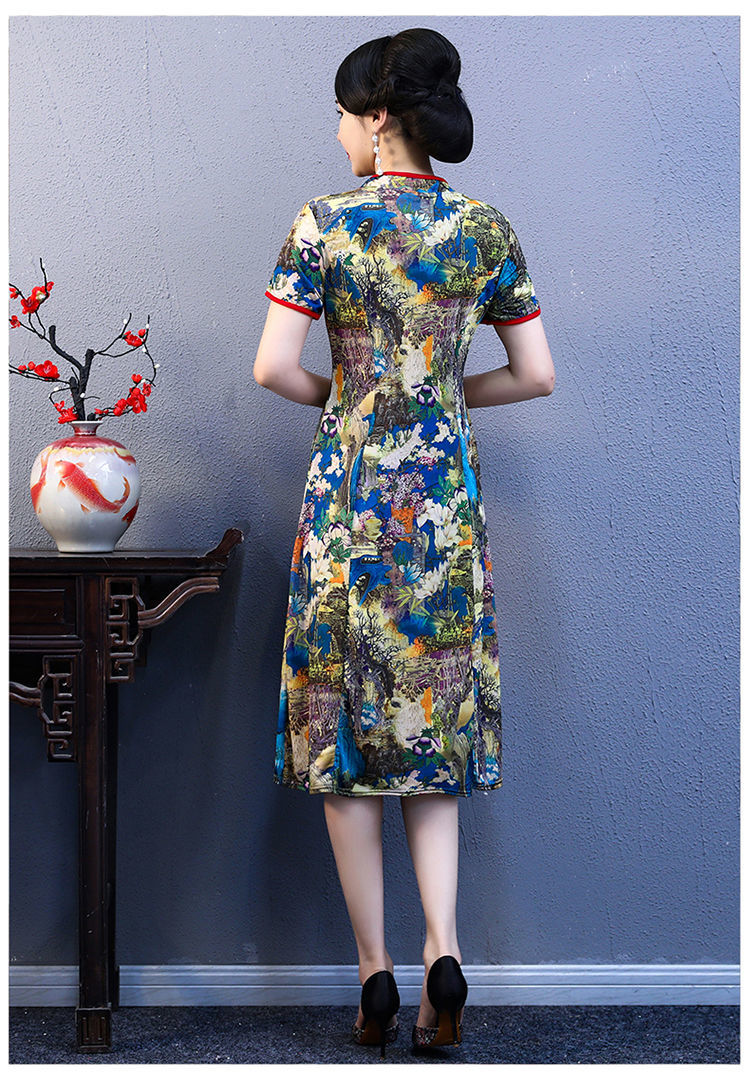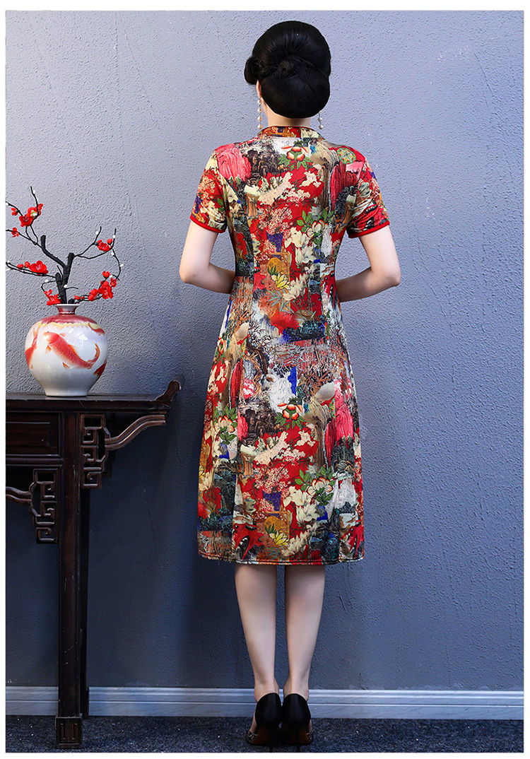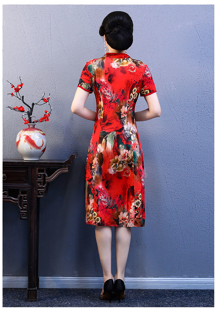 JXG-新款妈妈女装改良旗袍无开衩短袖礼服女连衣裙中老年复古洋气夏装