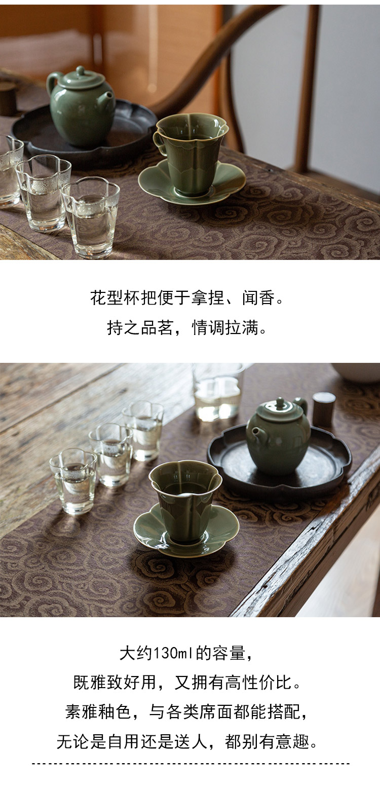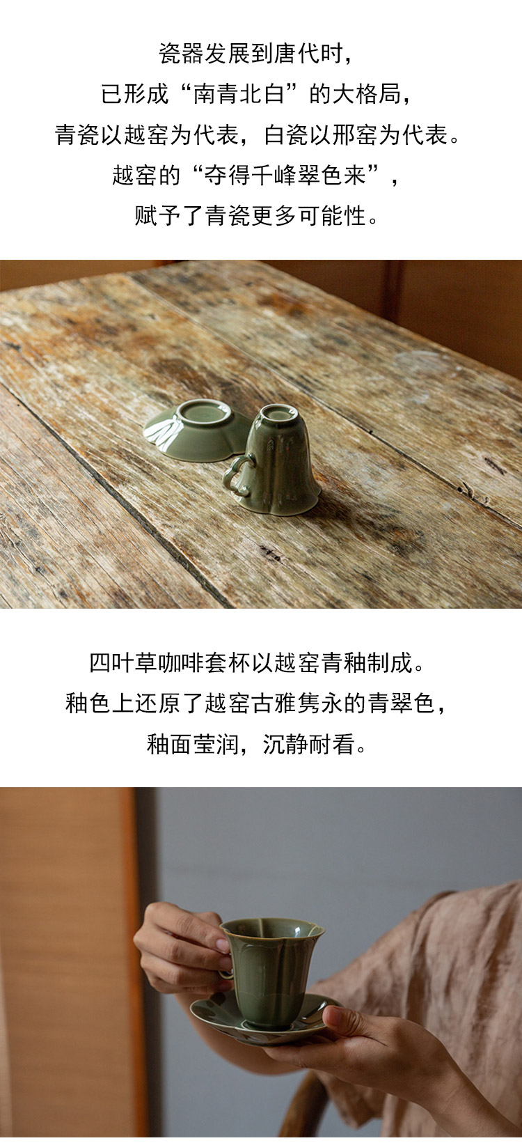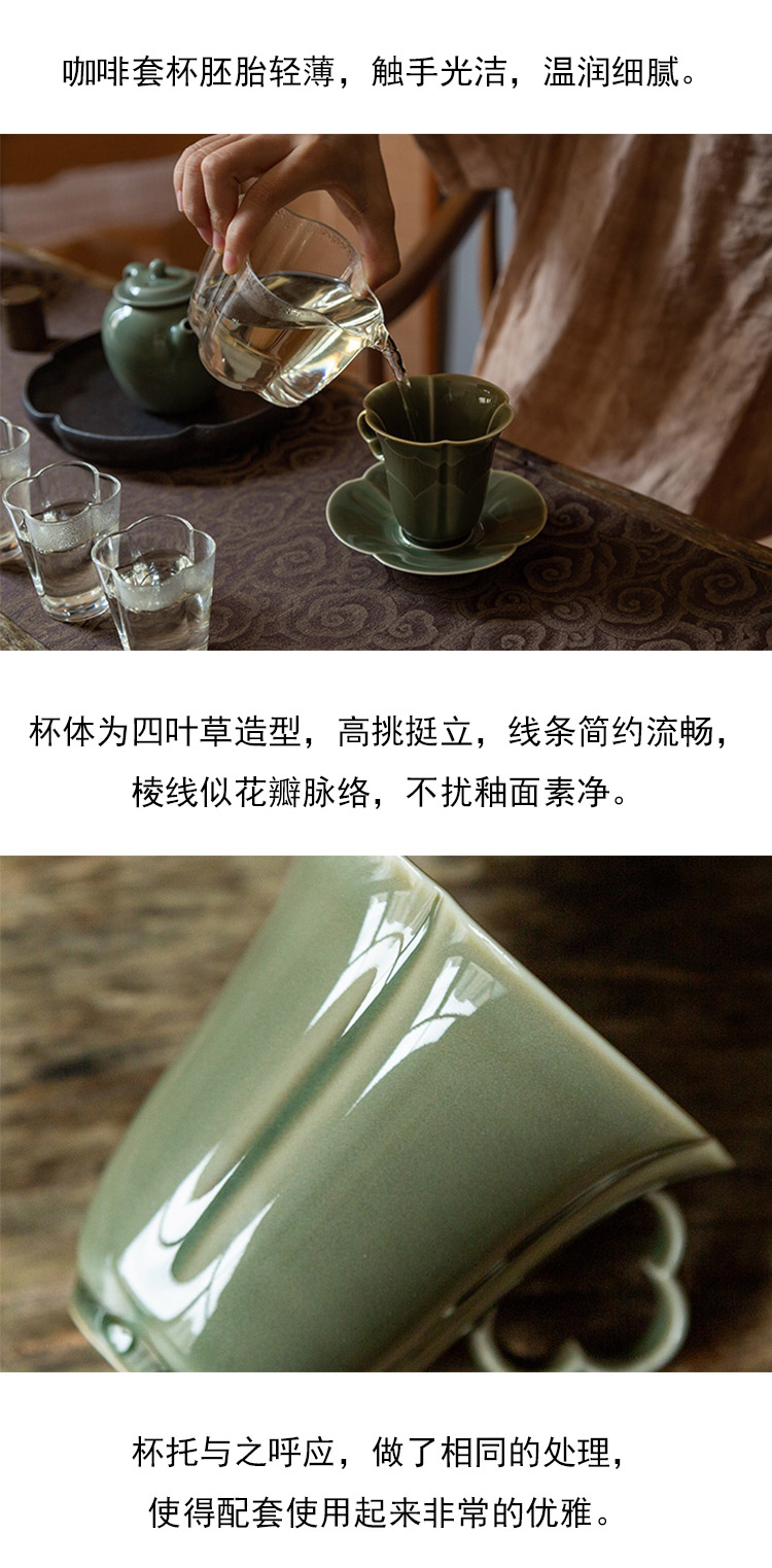 茶香记 越青四叶草咖啡套杯130ml陶瓷茶杯水杯多用主人杯高挑茶具