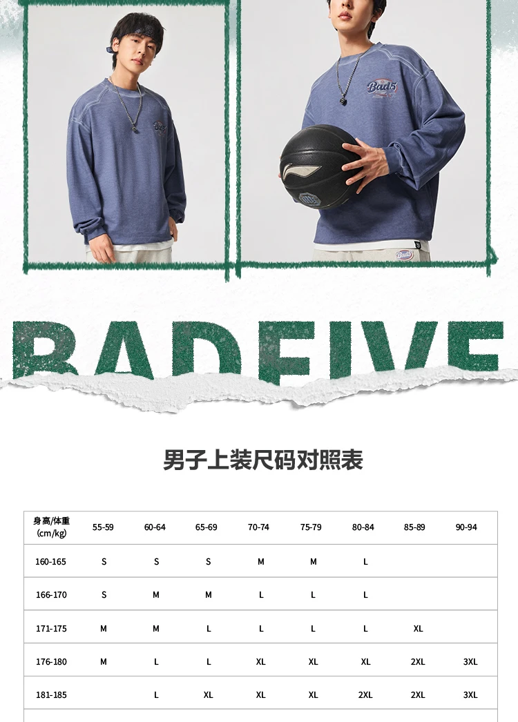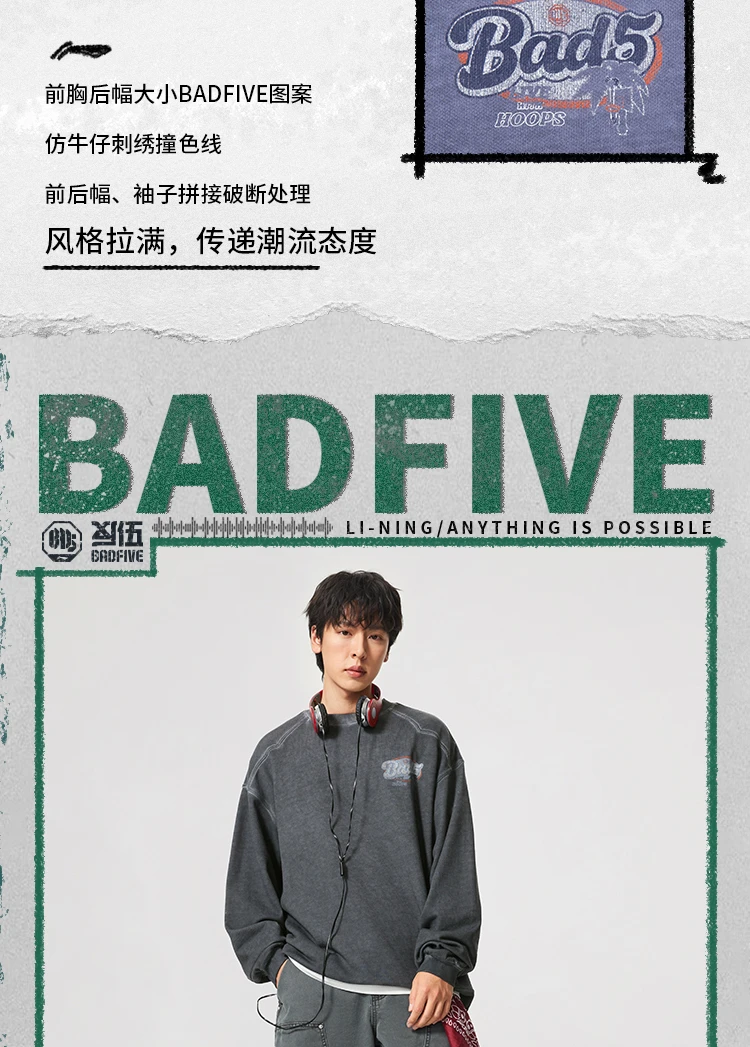 李宁反伍BADFIVE男子宽松套头卫衣AWDV325