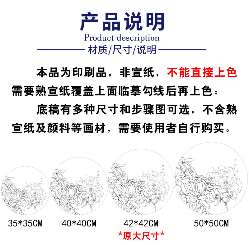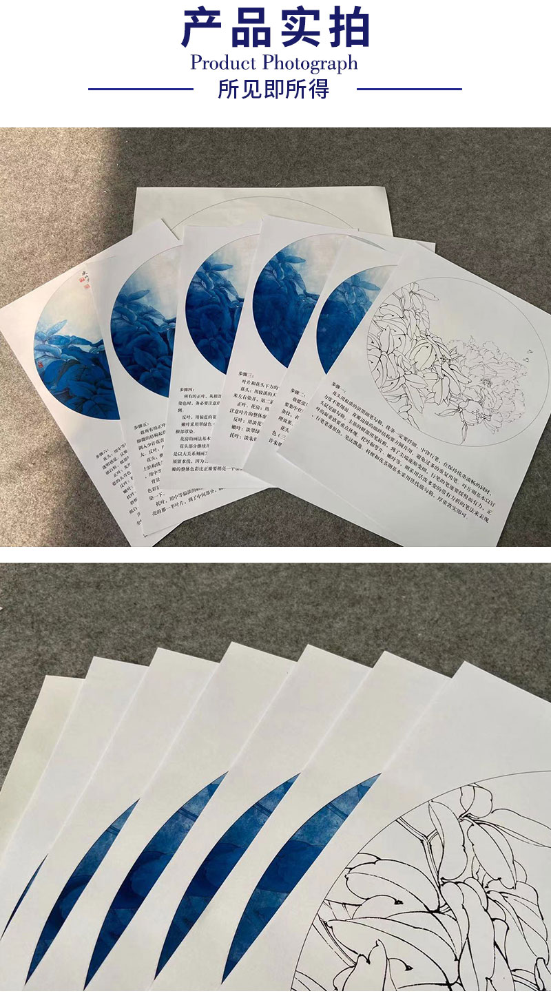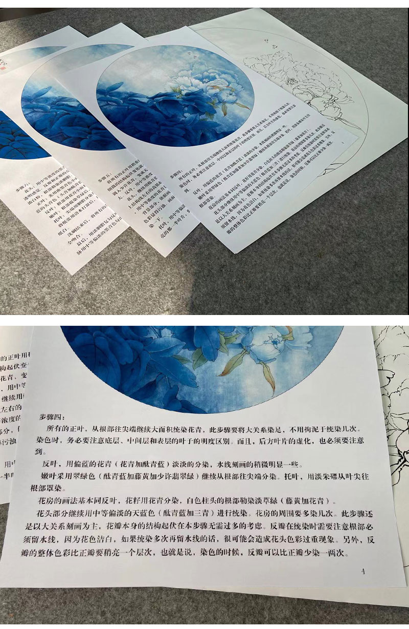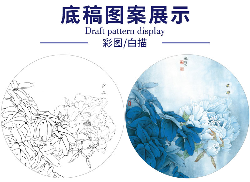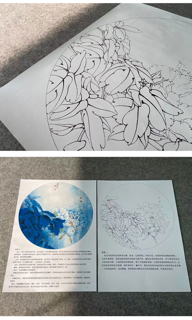 【有步骤、大彩图】李晓明工笔画白描底稿圆形小品《凤丹白》牡丹初学者临摹花鸟线稿KD05