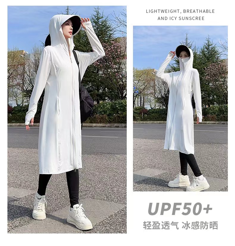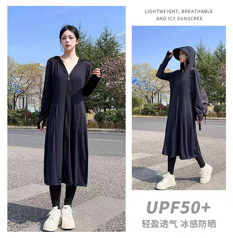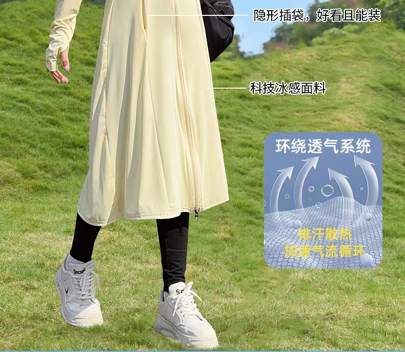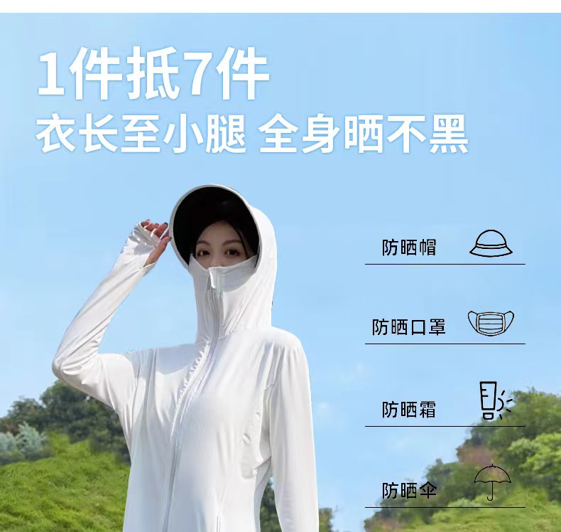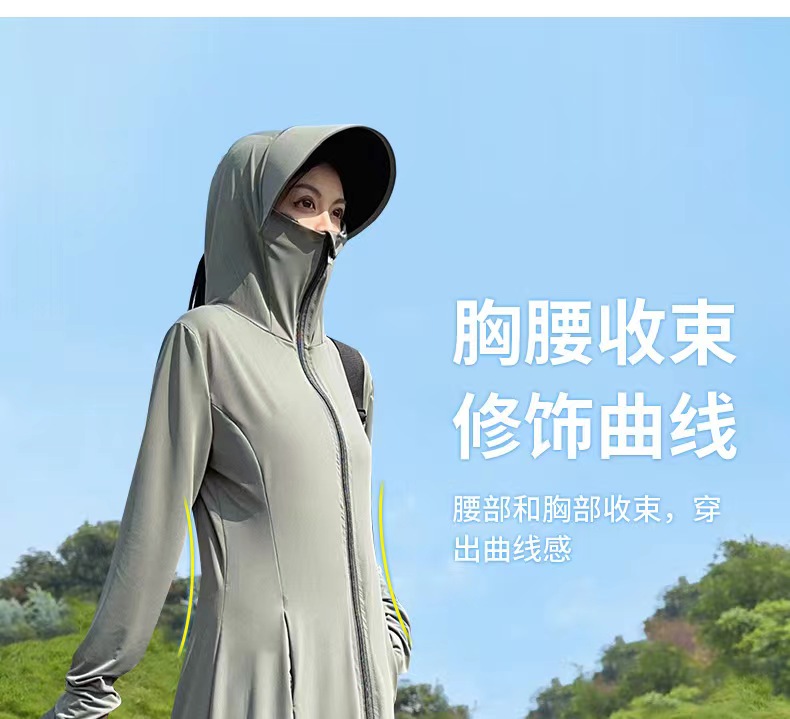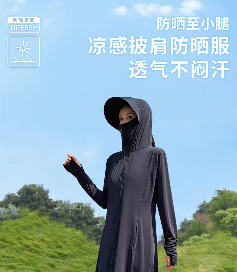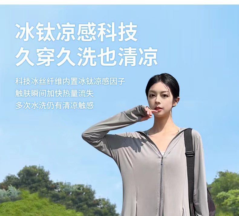【户外防晒 冰钛凉感黑科技】夏季全身凉感披肩防晒服 1件抵7件 UPF50+防紫外线冰钛原纱防晒服 排汗吸湿速干 胸腰收束 修身显瘦 连帽冰丝外套 多色可选 每件赠送检测卡