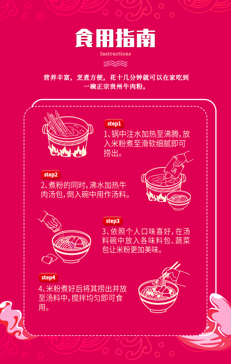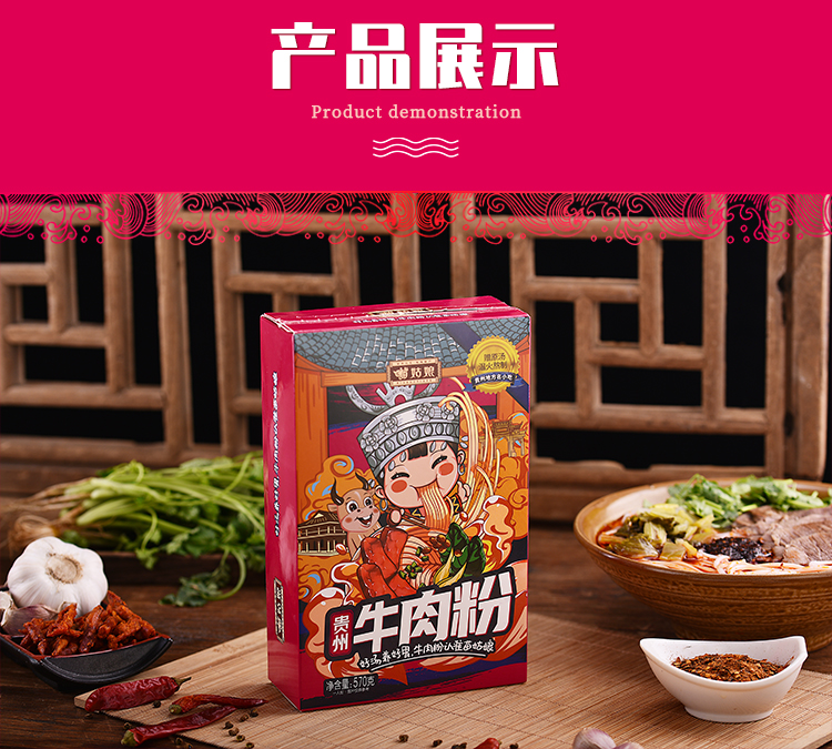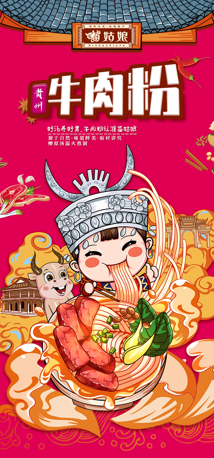 苗姑娘 贵州特产 原汤牛肉米粉 580g*3盒