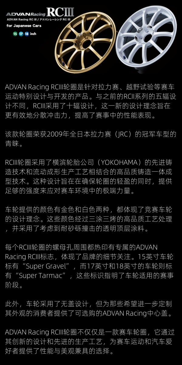 ADVAN RC3 赛用数据 铸造轮圈 15/17/18 4*114.3 5*100/114.3 日本进口 总代合作 正品保证