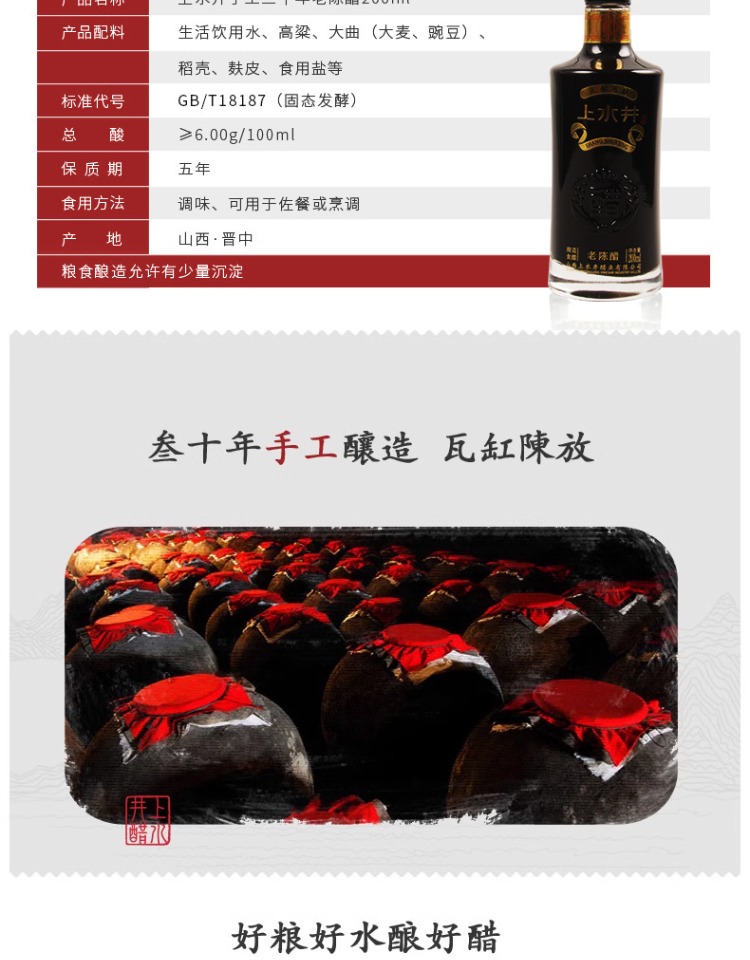 上水井老陈醋三十年200ML起盒装 山西特产伴手礼节日送礼馈赠佳品