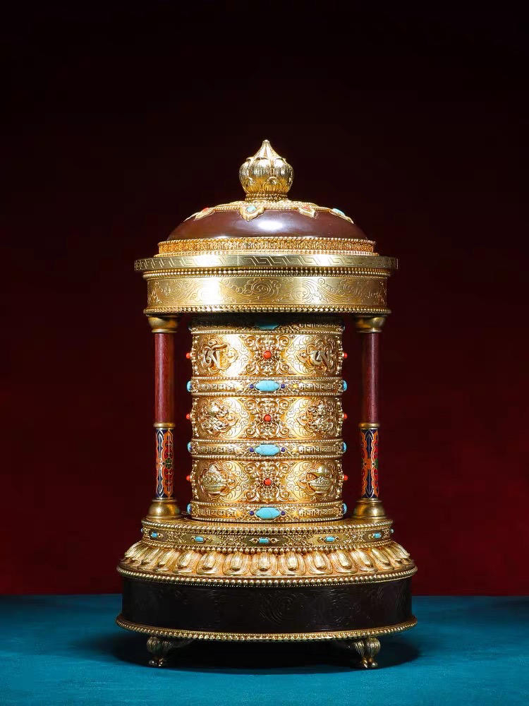 新品纯铜精工电动转经轮六字大明咒转经轮经文十万零八千遍