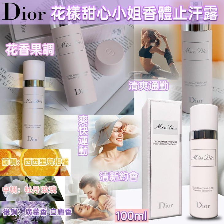 👑Dior迪奥 花样甜心小姐香体止汗露100ml 👍止汗喷雾当香水用✨,走到哪里都有人问👀“什么香水来着❓” 🏜️细致单页的牡丹🌸与清甜的柑橘,两者碰撞不一样的气息🙌🏻。喷出冰凉💧 ✨重点是香味十分持久⏰,连汗味也是香的。 🍊让你爱不释手❗