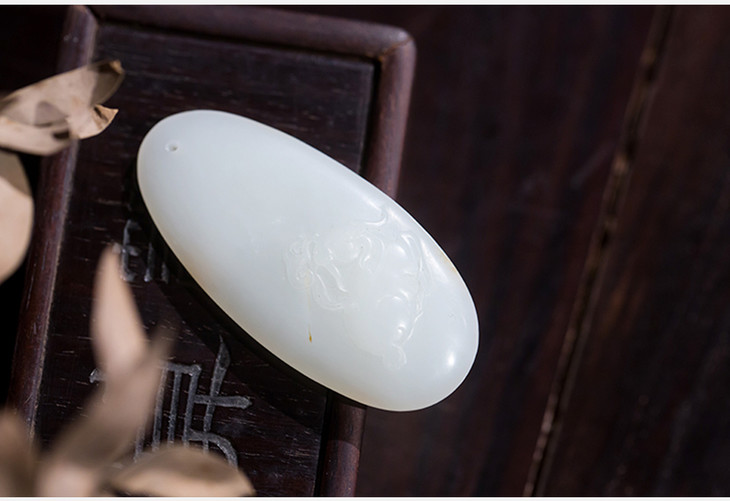新疆和田玉籽料羊衔灵芝吊坠(带皮)
