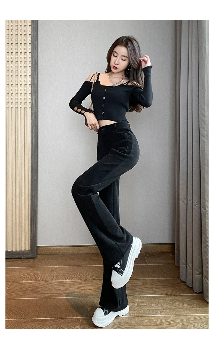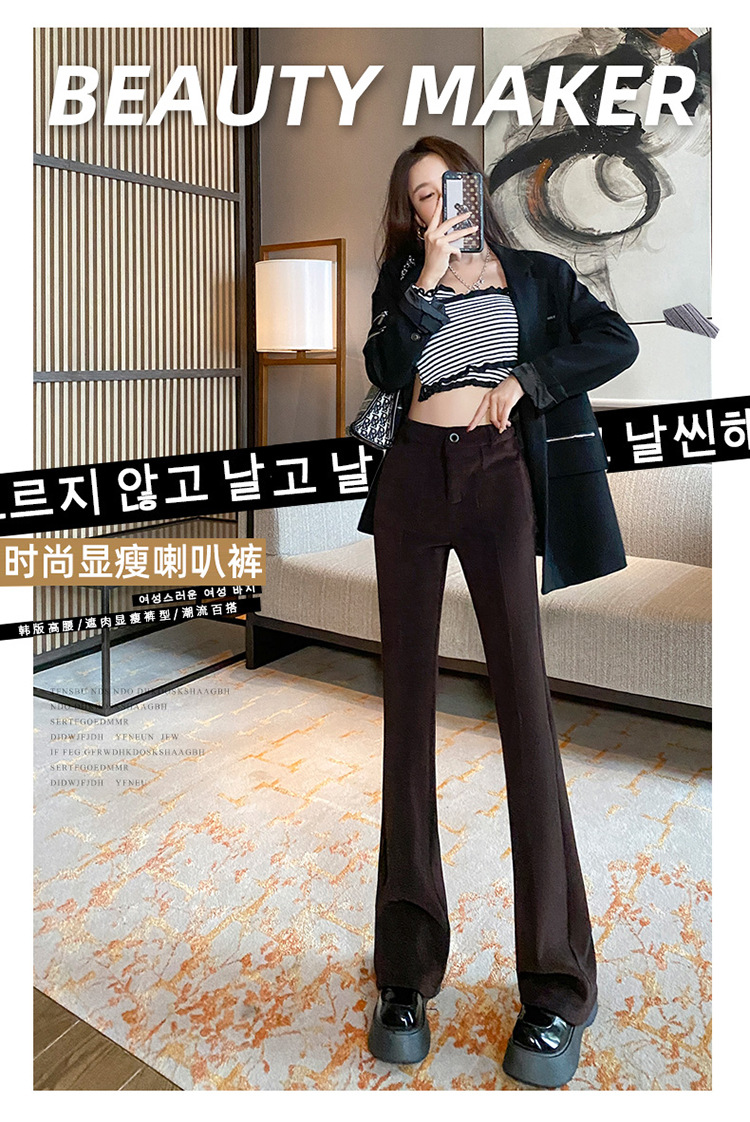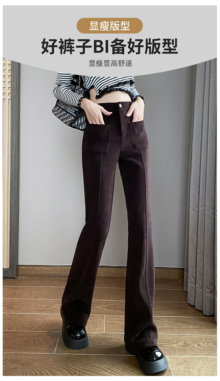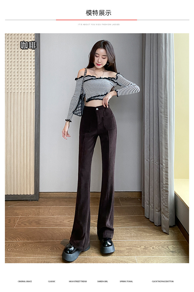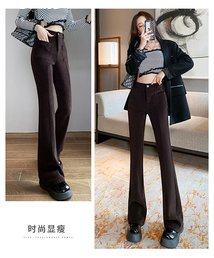 2021冬季新款加绒加厚女高腰修身显瘦雪尼尔长喇叭裤 XY-YSYS8695