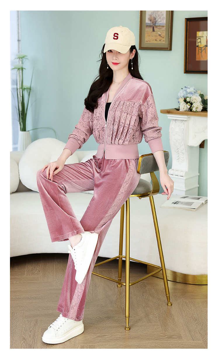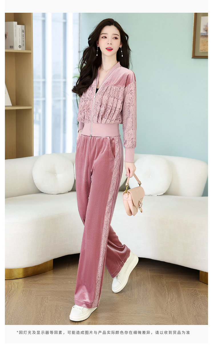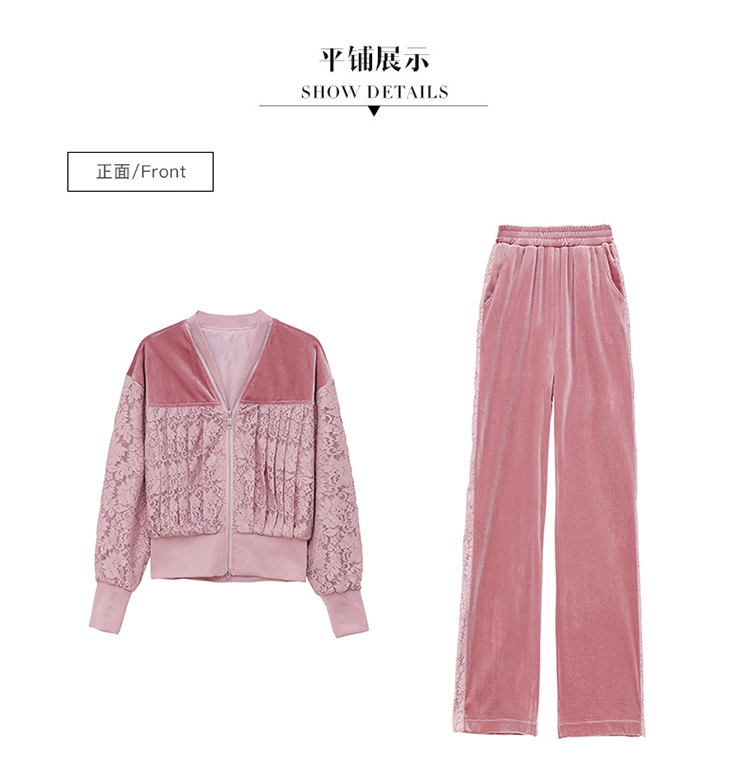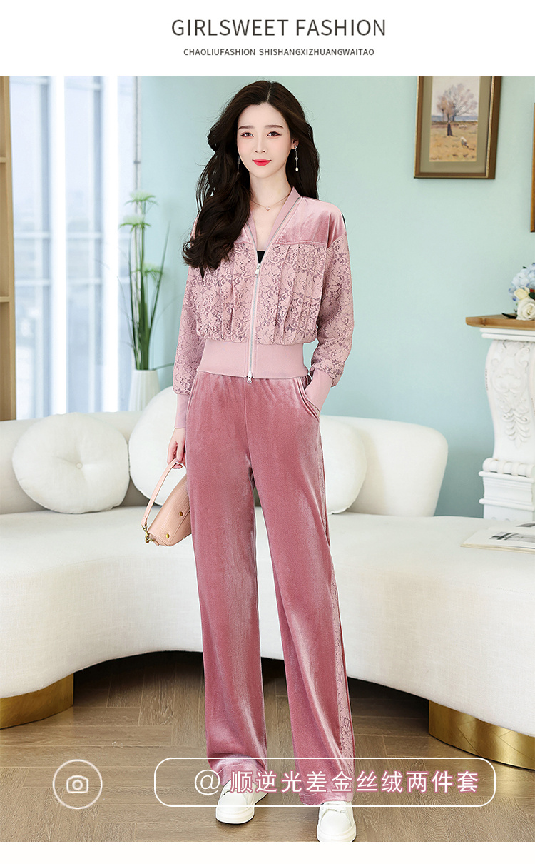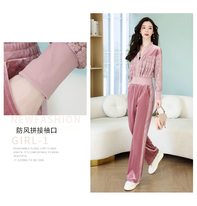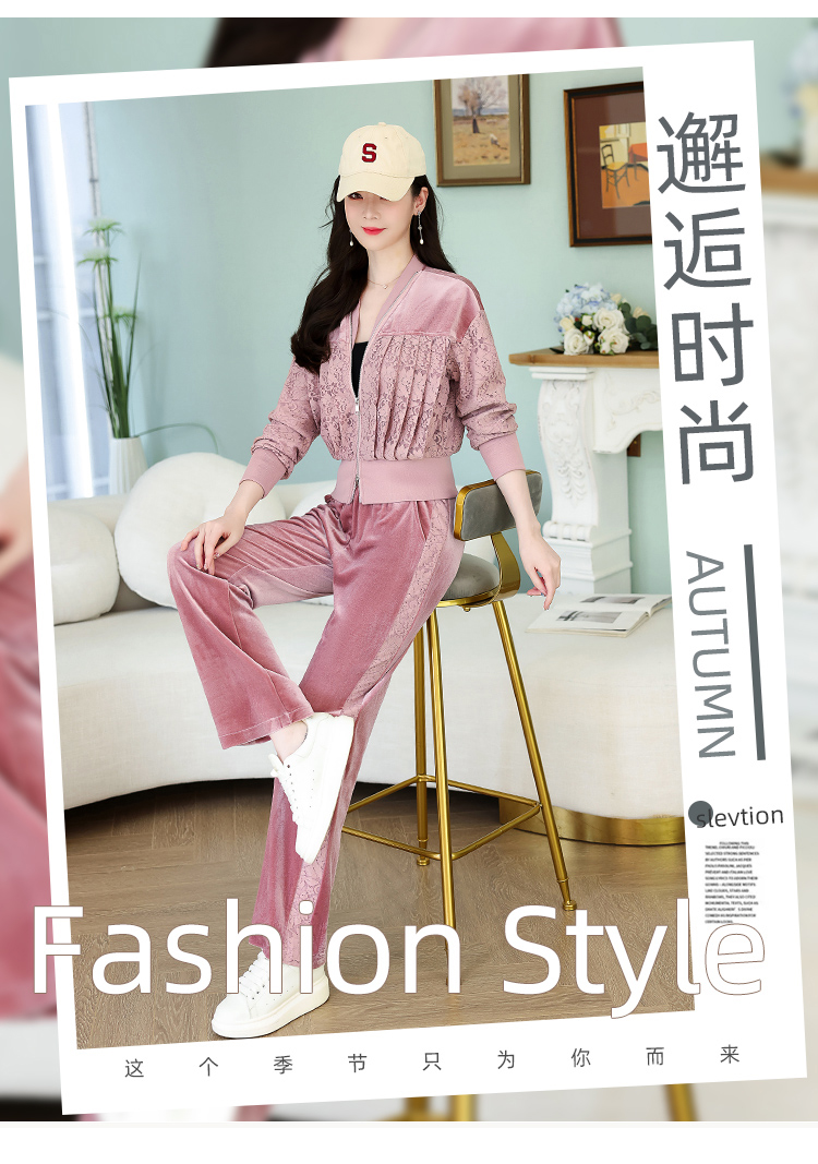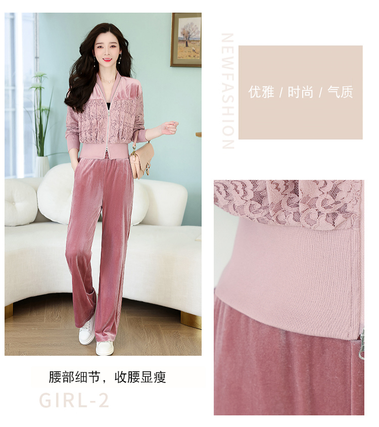 春装时尚两件套,金丝绒蕾丝拼接套装HR-YLFS8826-1