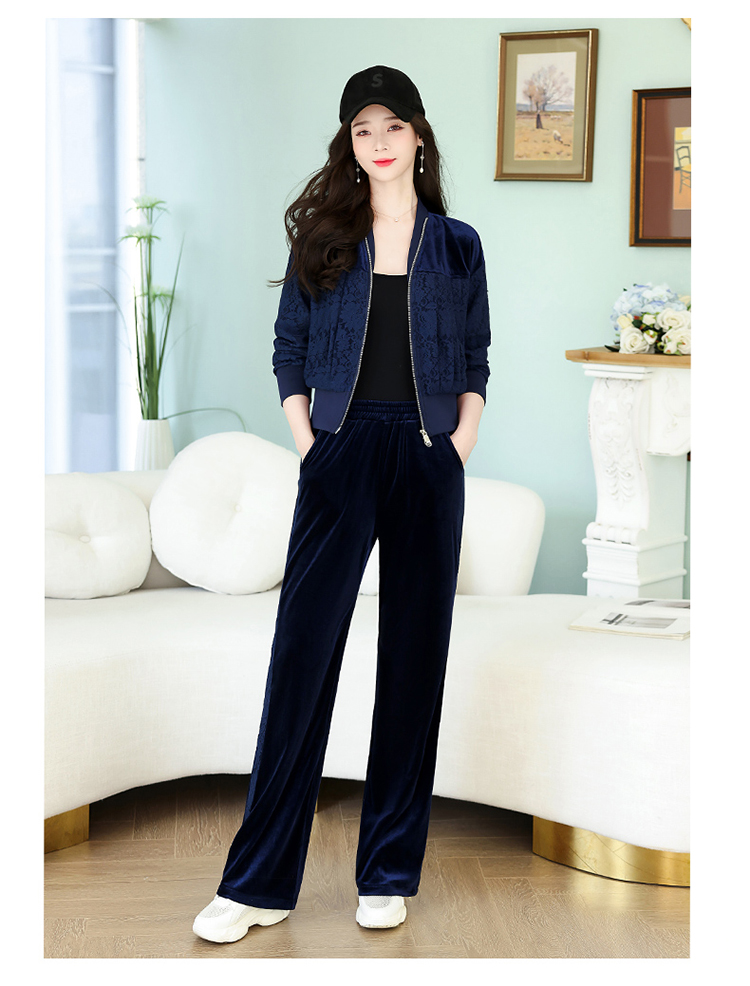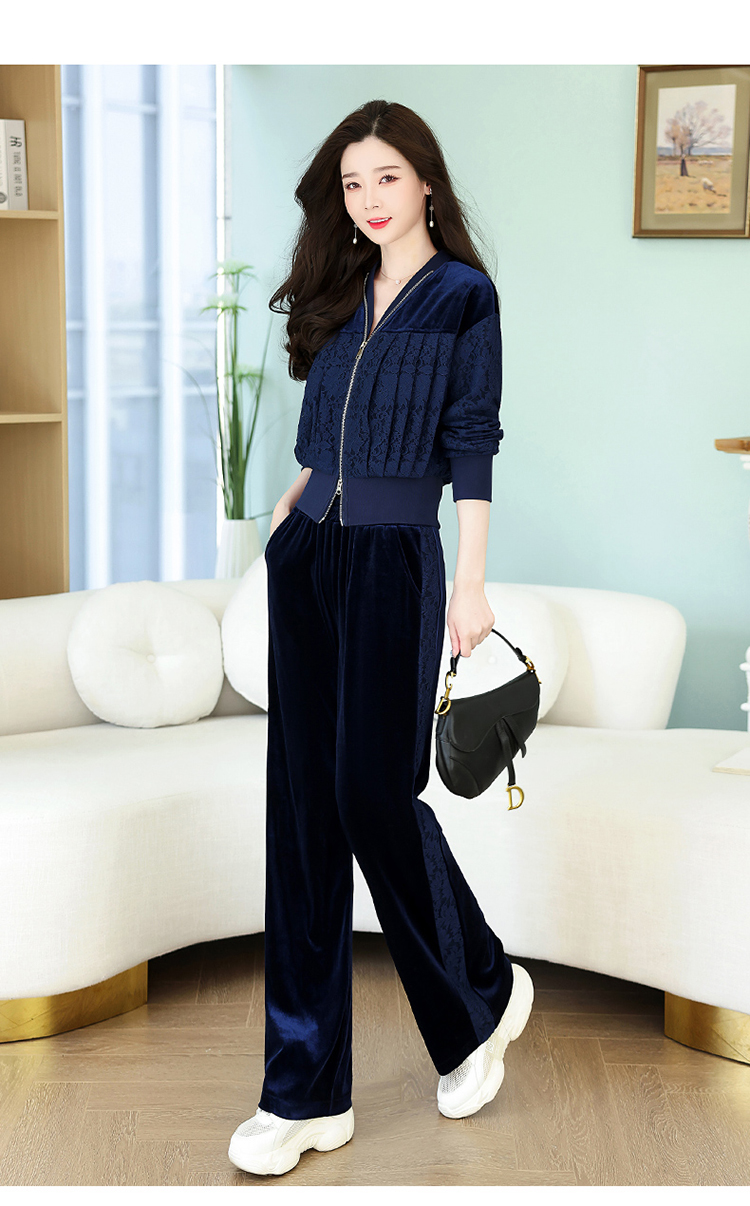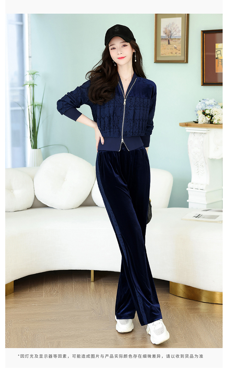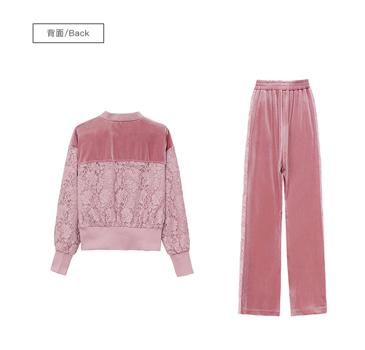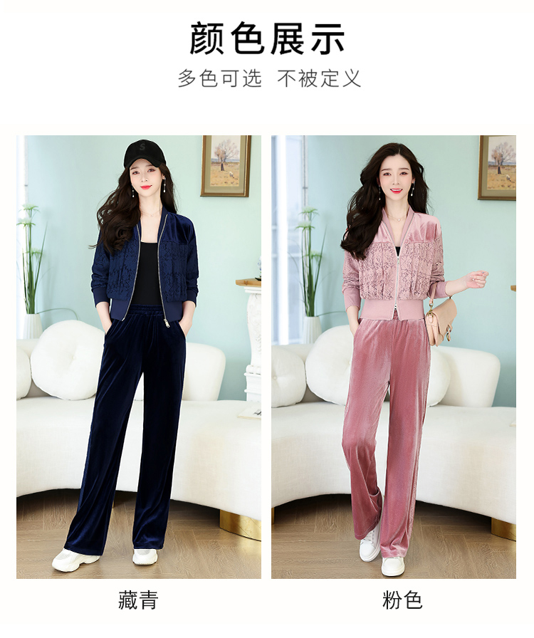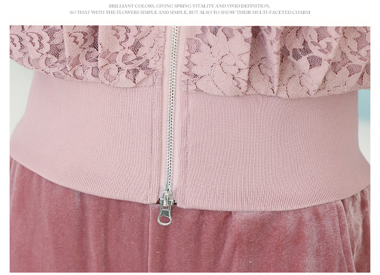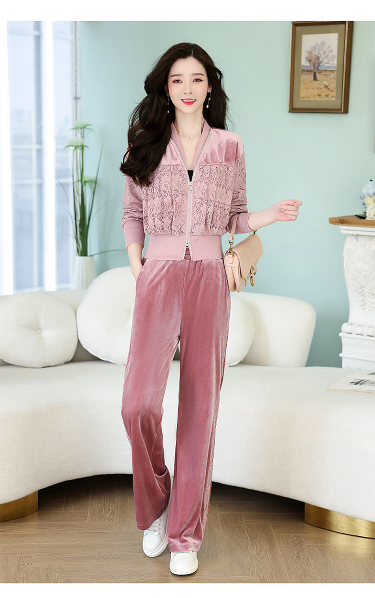 春装时尚两件套,金丝绒蕾丝拼接套装HR-YLFS8826-1