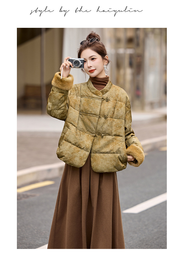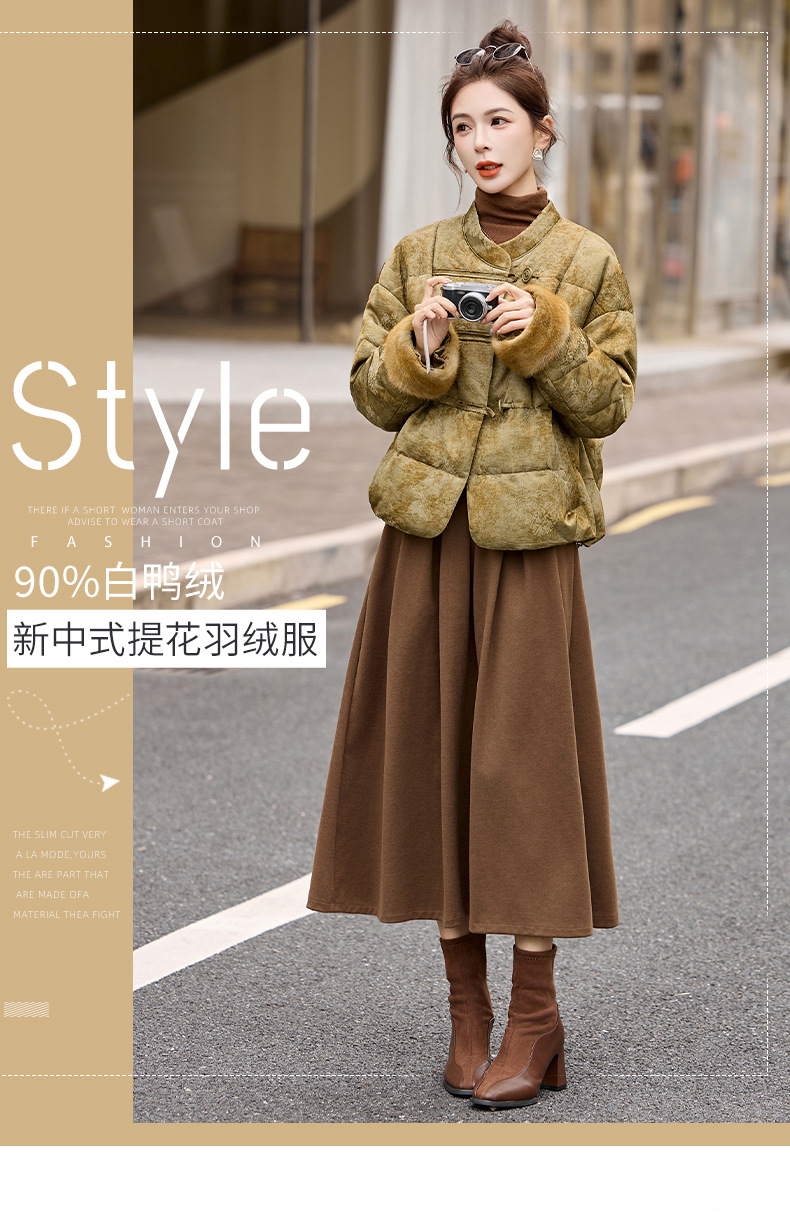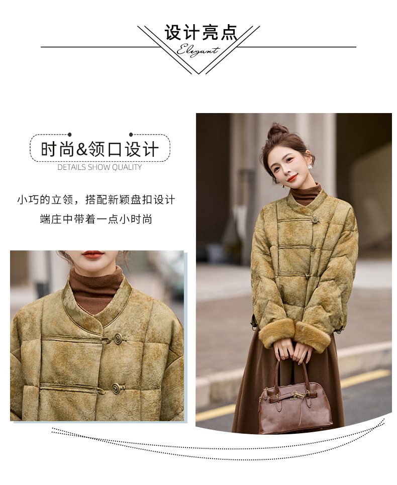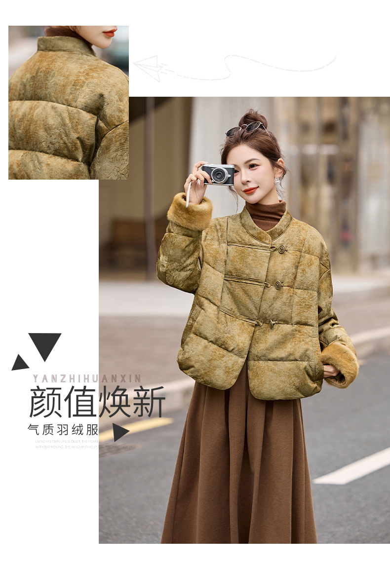 新中式国风复古提花羽绒服,时尚白鸭绒短款外套HR-GJC5515