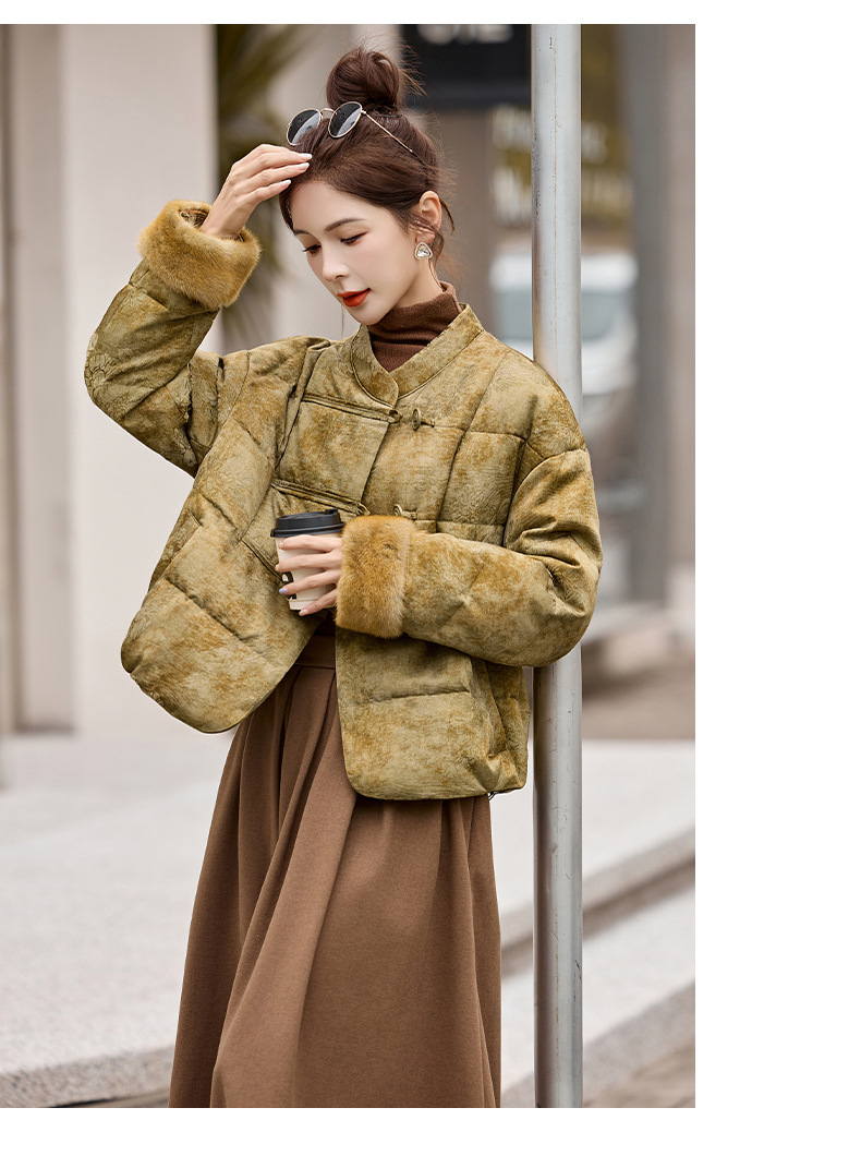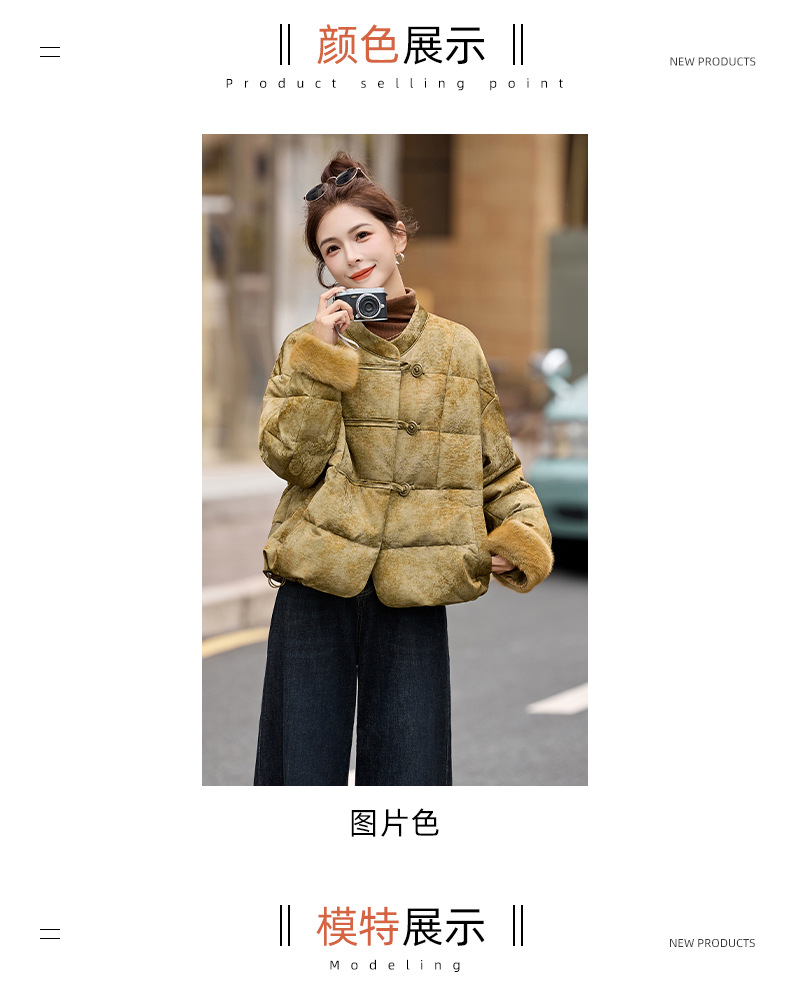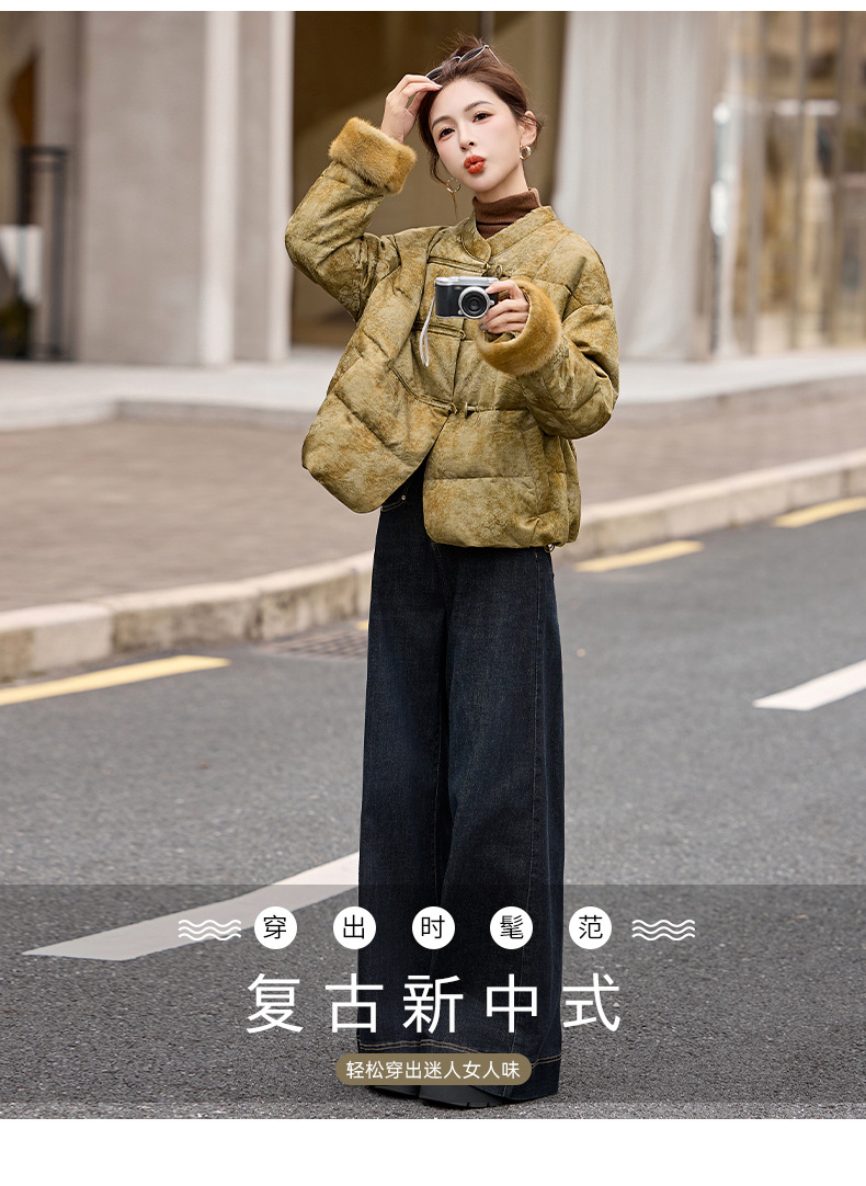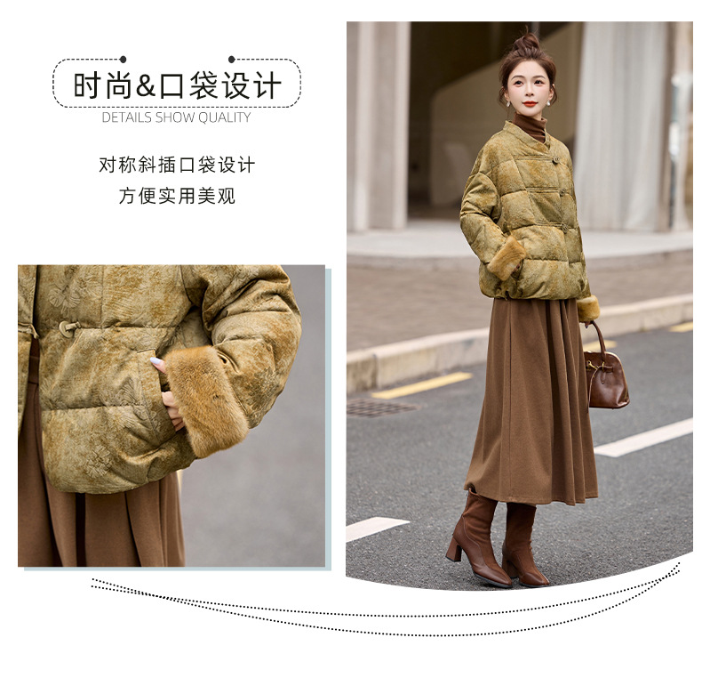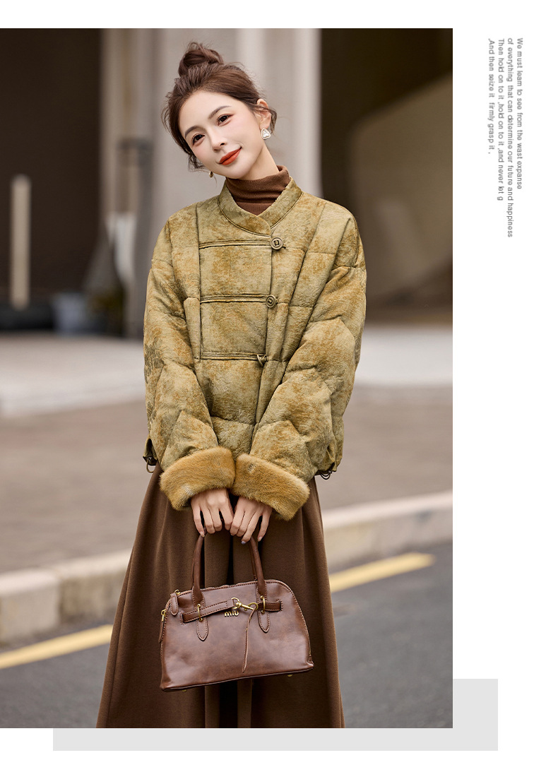 新中式国风复古提花羽绒服,时尚白鸭绒短款外套HR-GJC5515