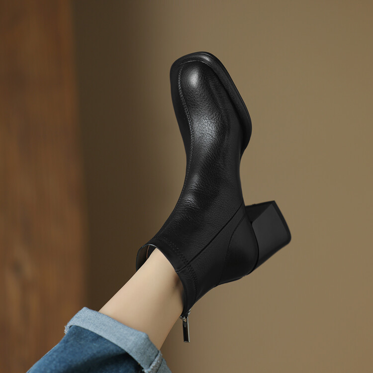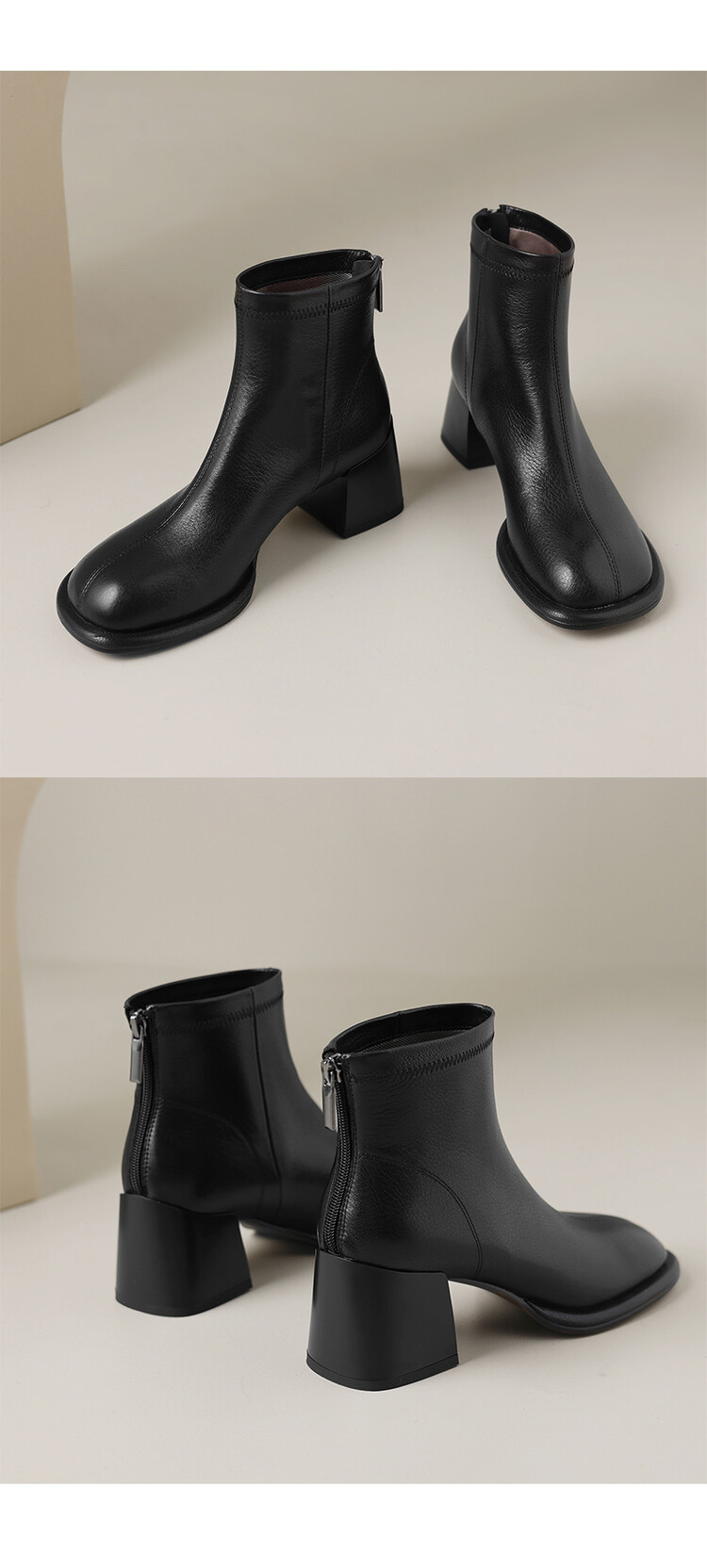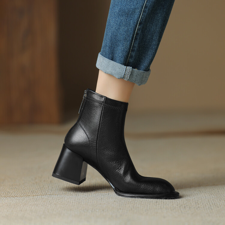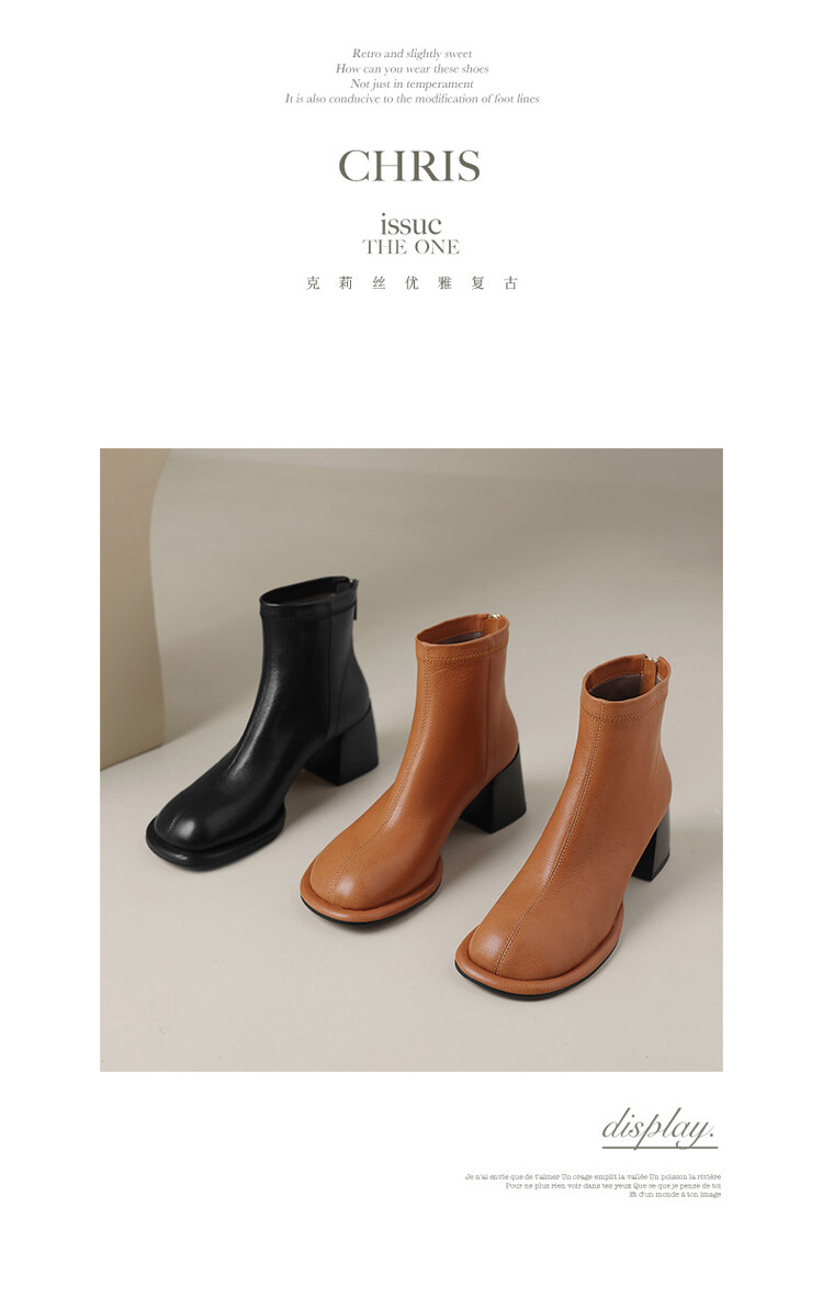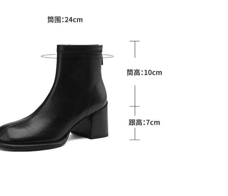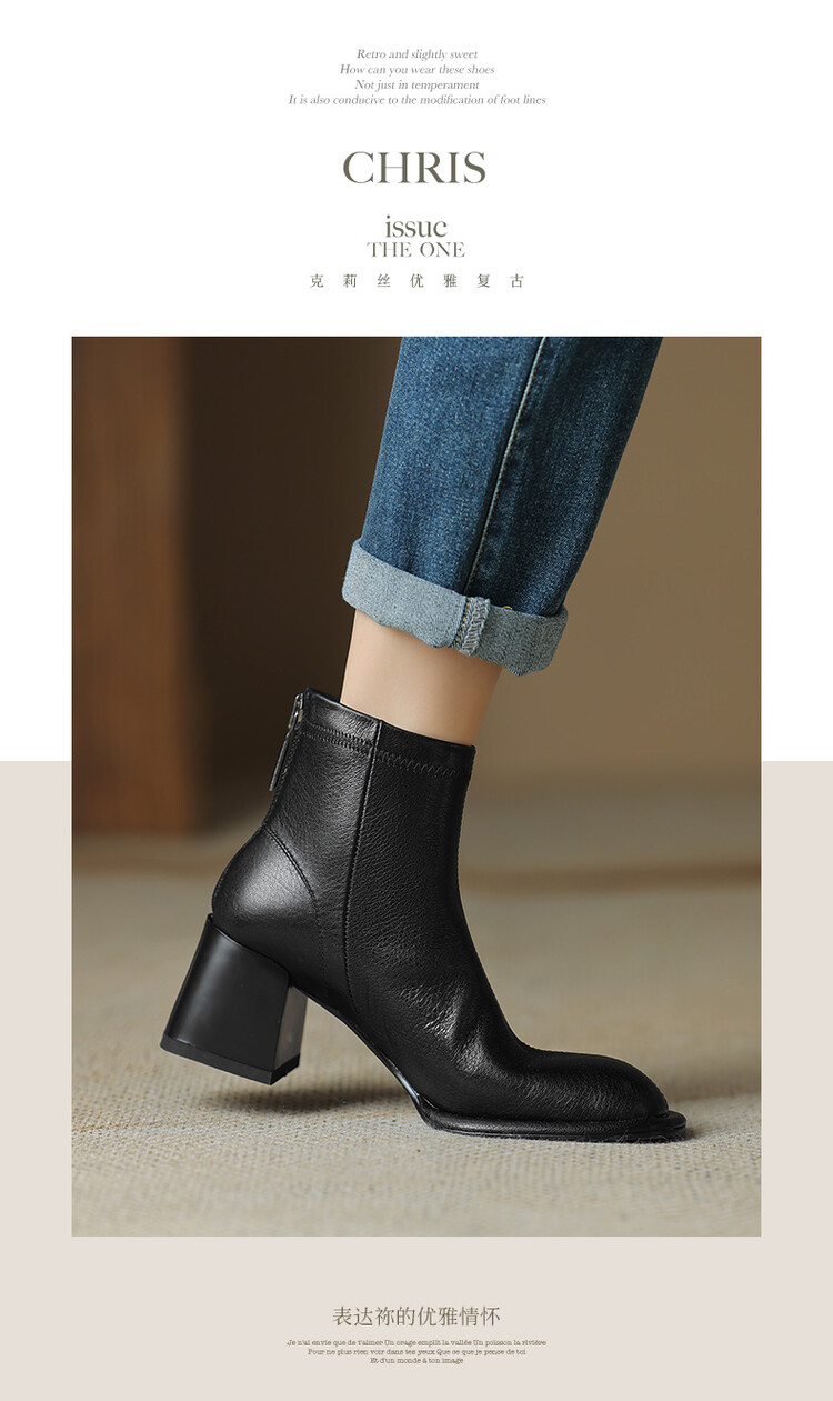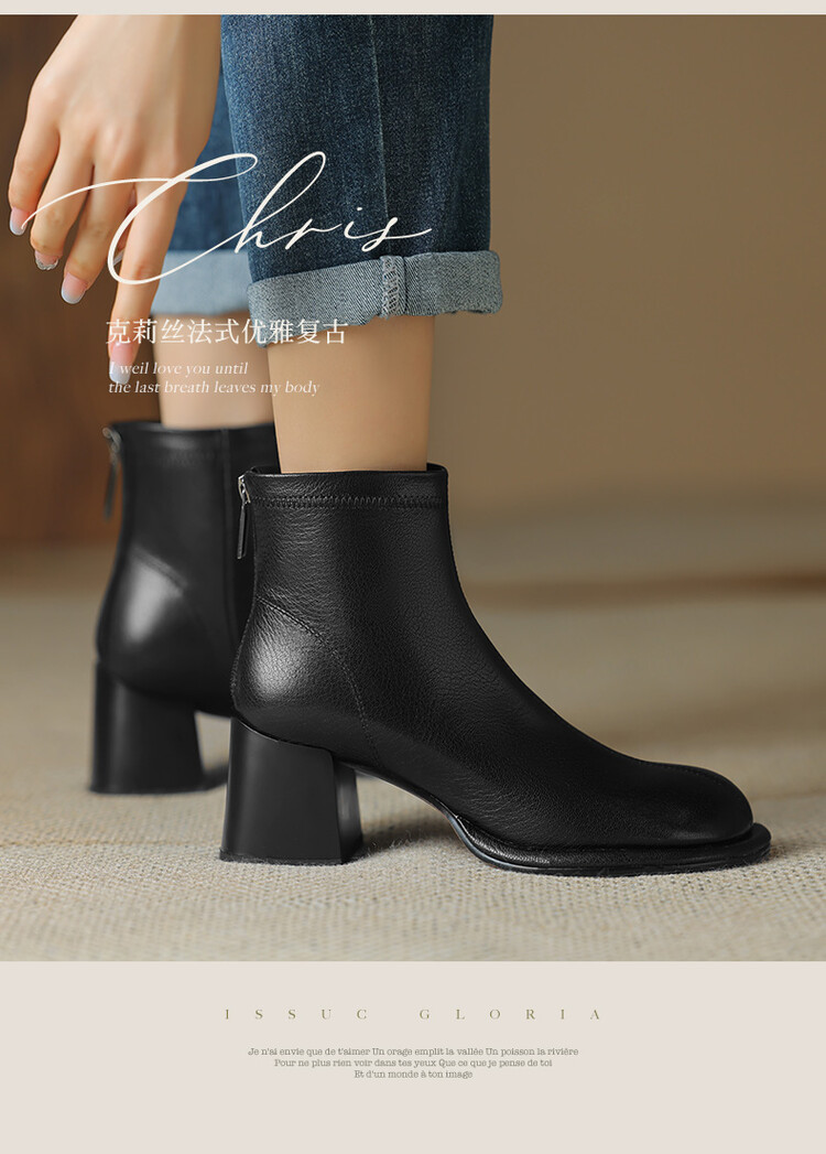 纯色百搭,软肤水晶头层羊皮粗跟后拉链短靴YS-3299