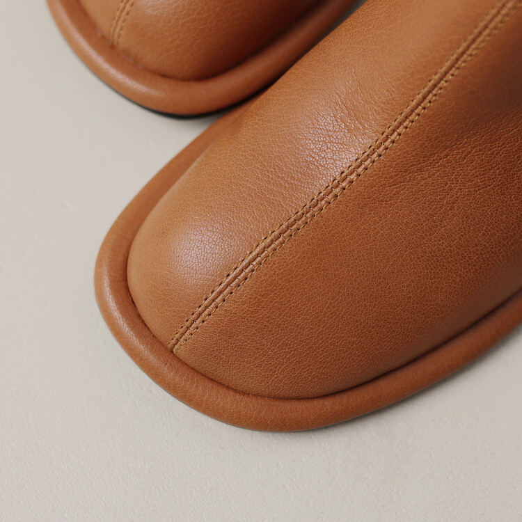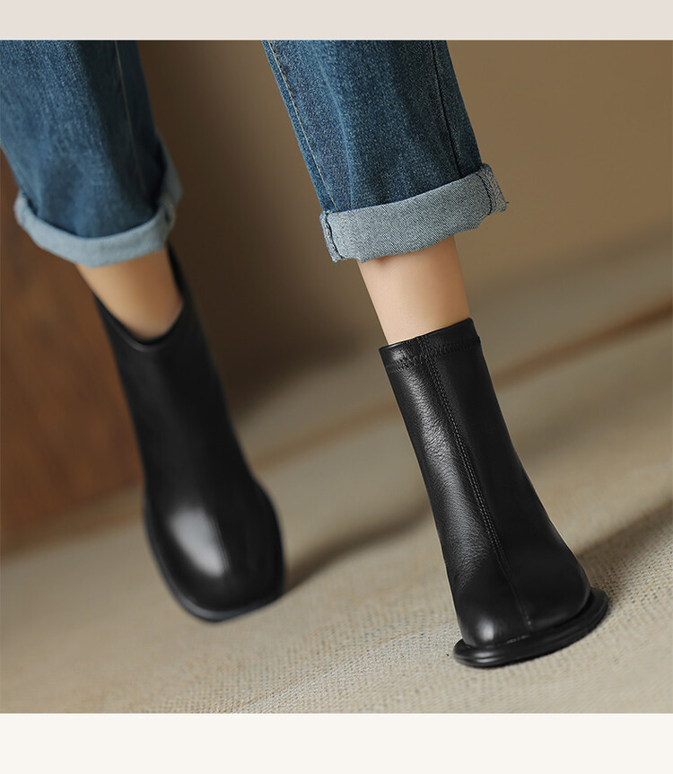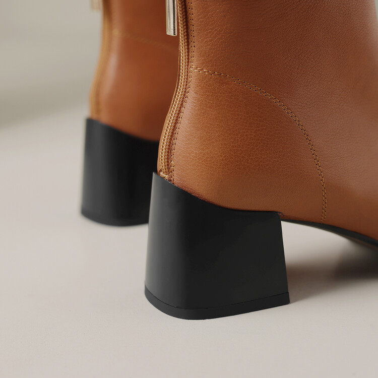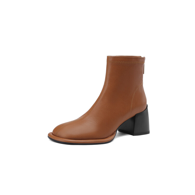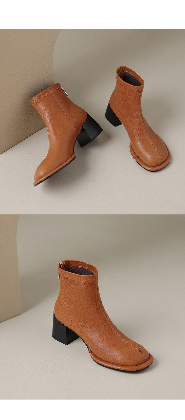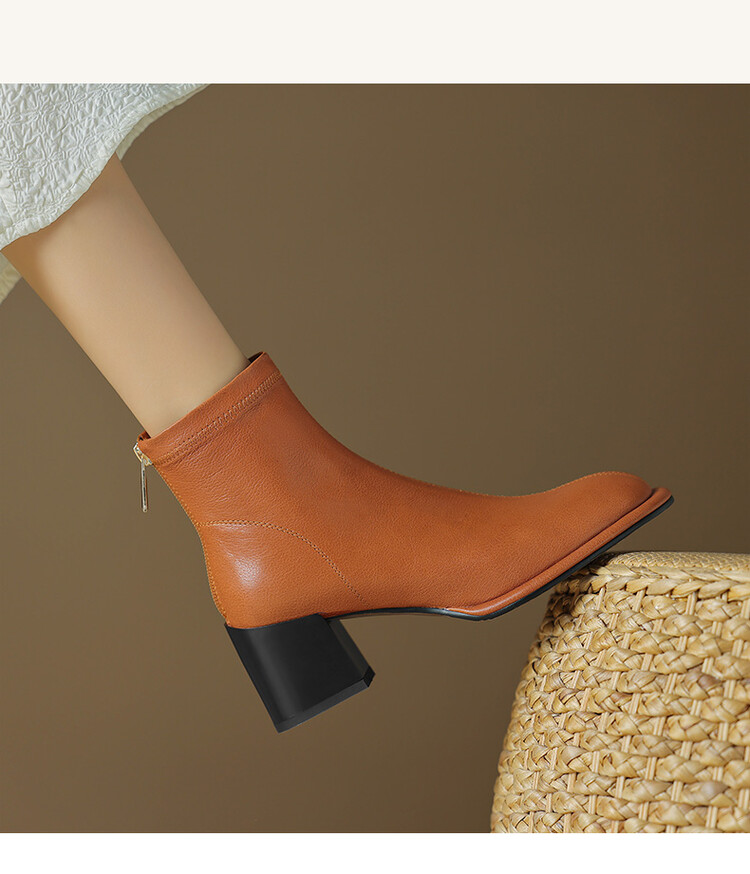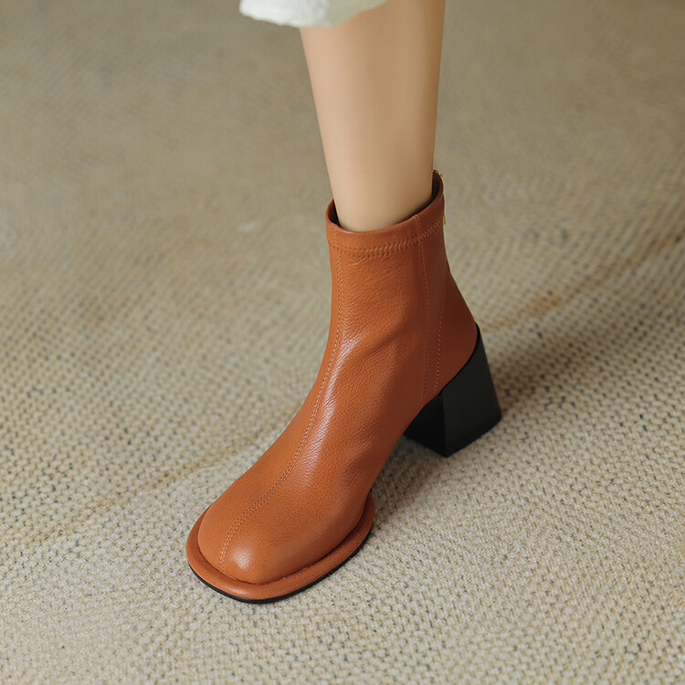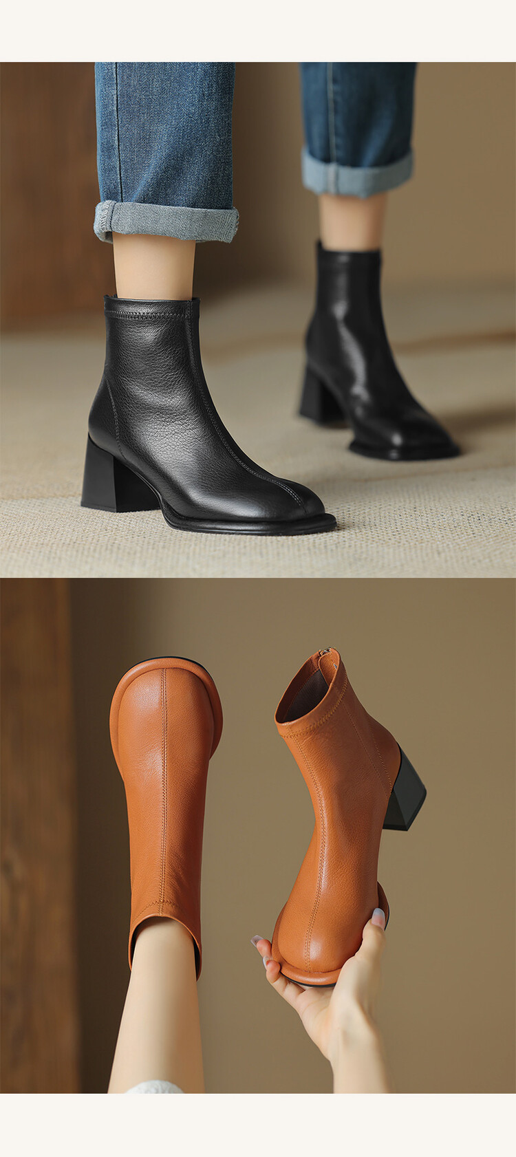 纯色百搭,软肤水晶头层羊皮粗跟后拉链短靴YS-3299