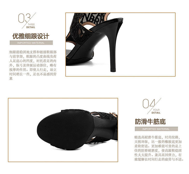 OLD-RB-ss110高档时尚真皮烫钻后空细跟露趾凉鞋