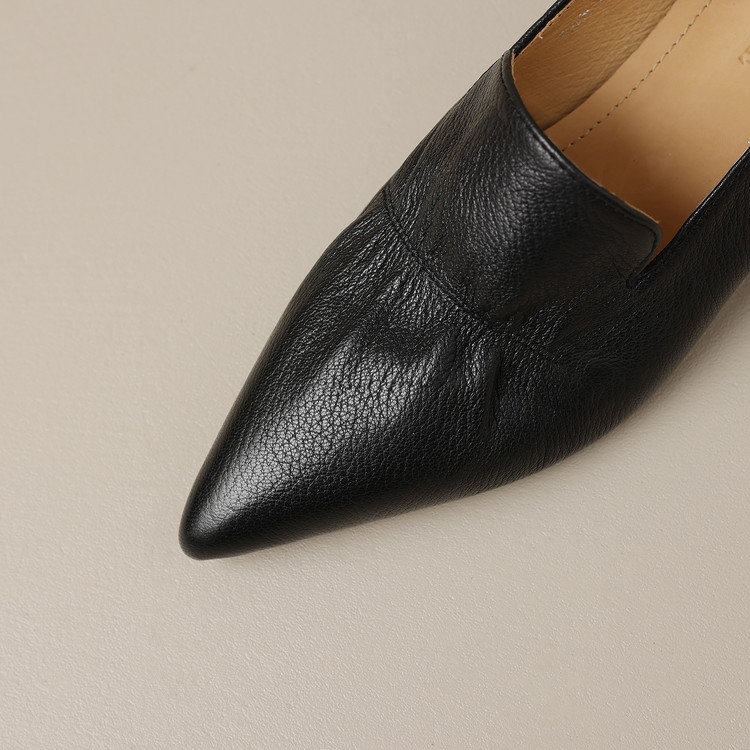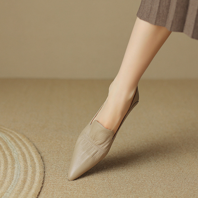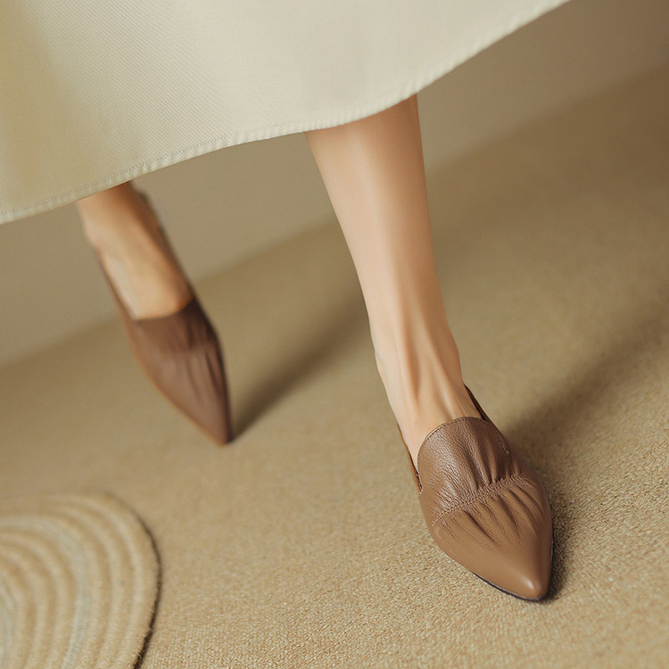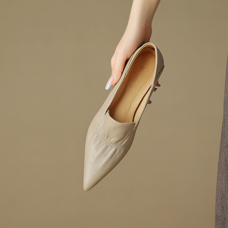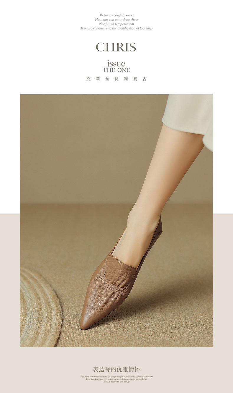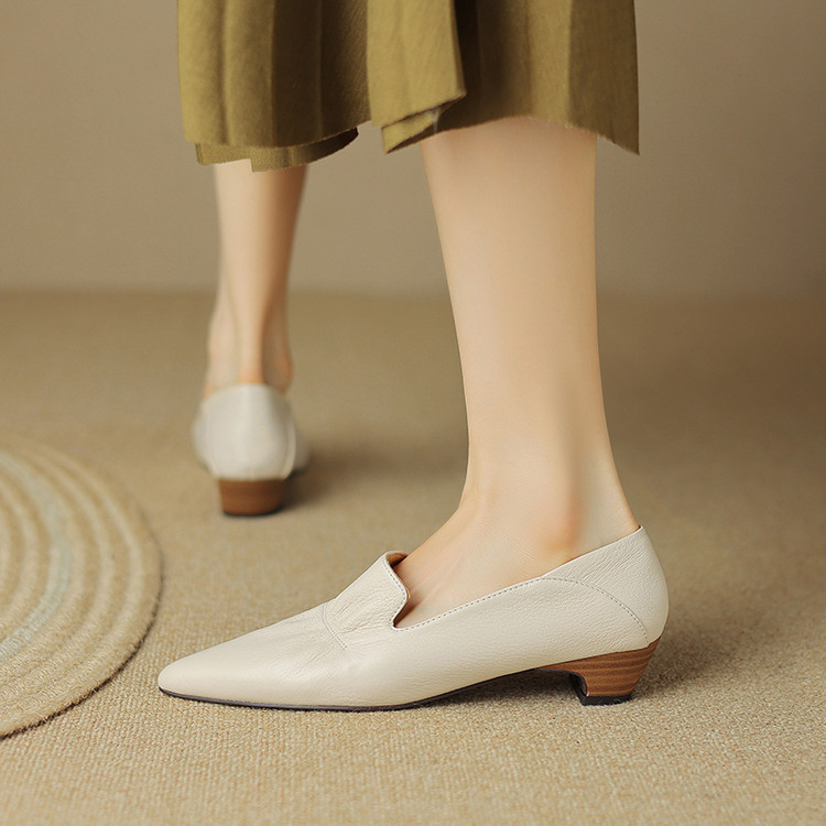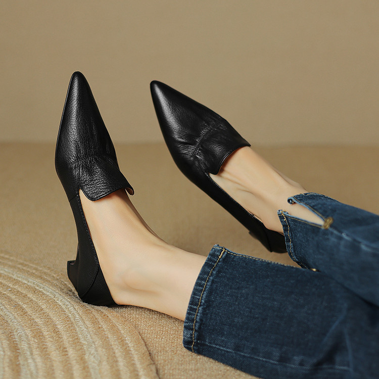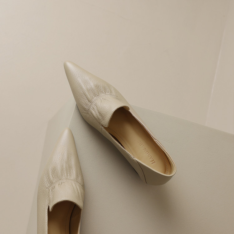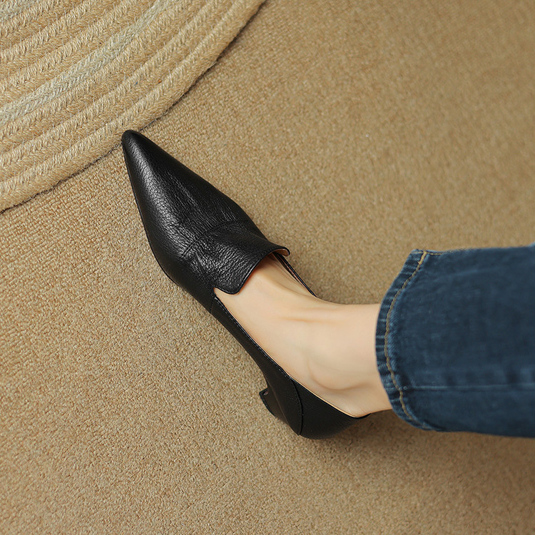 【预售5天】复古羊皮浅口单鞋女春秋新款粗跟真皮尖头褶皱小皮鞋软皮中跟鞋子SSS&5506