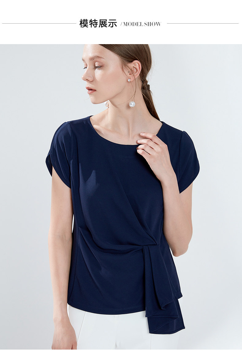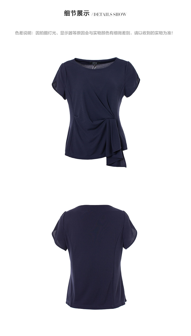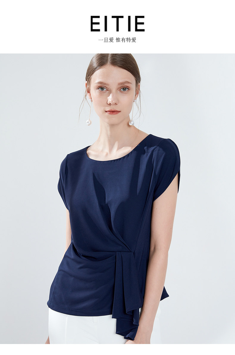 EITIE爱特爱女装夏季新款简约圆领腰间堆叠收腰时尚小上衣薄5913622