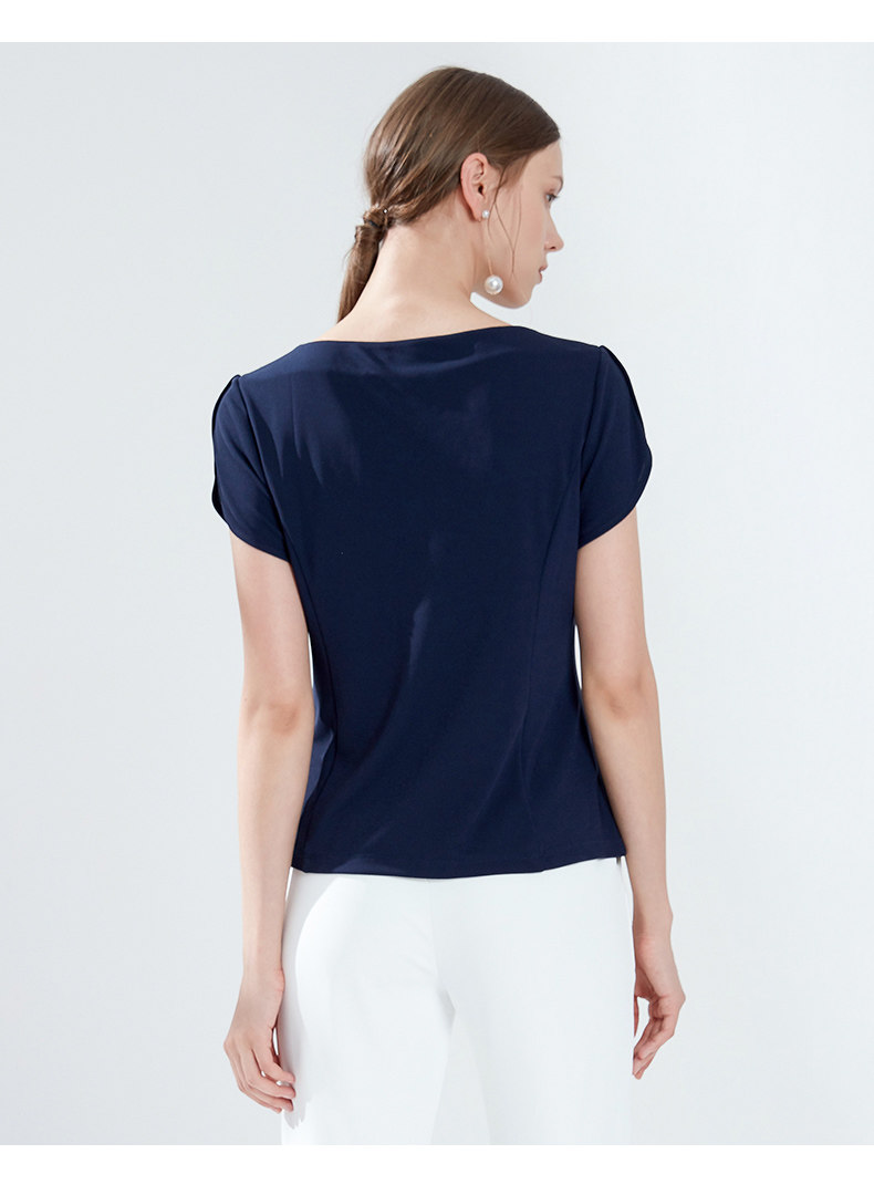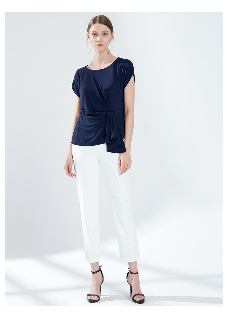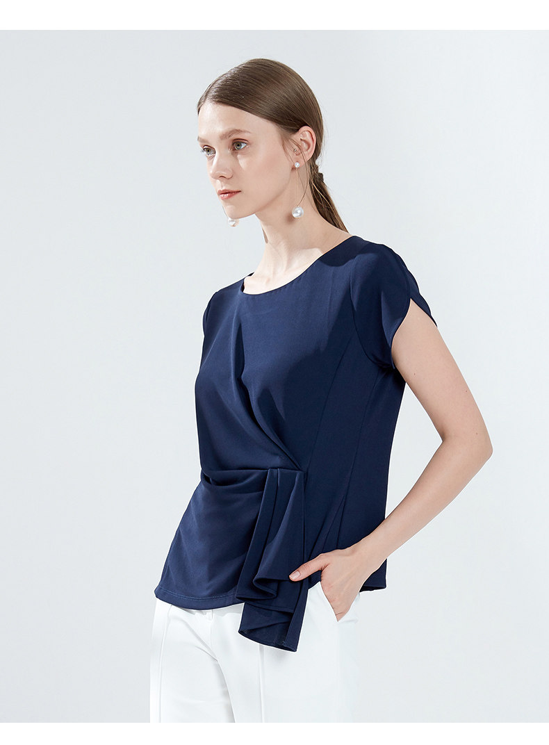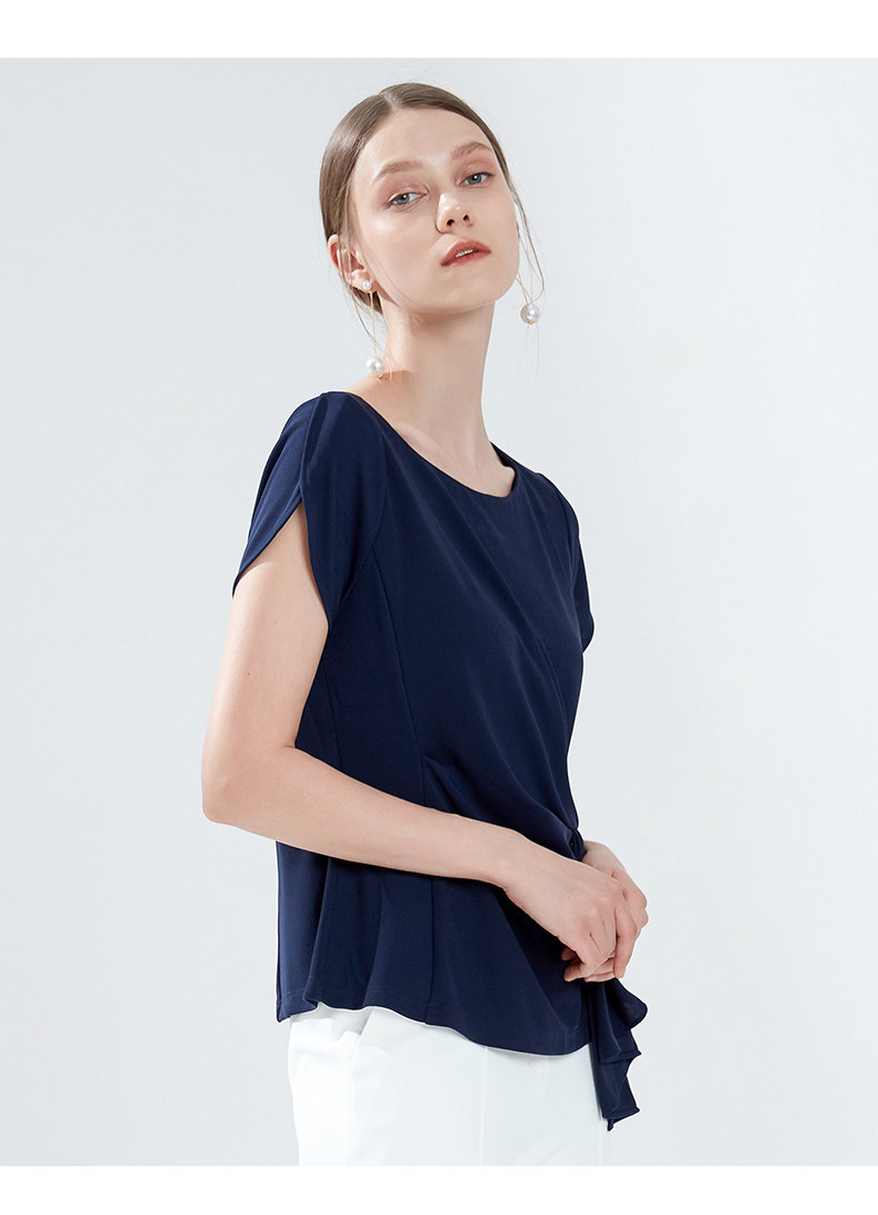 EITIE爱特爱女装夏季新款简约圆领腰间堆叠收腰时尚小上衣薄5913622