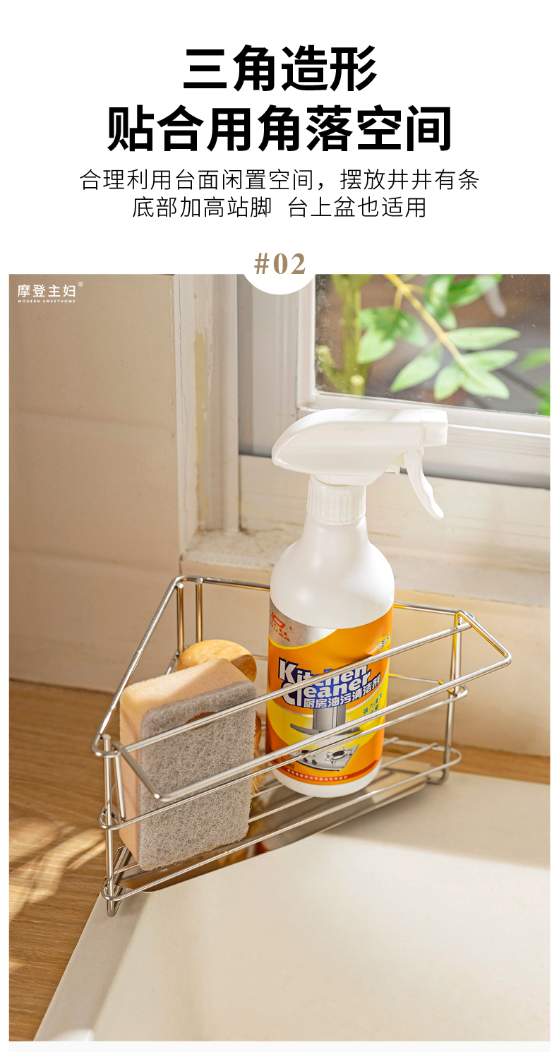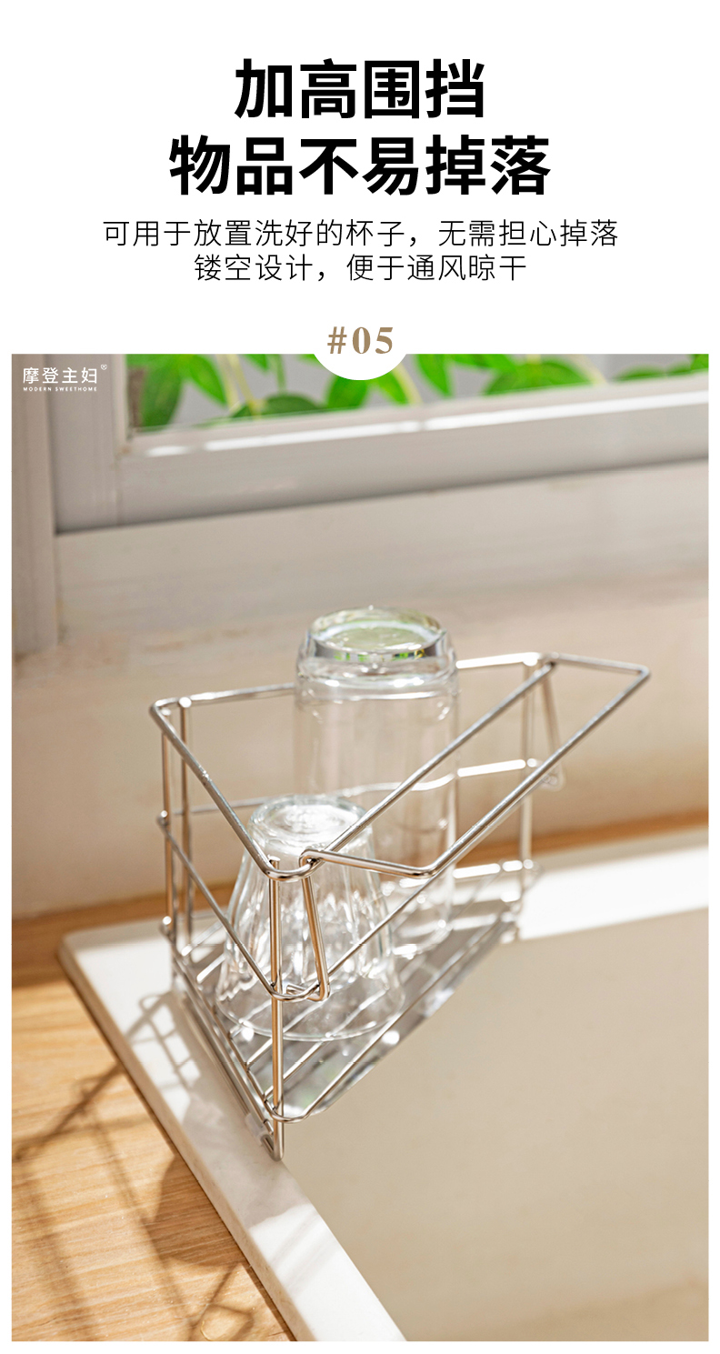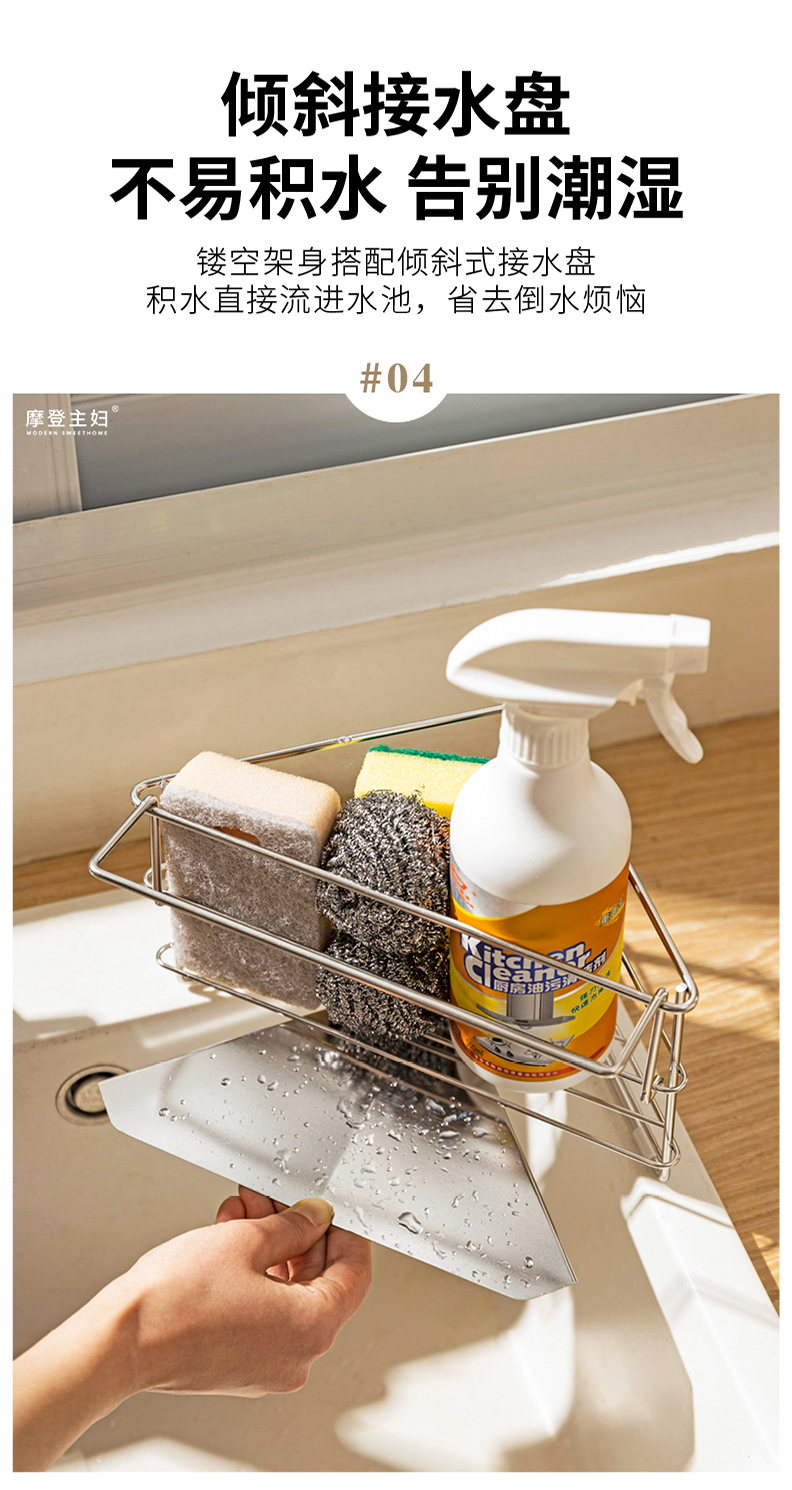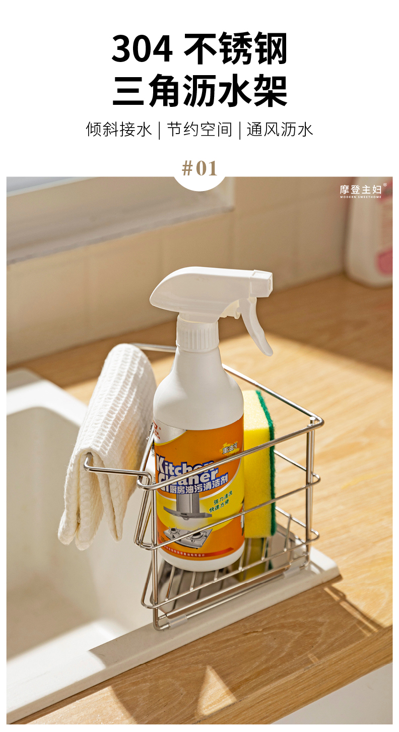 摩登主妇三角抹布沥水架厨房304不锈钢洗碗布拐角收纳水槽置物架