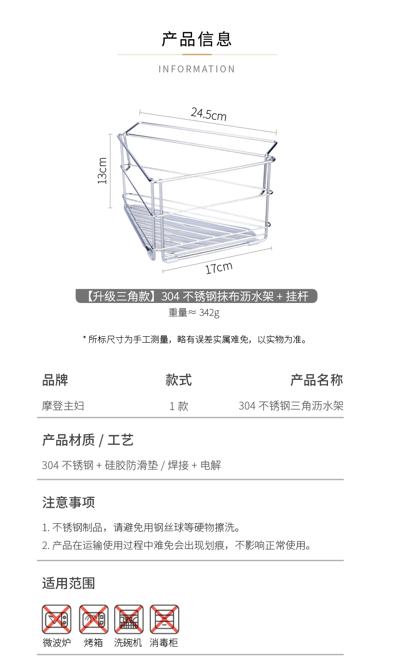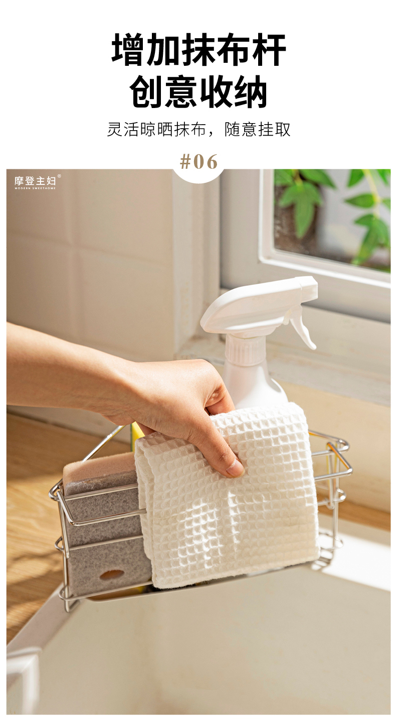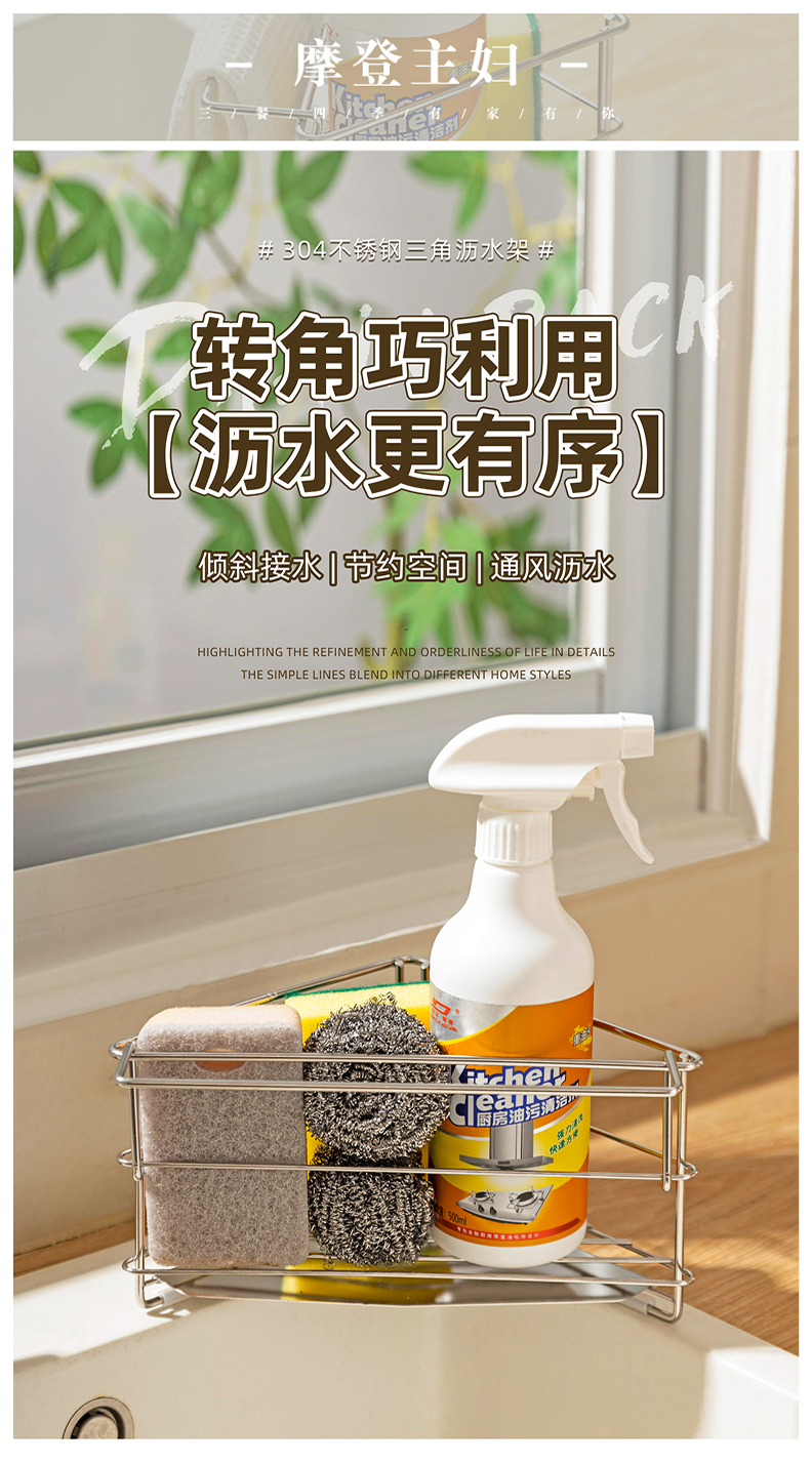 摩登主妇三角抹布沥水架厨房304不锈钢洗碗布拐角收纳水槽置物架