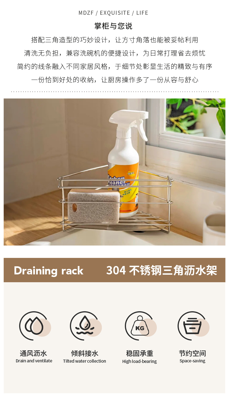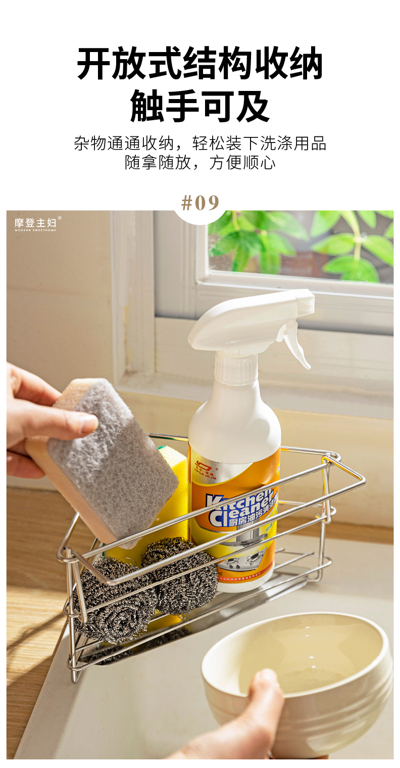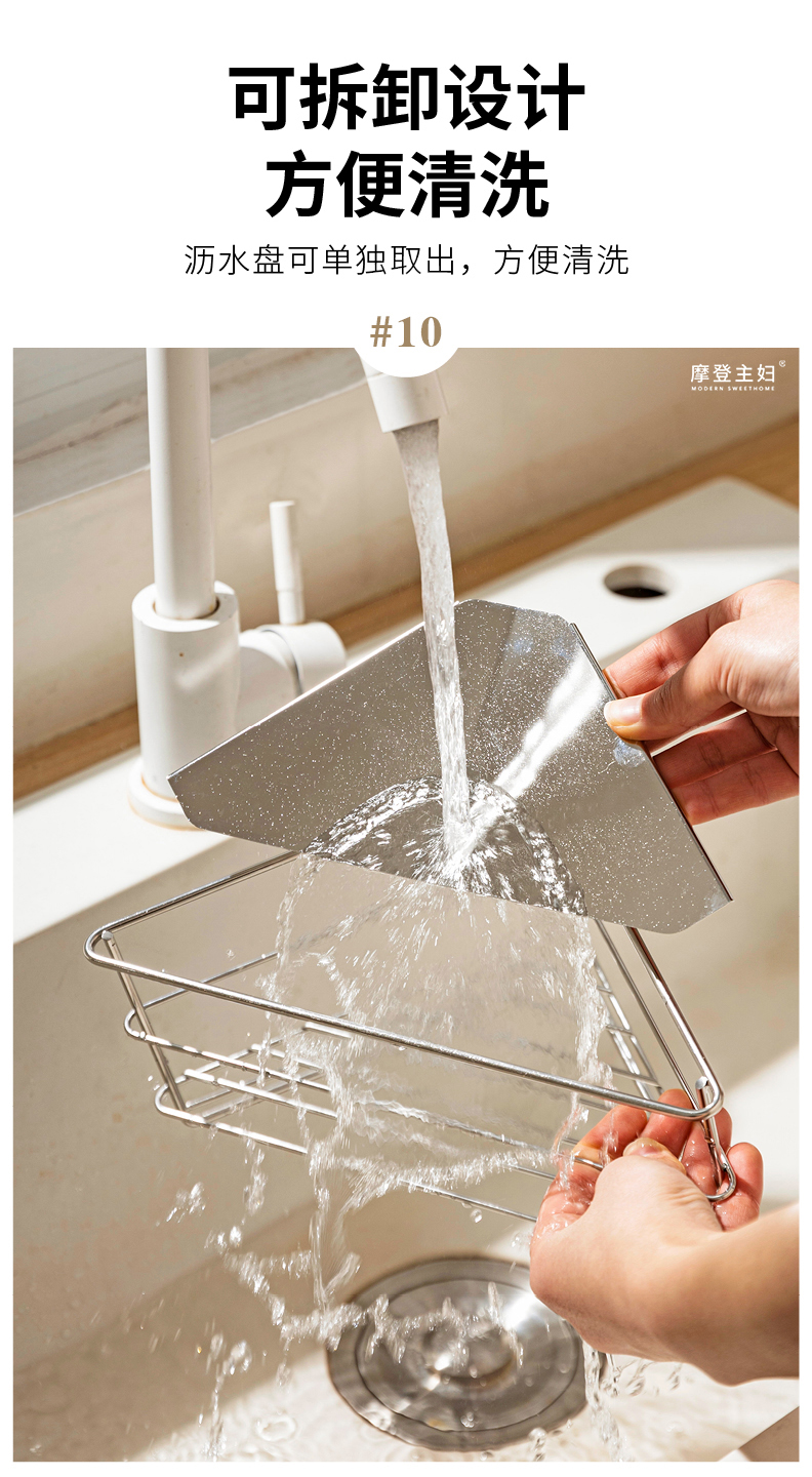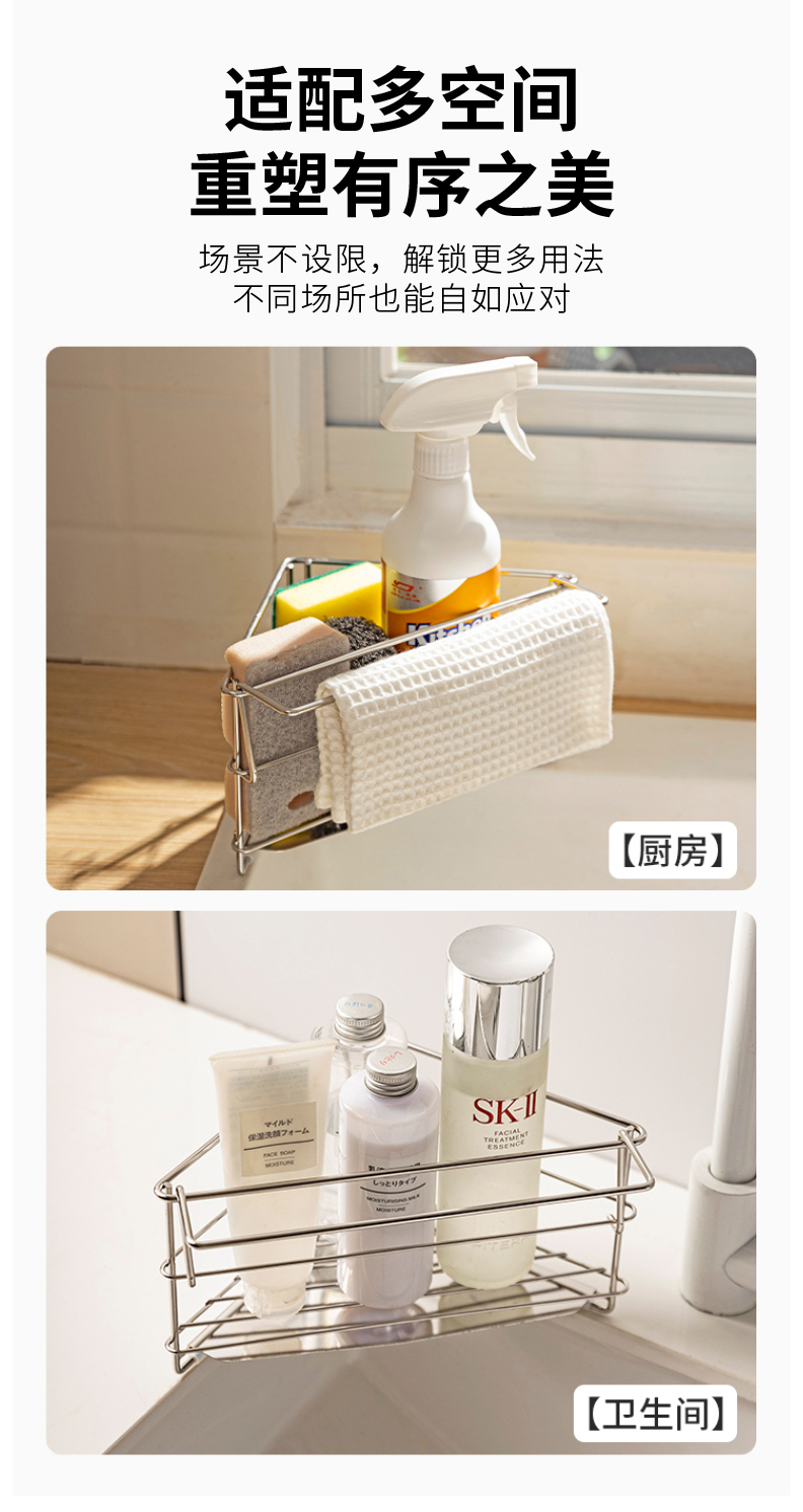摩登主妇三角抹布沥水架厨房304不锈钢洗碗布拐角收纳水槽置物架