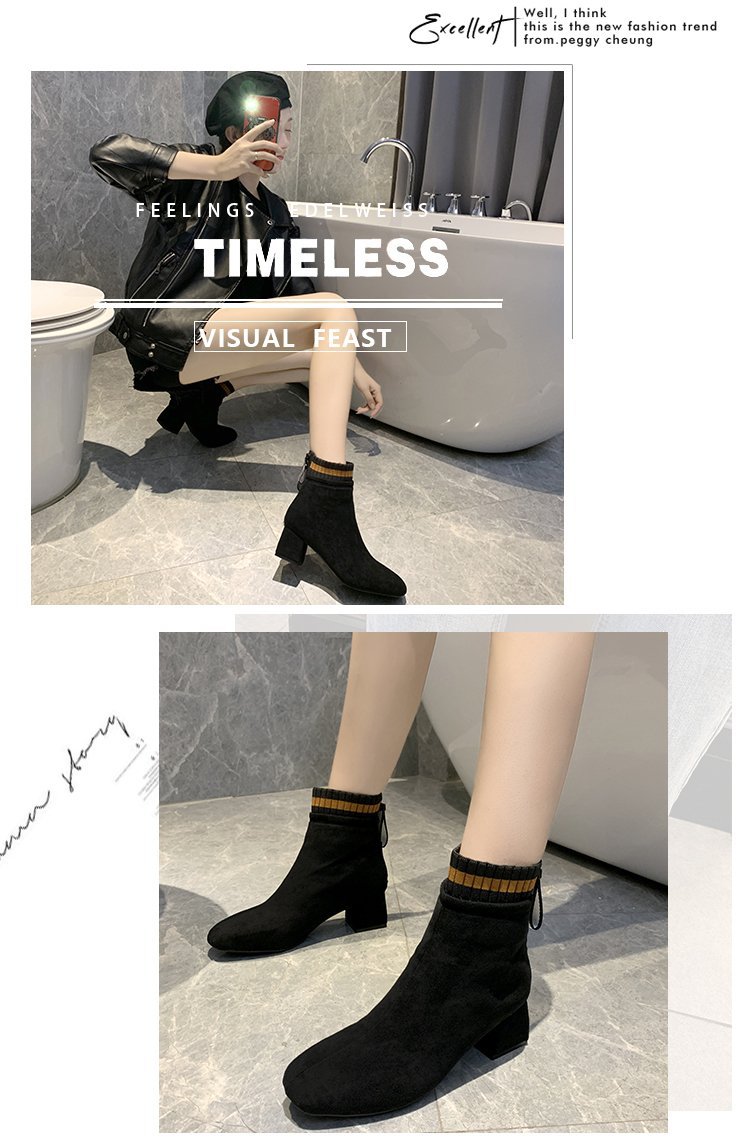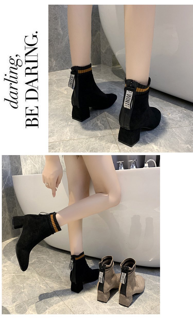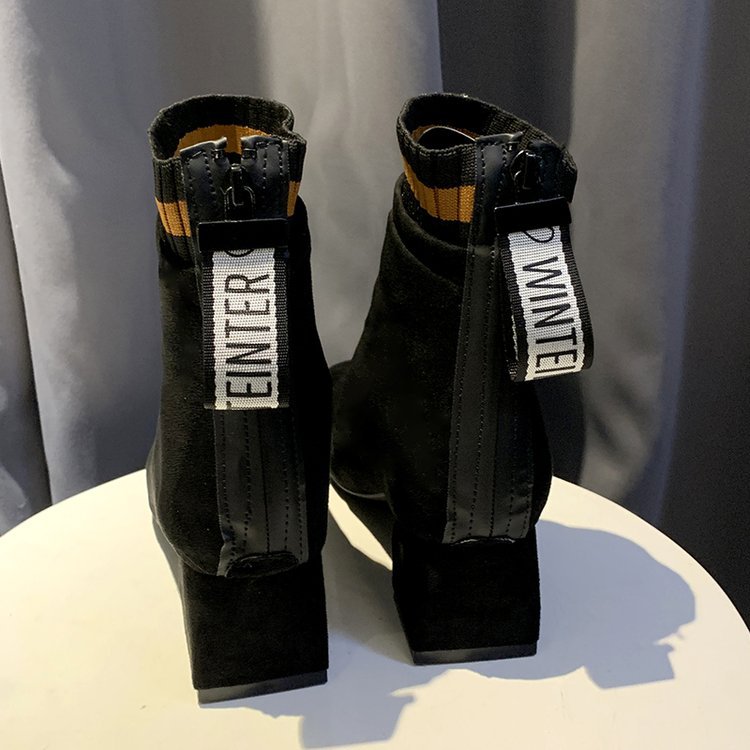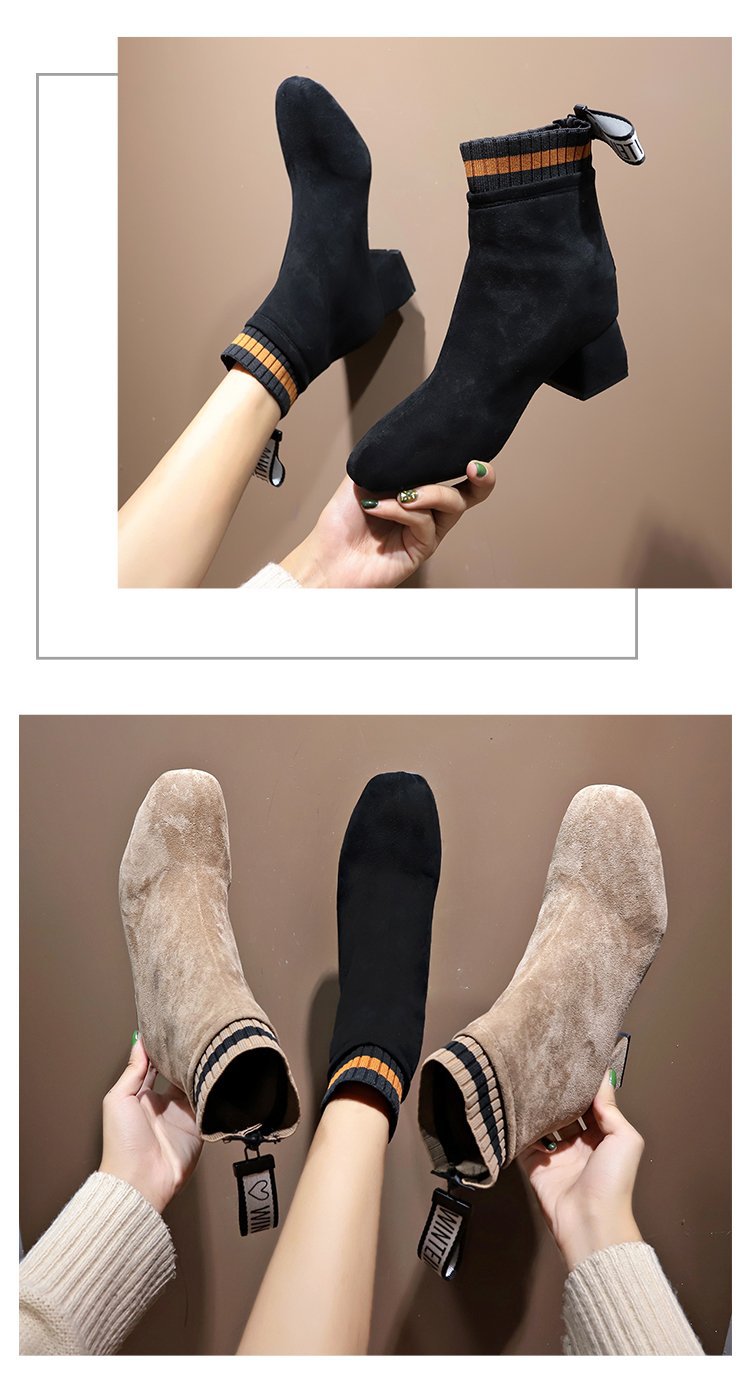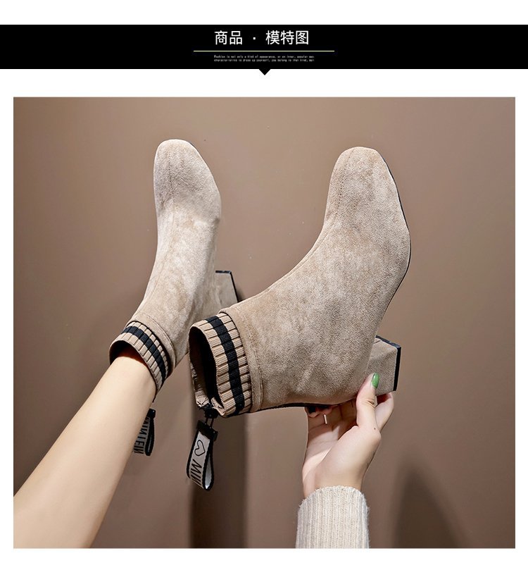 SX-9768秋冬新款短靴韩版绒面粗跟马丁靴