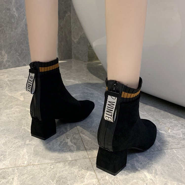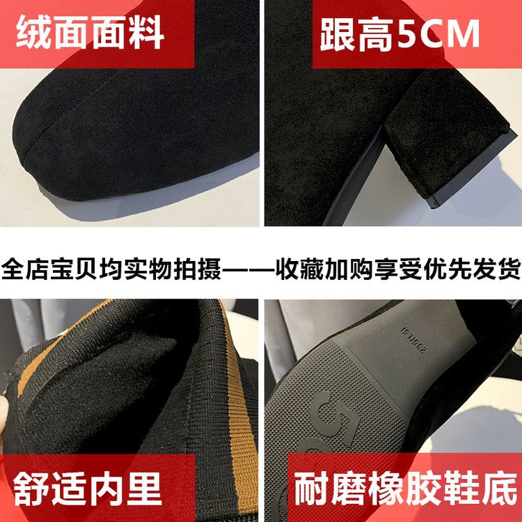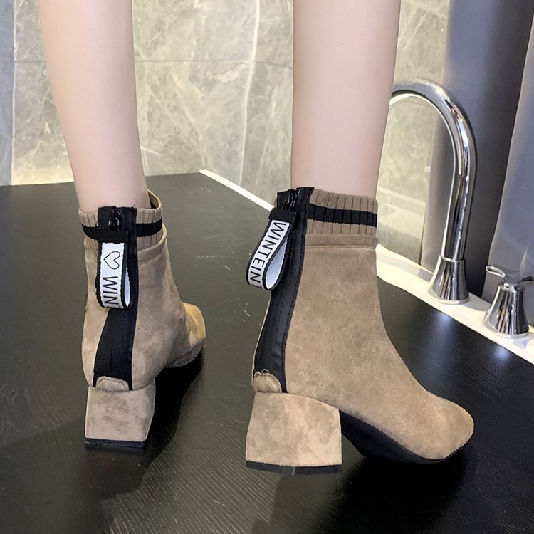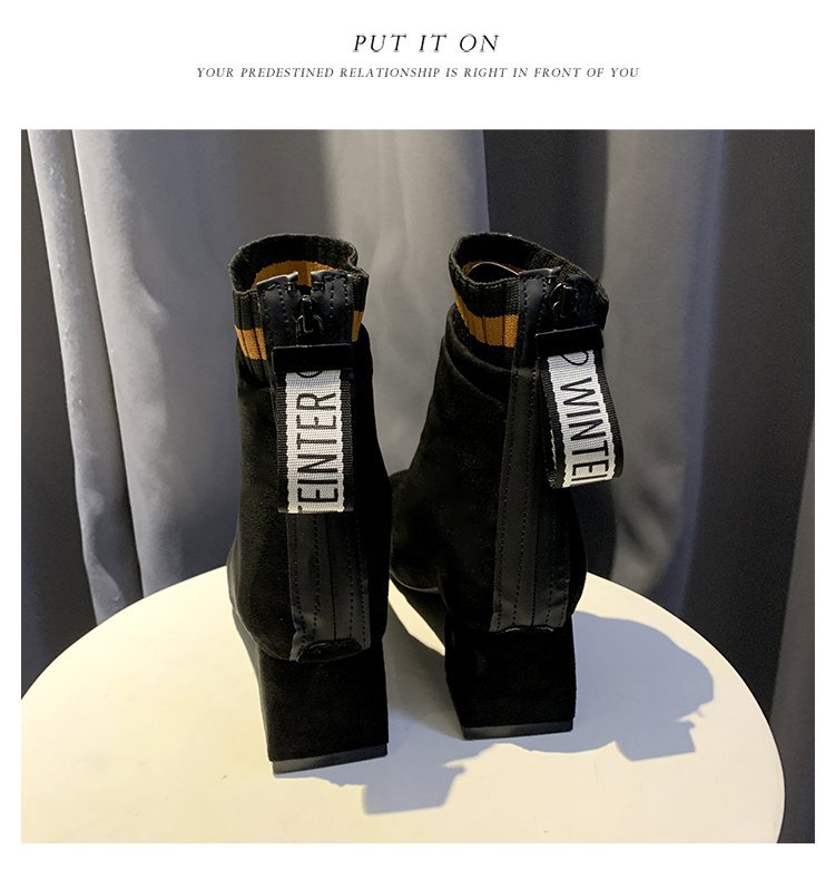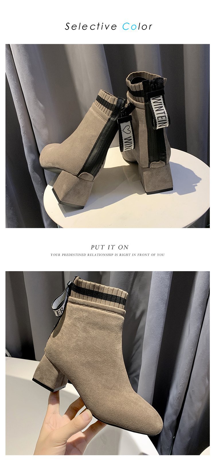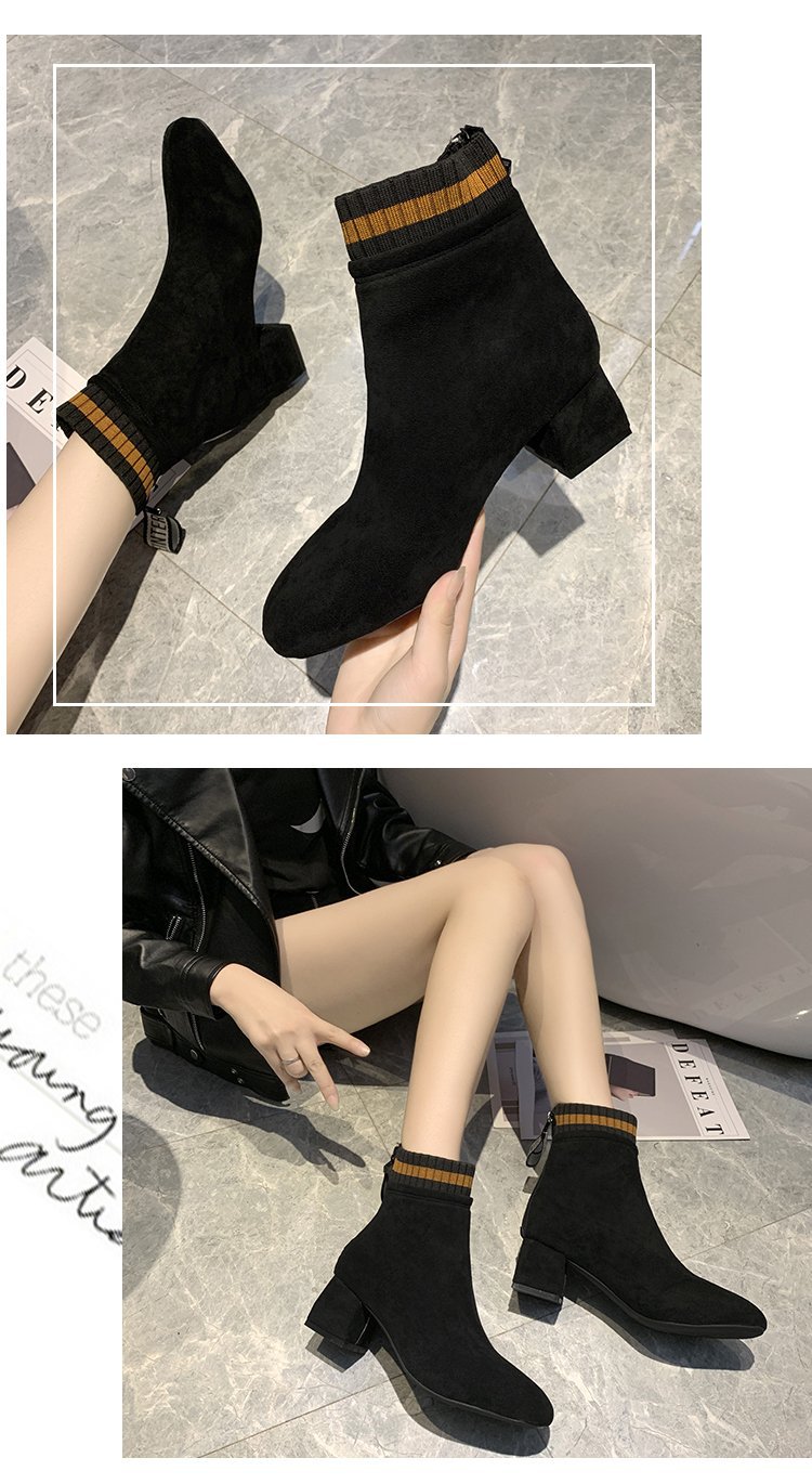 SX-9768秋冬新款短靴韩版绒面粗跟马丁靴