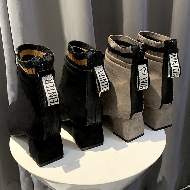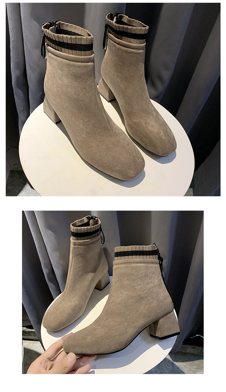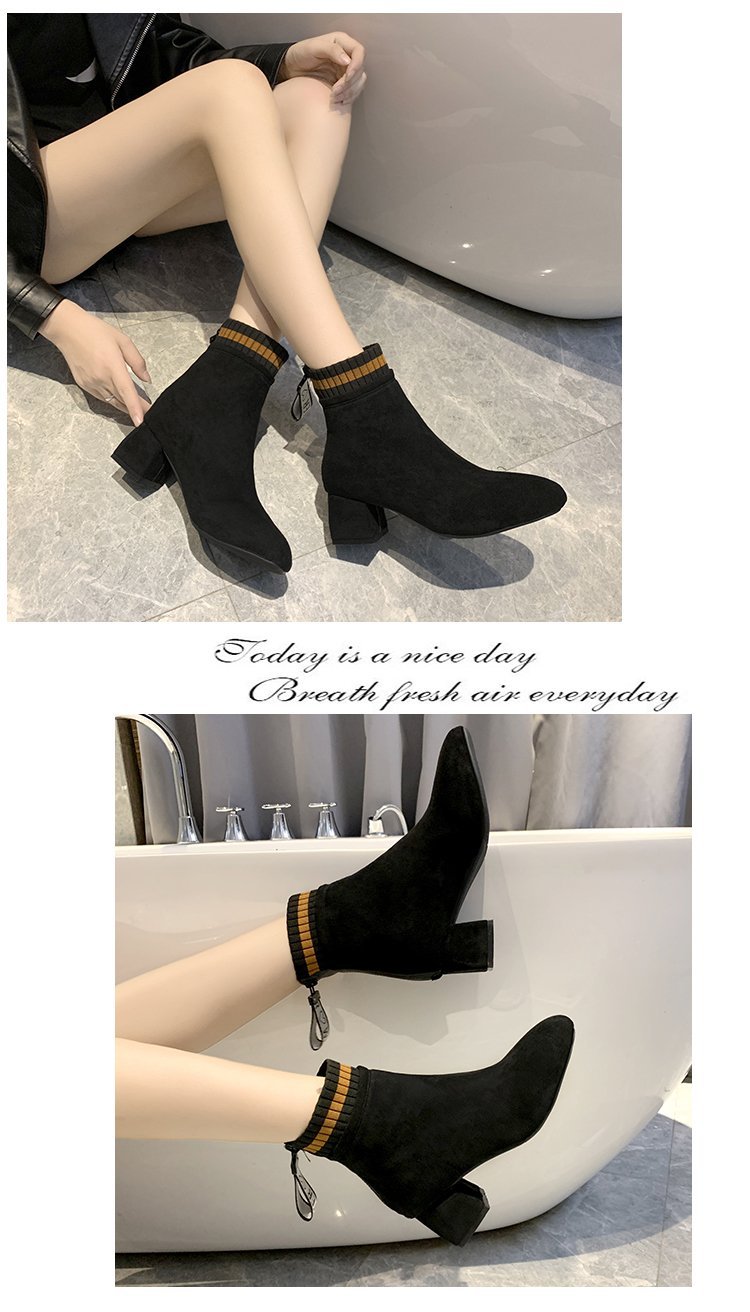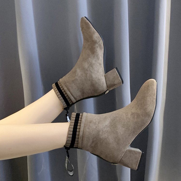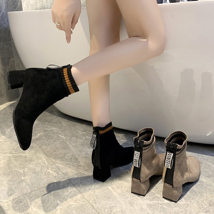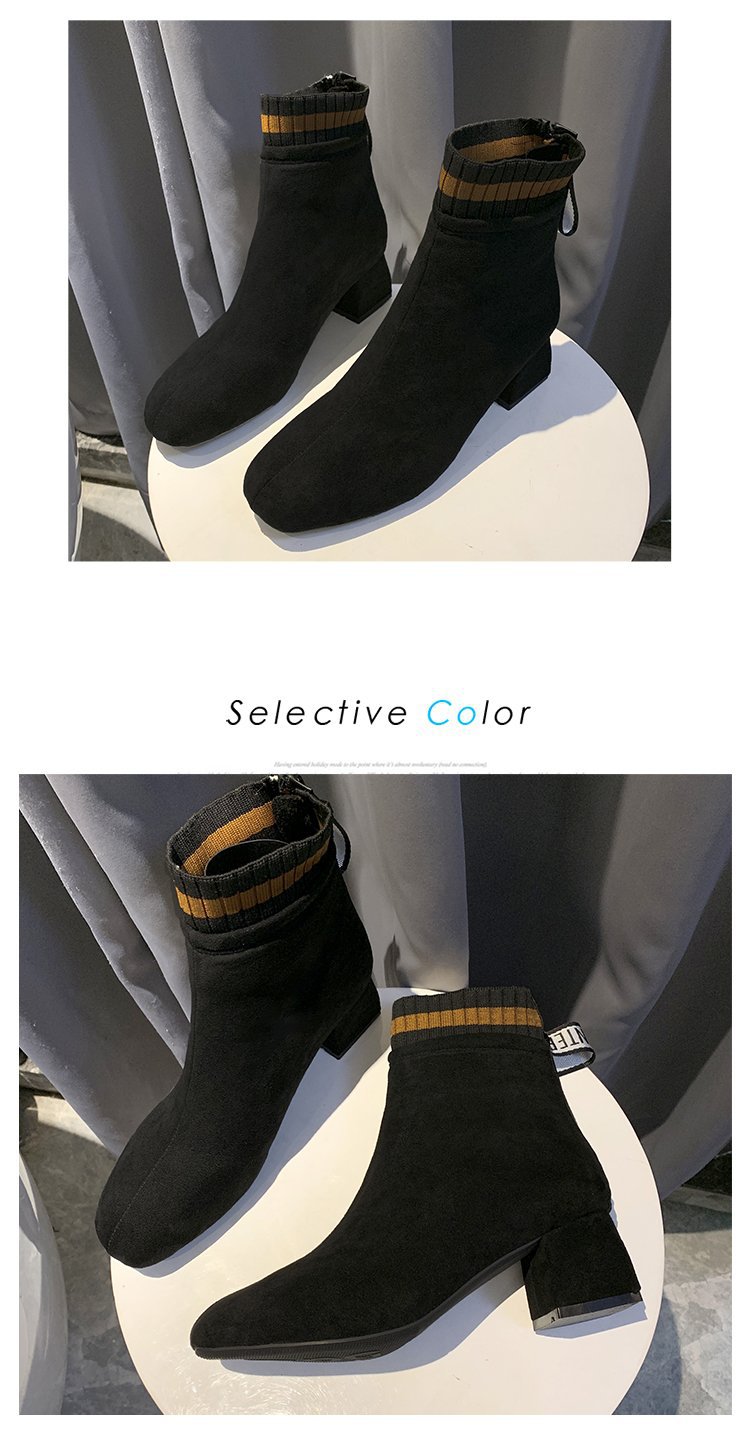 SX-9768秋冬新款短靴韩版绒面粗跟马丁靴