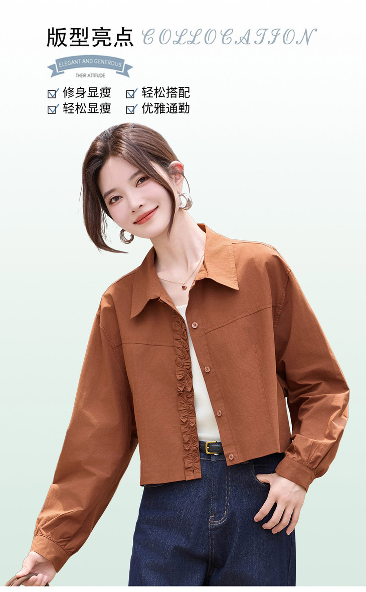 洋气薄款翻领花边衬衣,小个子短款上衣HR-LYSX2581 商品图2