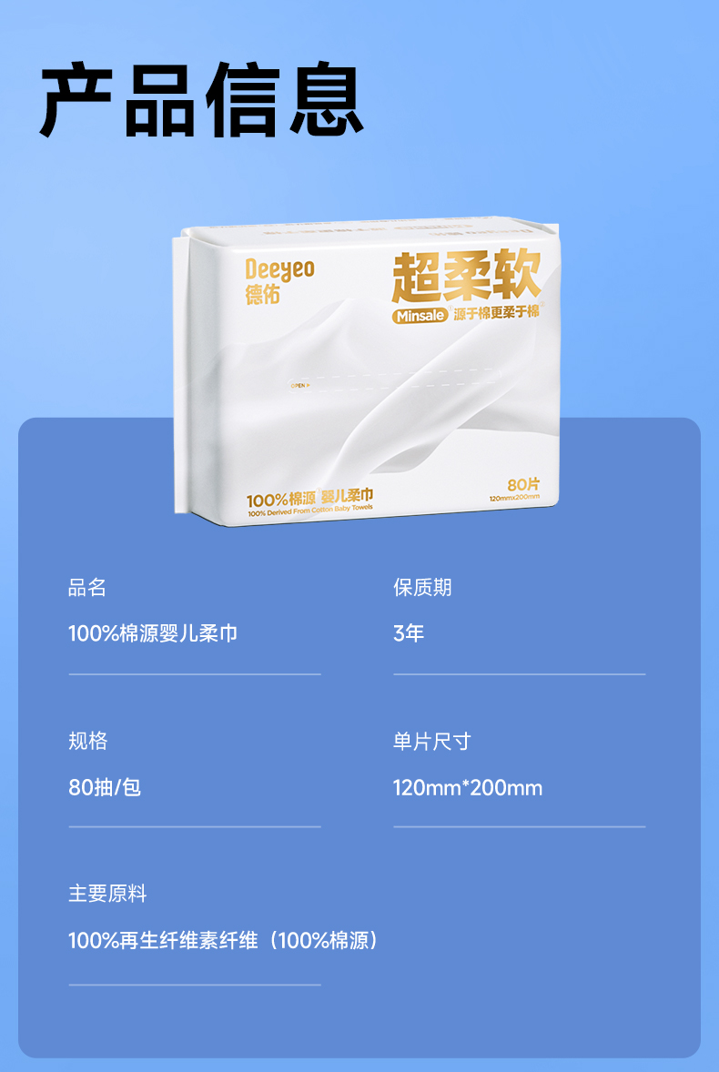 【GX】德佑棉赛尔抽取式50g绵柔巾80抽*6包/10包