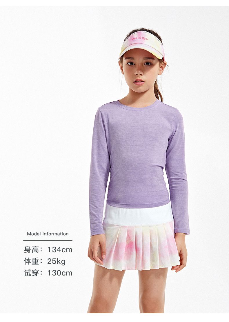 女童纯色T恤透气气弹力亲肤罩衫吸汗圆领长袖打底衫