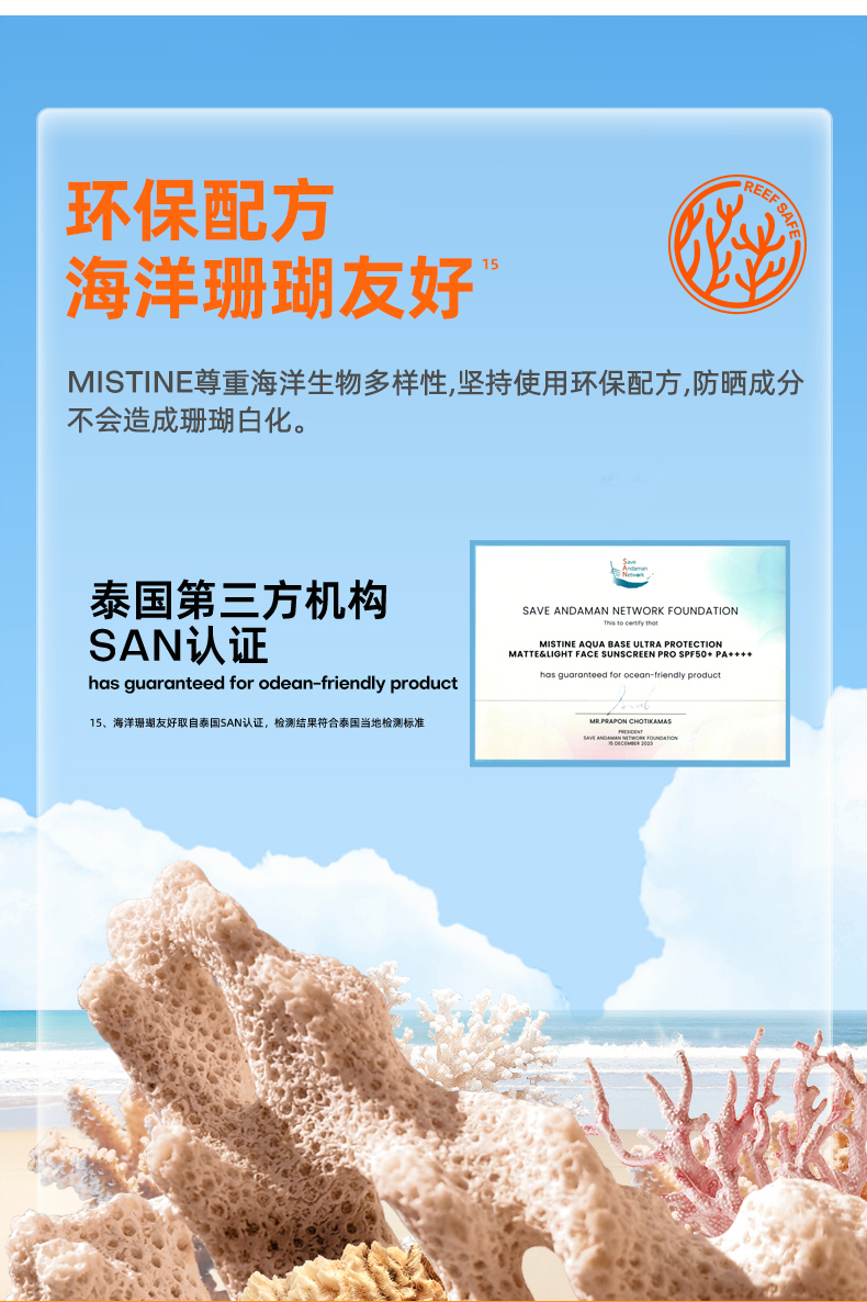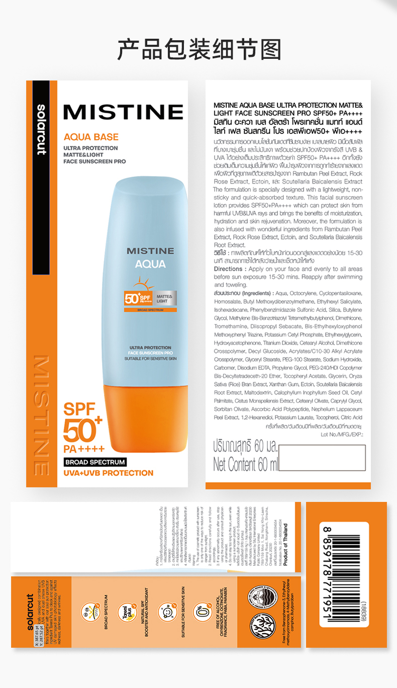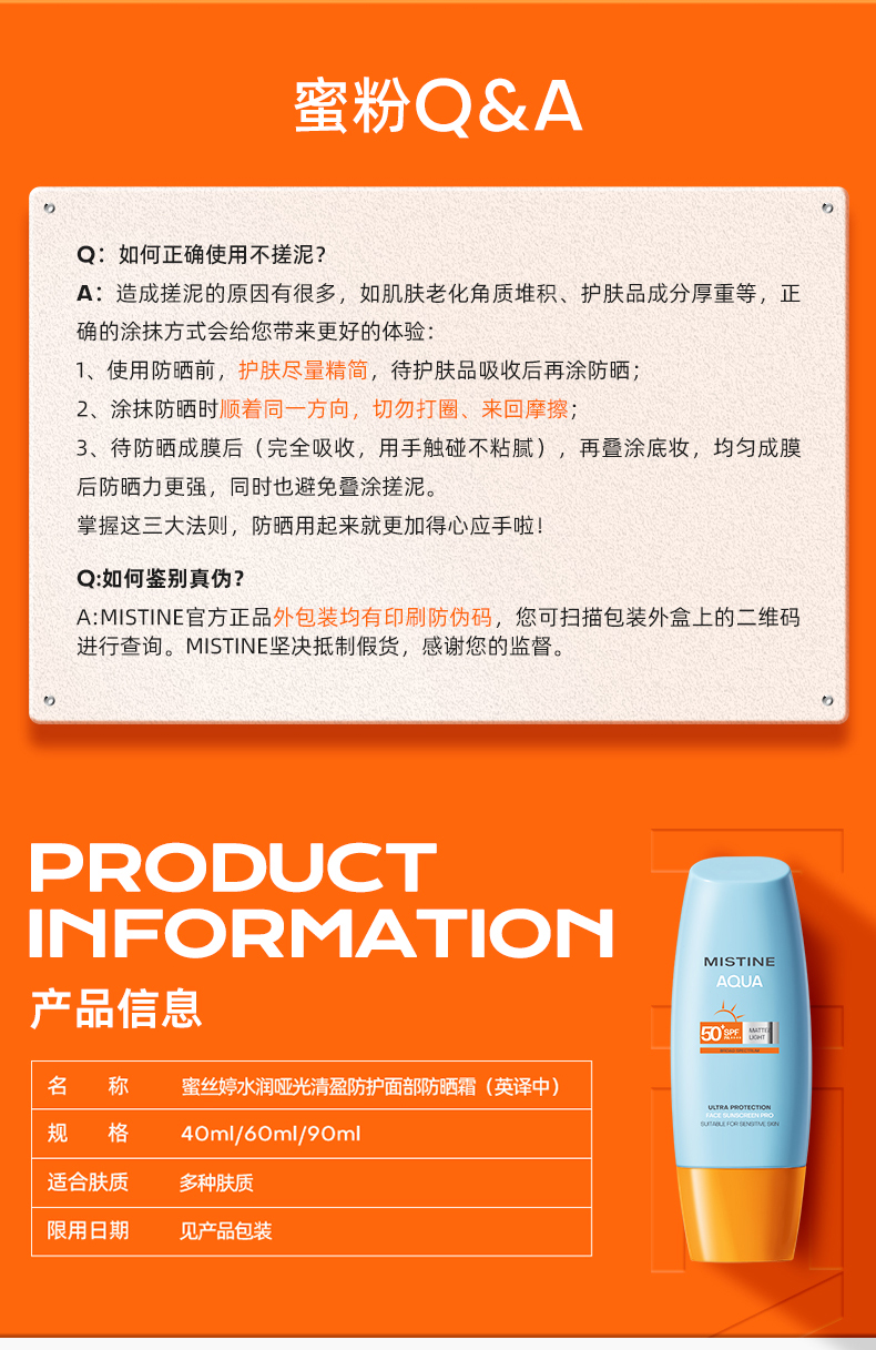 24版泰国Mistine蜜丝婷哑光清透防晒霜60ml /40ml