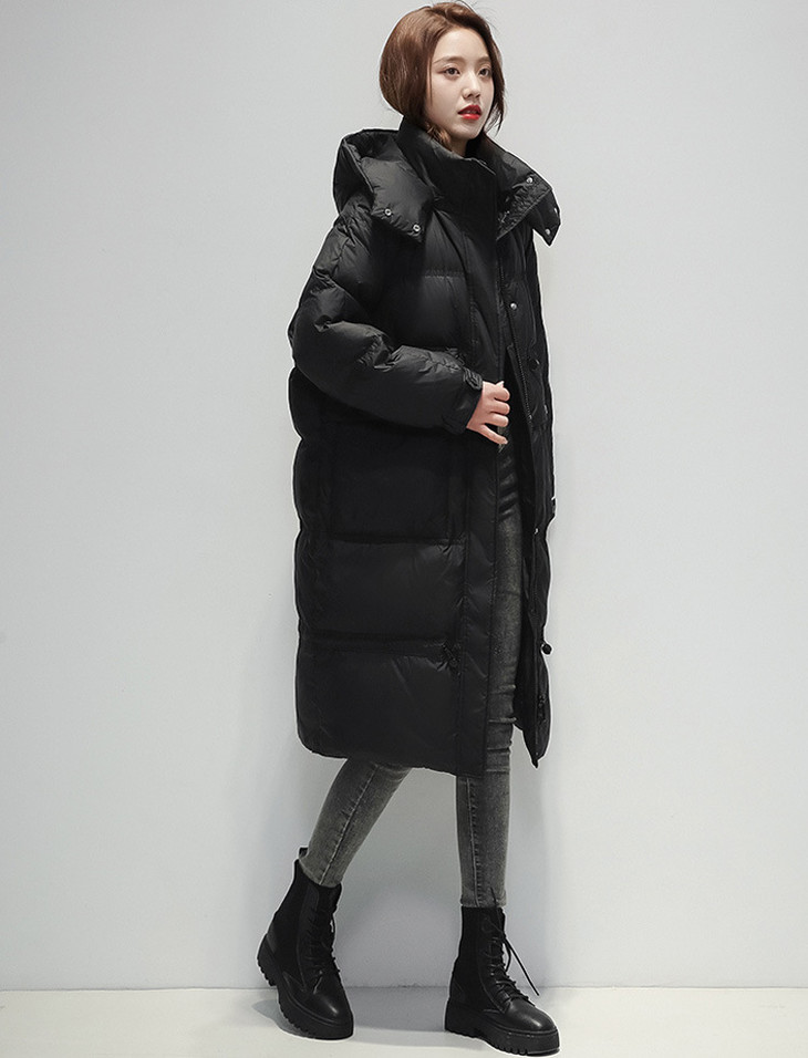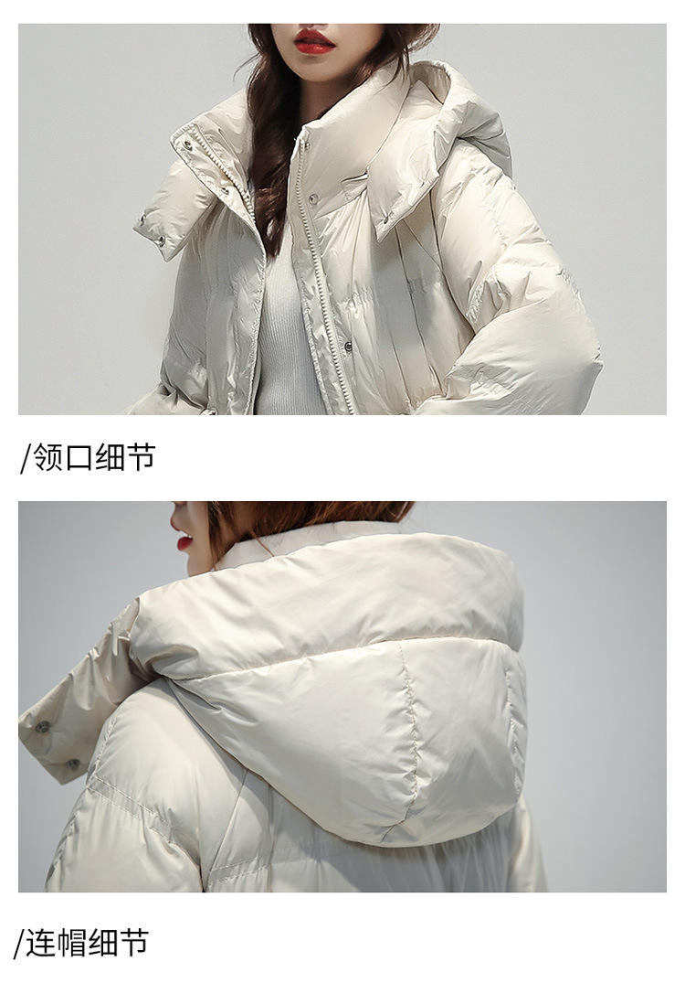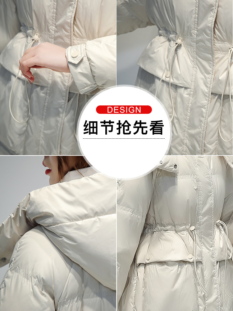 SMD新款羽绒服女中长款韩版宽松加厚白鸭绒冬装外套