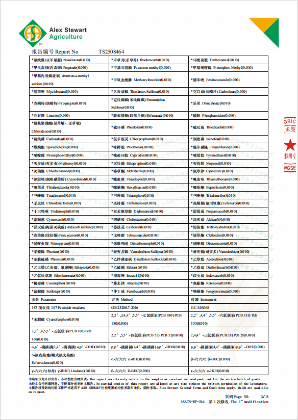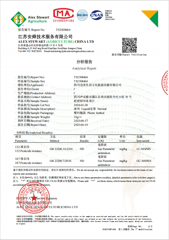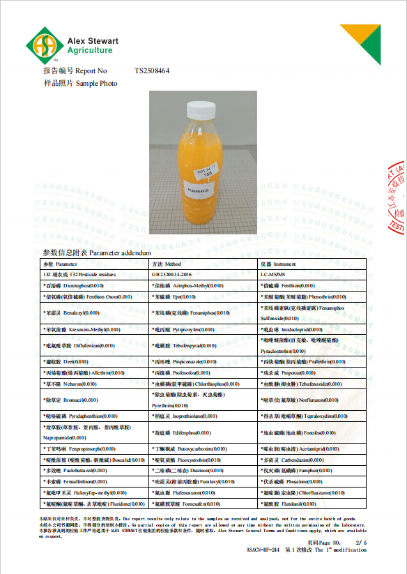 耙耙柑原料果汁也做了检测,无农残检出。