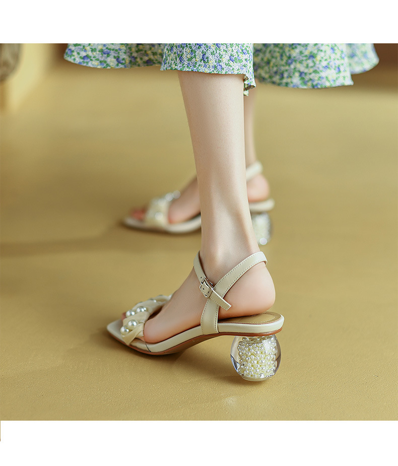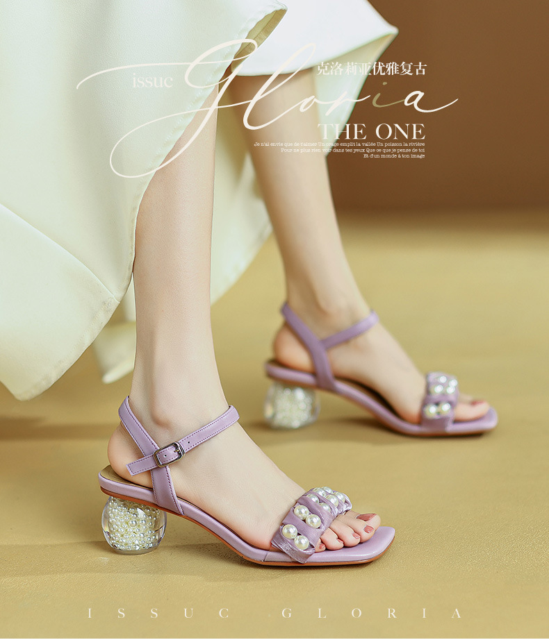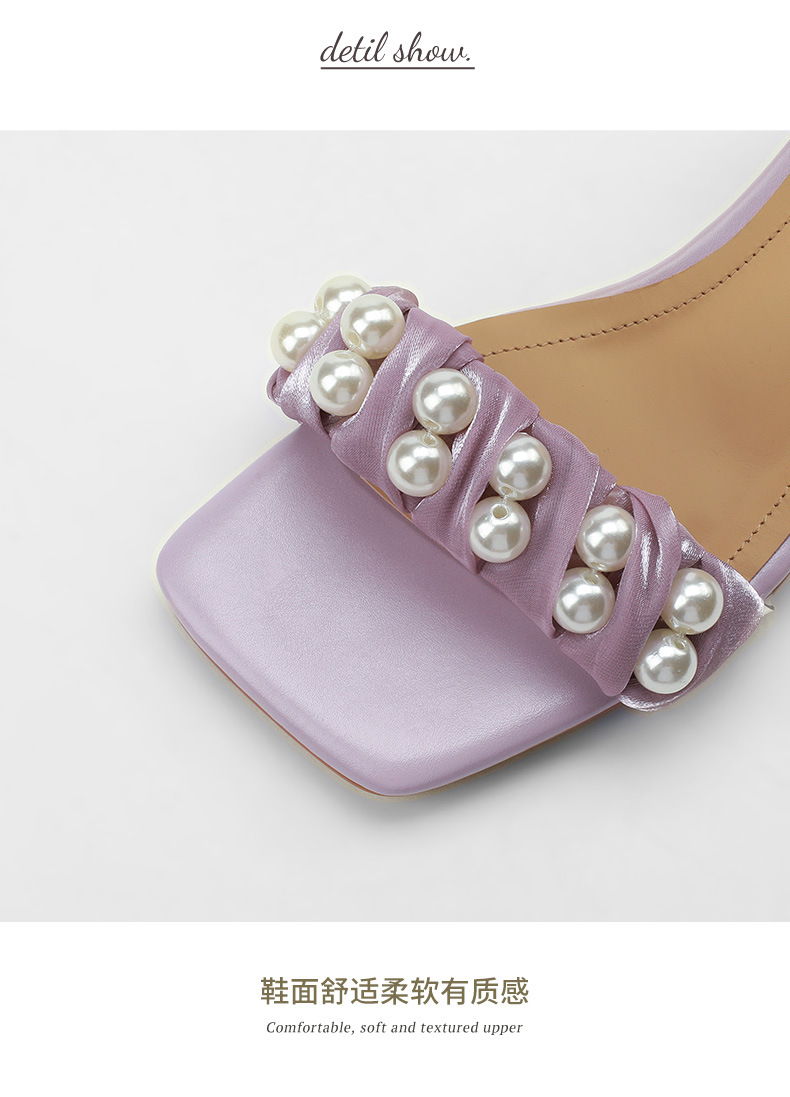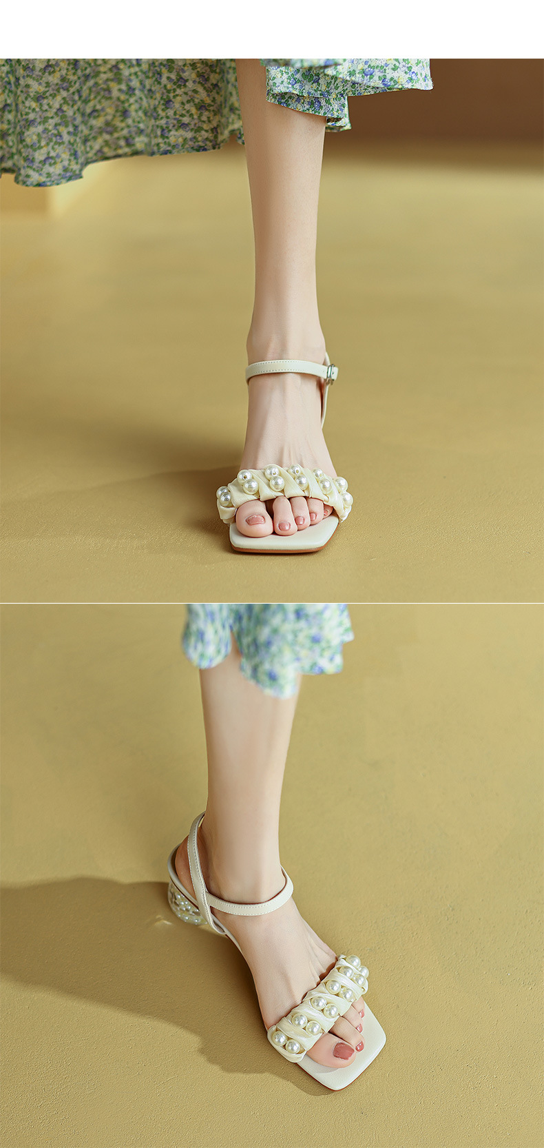 OLD-m951aa新款法式时尚气质方头高跟珍珠露趾凉鞋