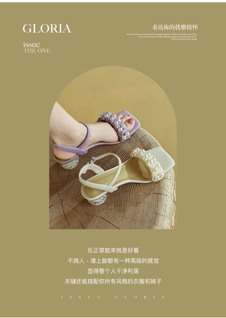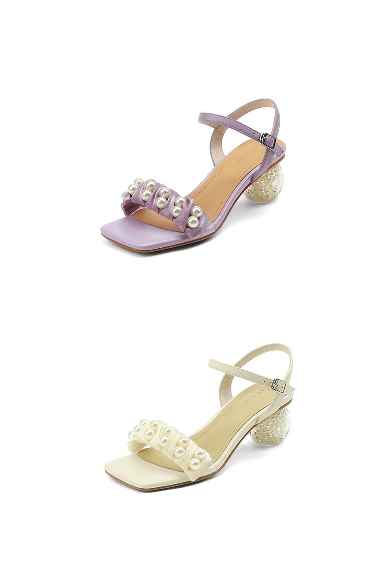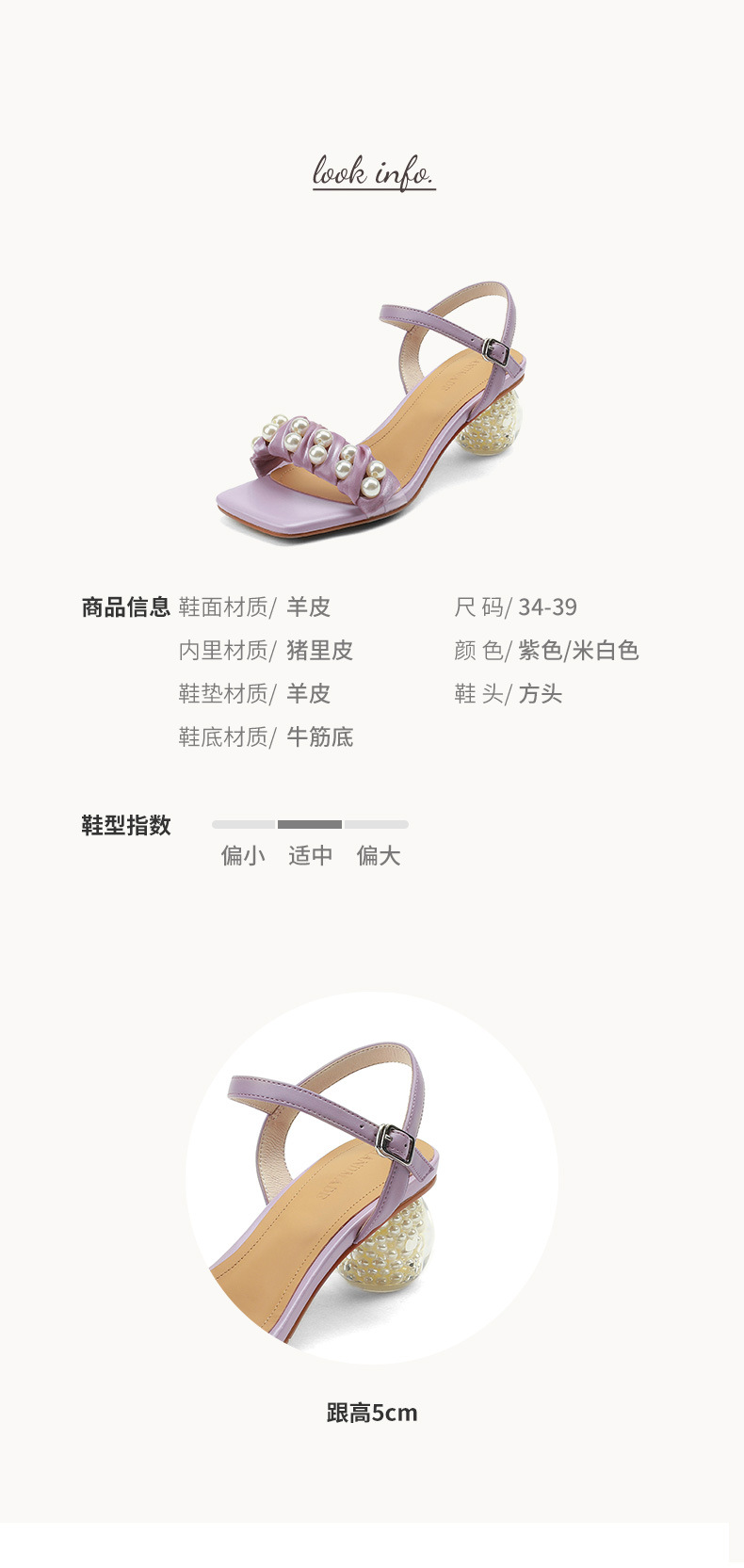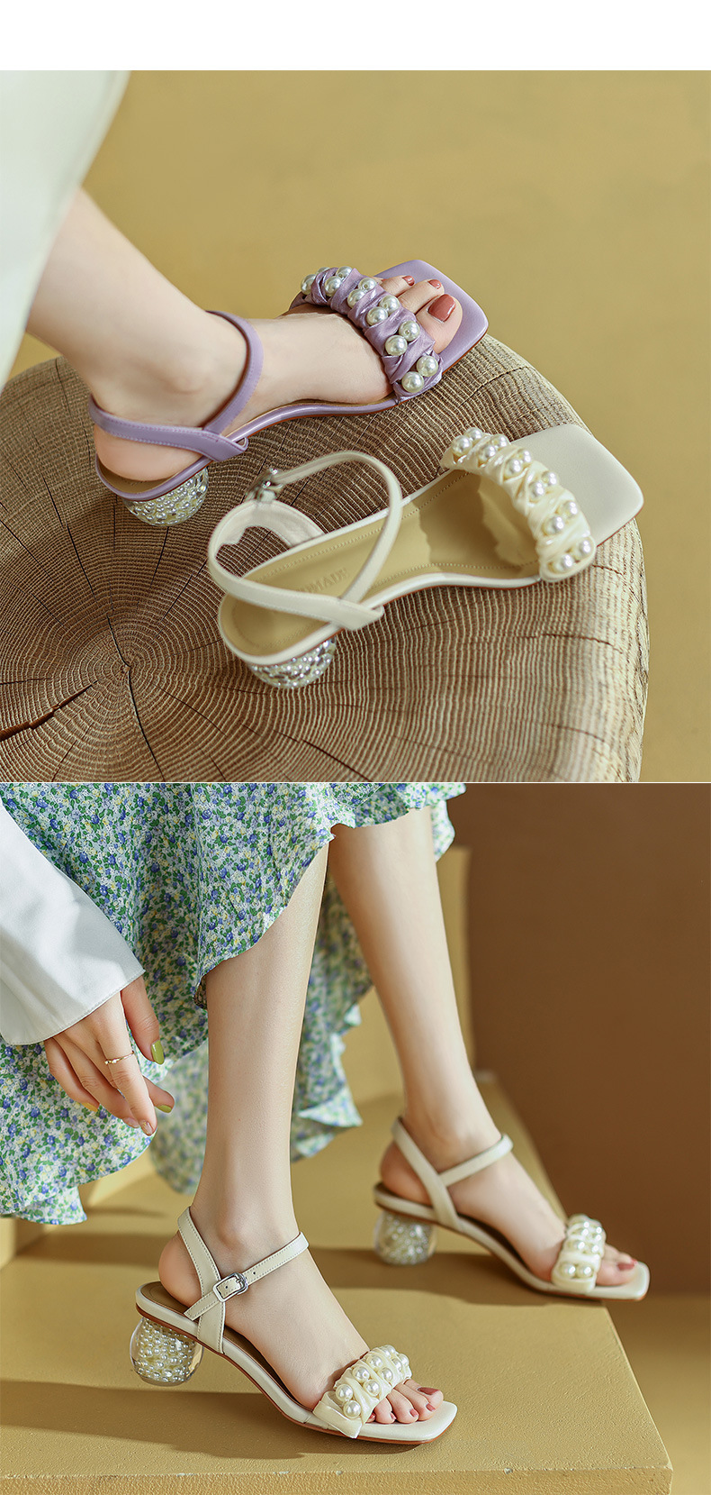 OLD-m951aa新款法式时尚气质方头高跟珍珠露趾凉鞋
