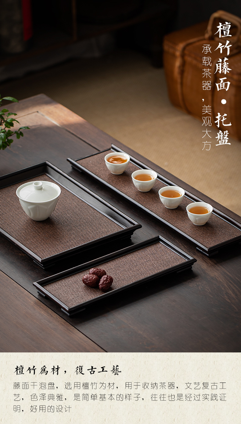 日式竹篾茶托盘 竹制席面干泡壶承壶垫茶托盘长方形