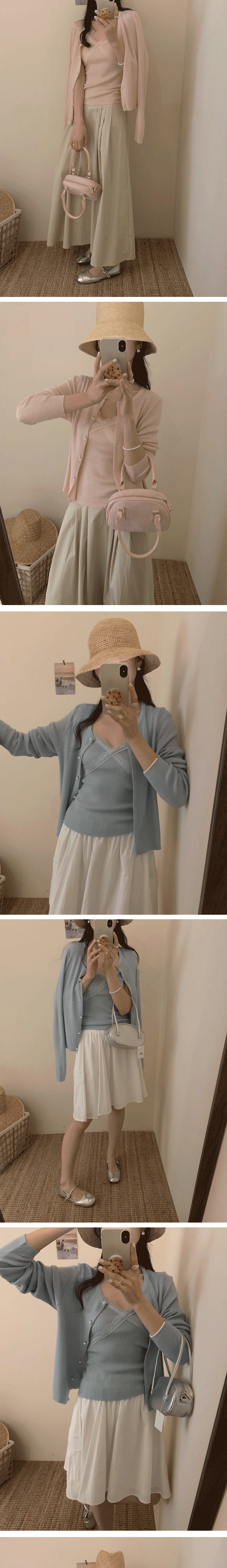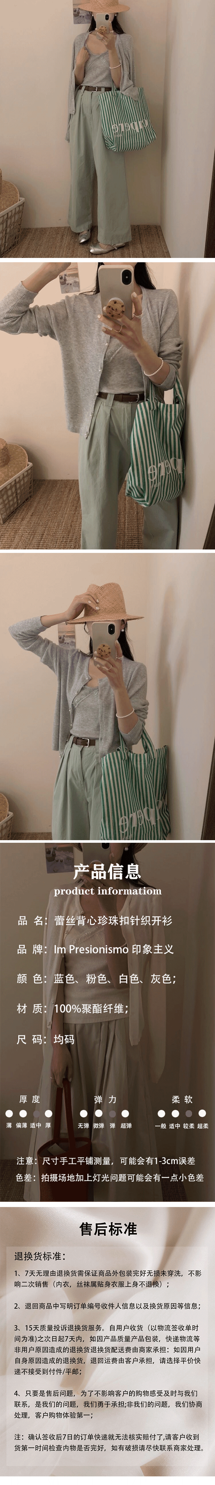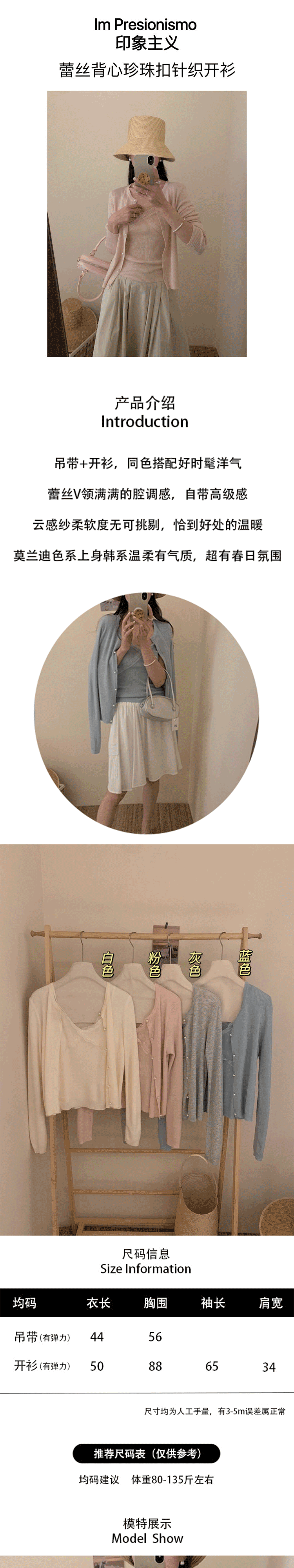 蕾丝背心珍珠扣针织开衫,蕾丝V领满满的腔调感,云感纱柔软度无可挑剔,高弹亲肤,蓬松软糯