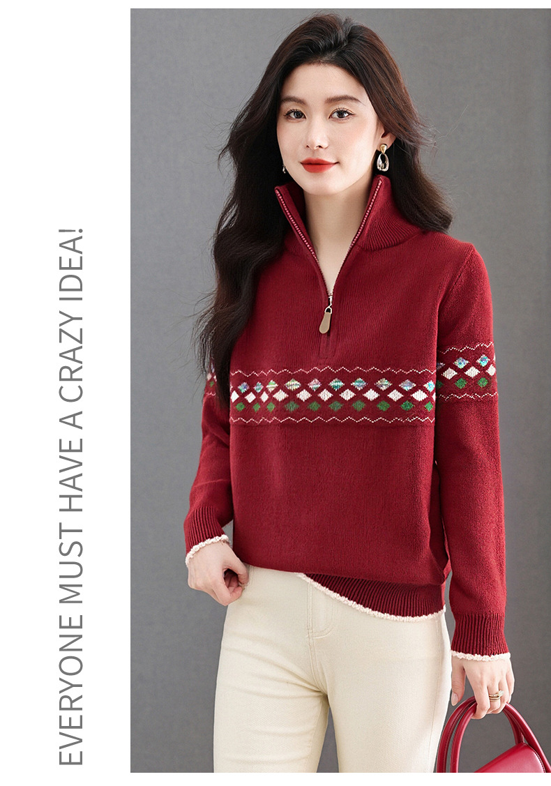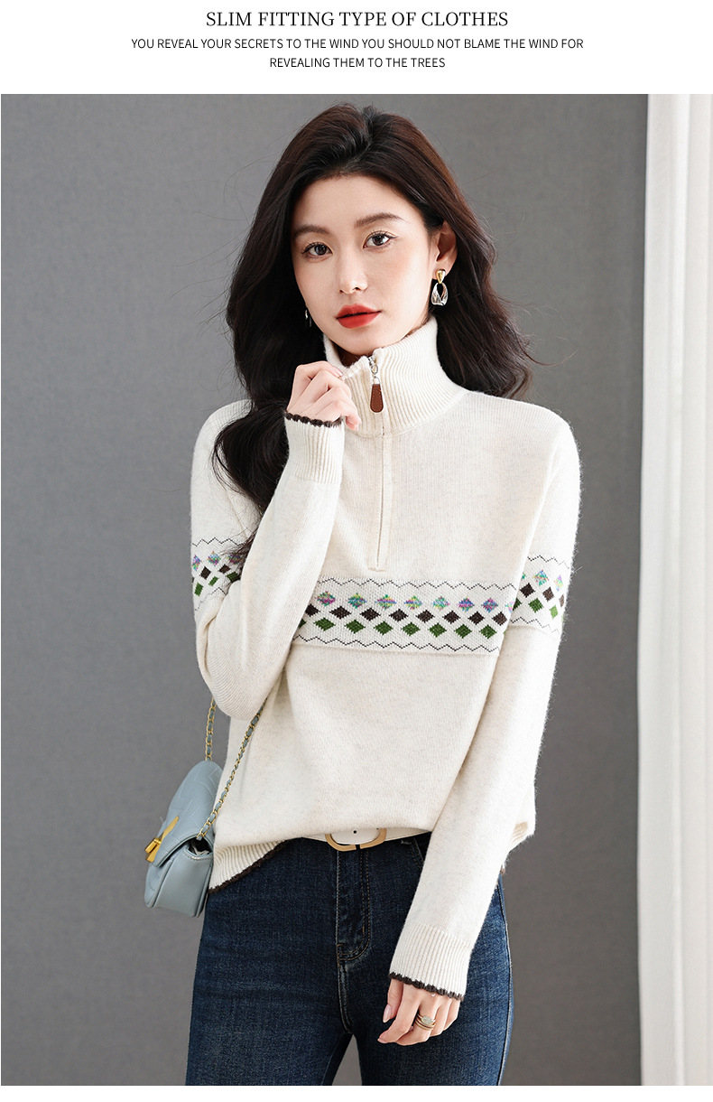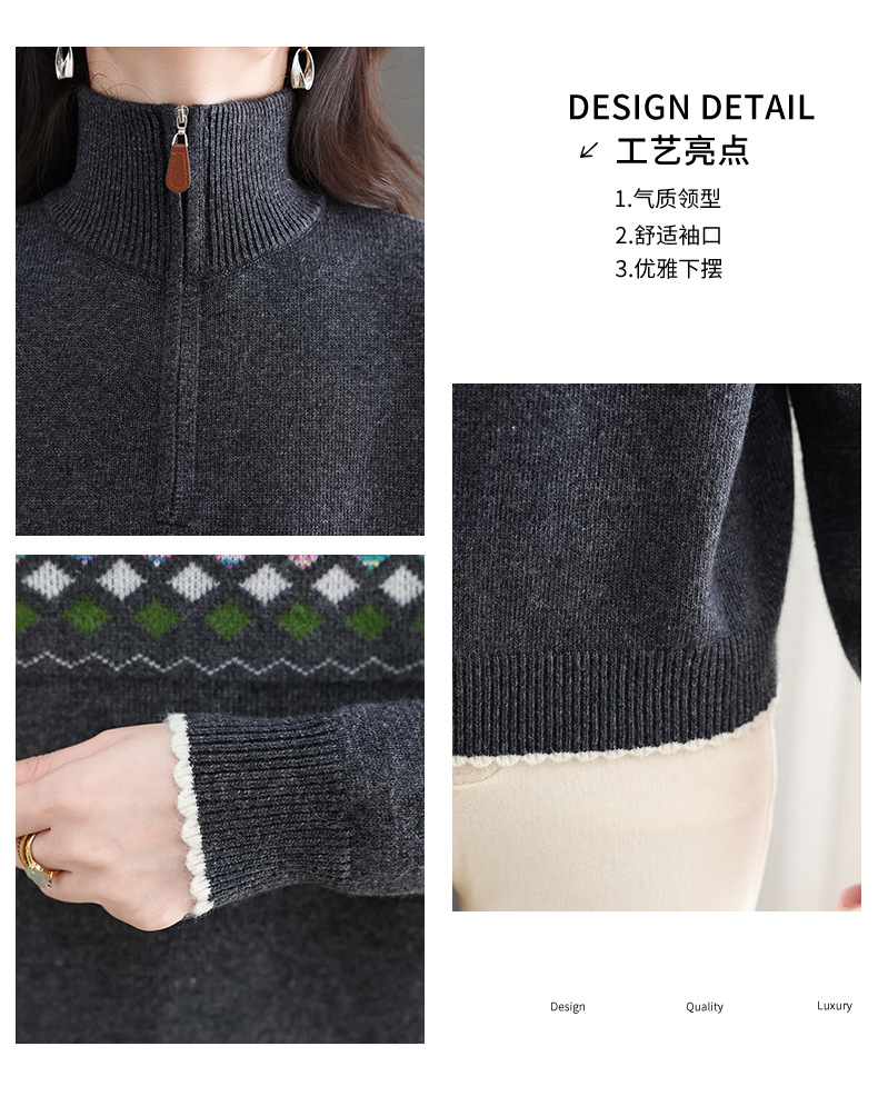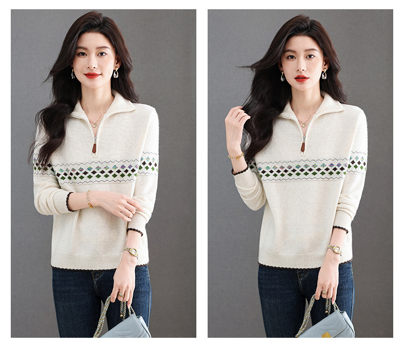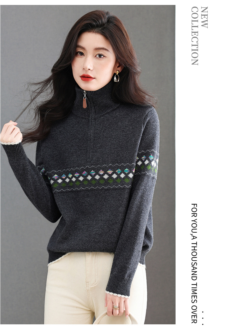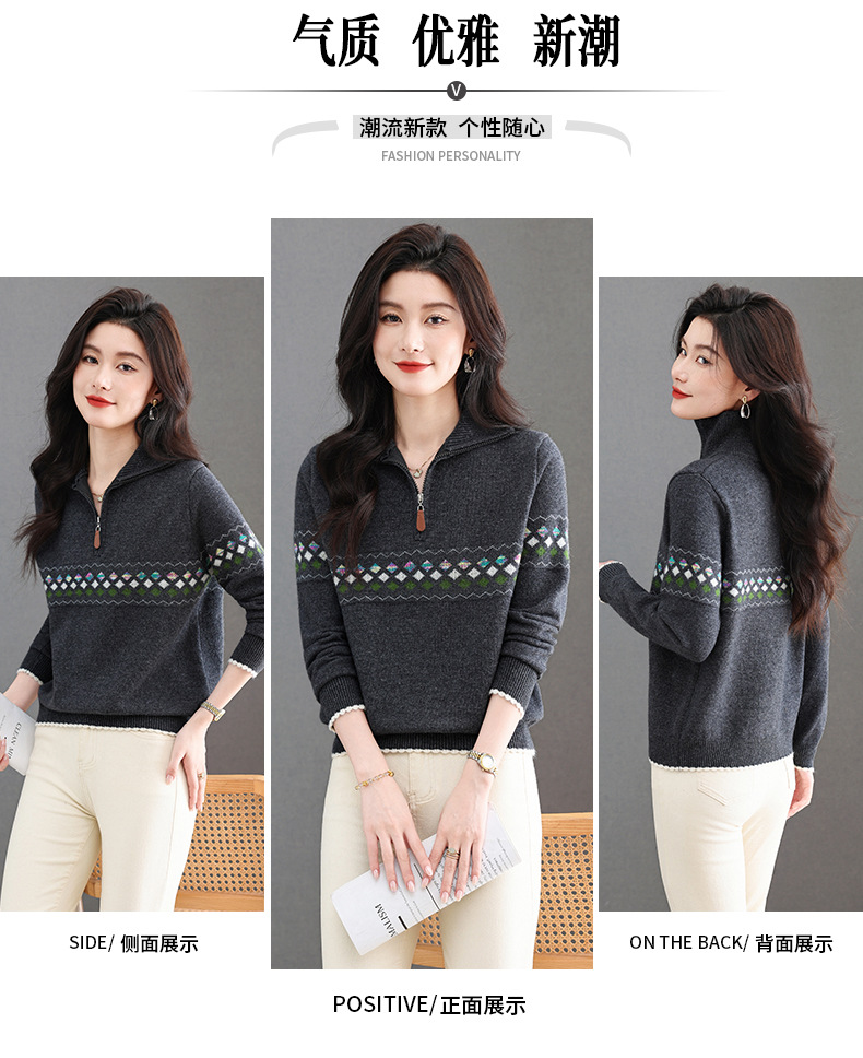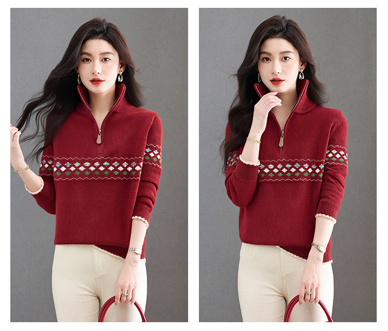 CC翻领毛衣女款2025新款半拉链针织衫保暖漂亮洋气高级感打底衫冬季
