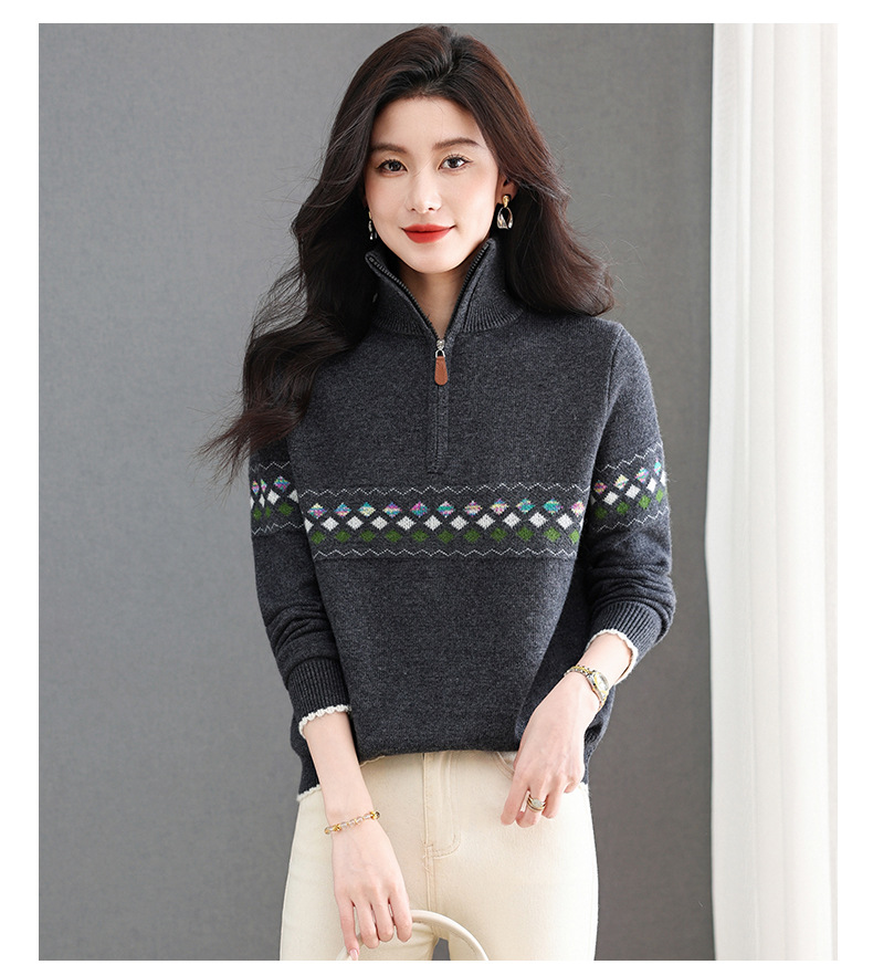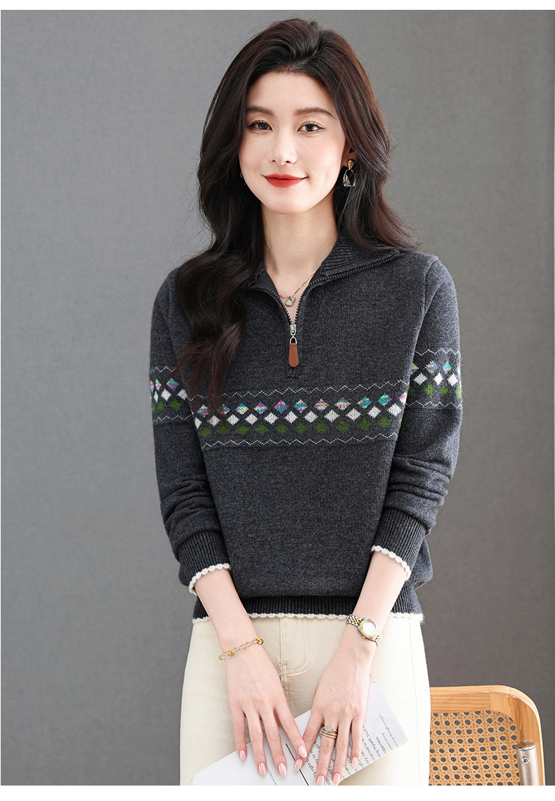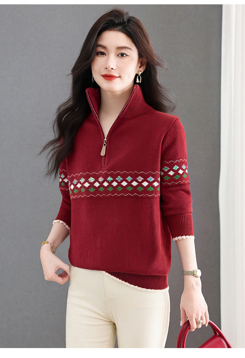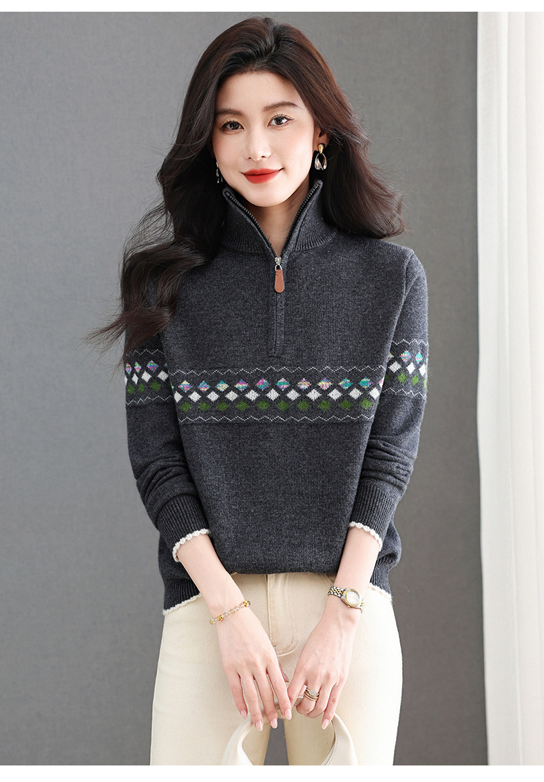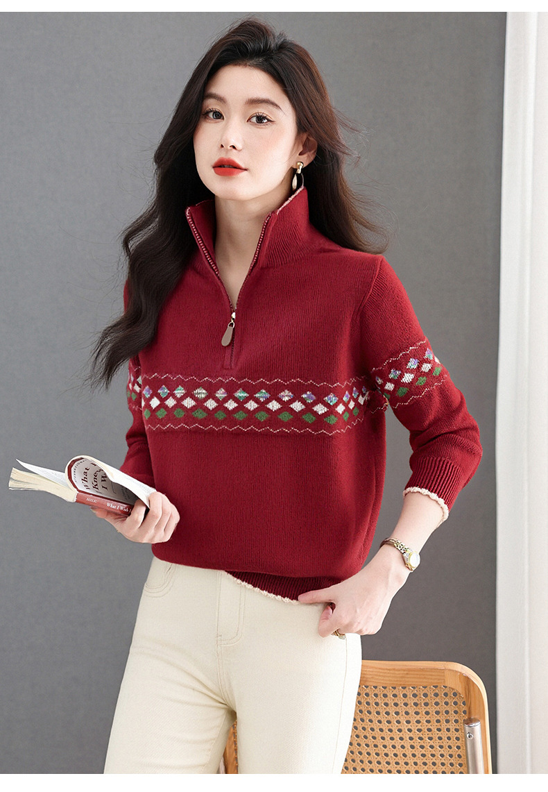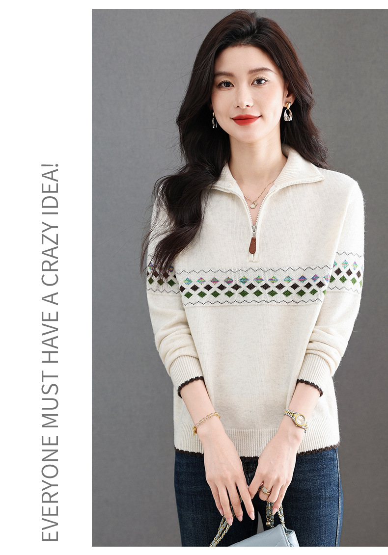 CC翻领毛衣女款2025新款半拉链针织衫保暖漂亮洋气高级感打底衫冬季