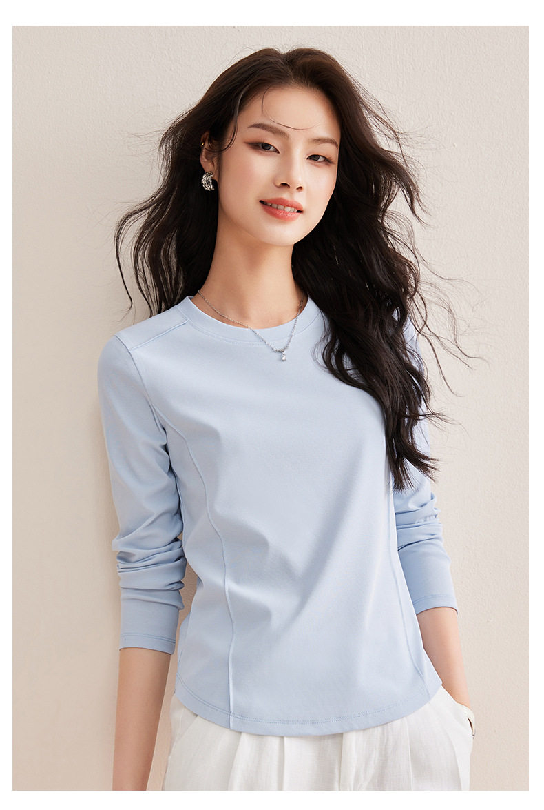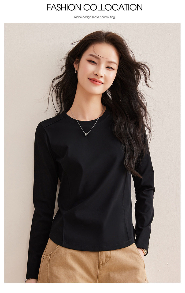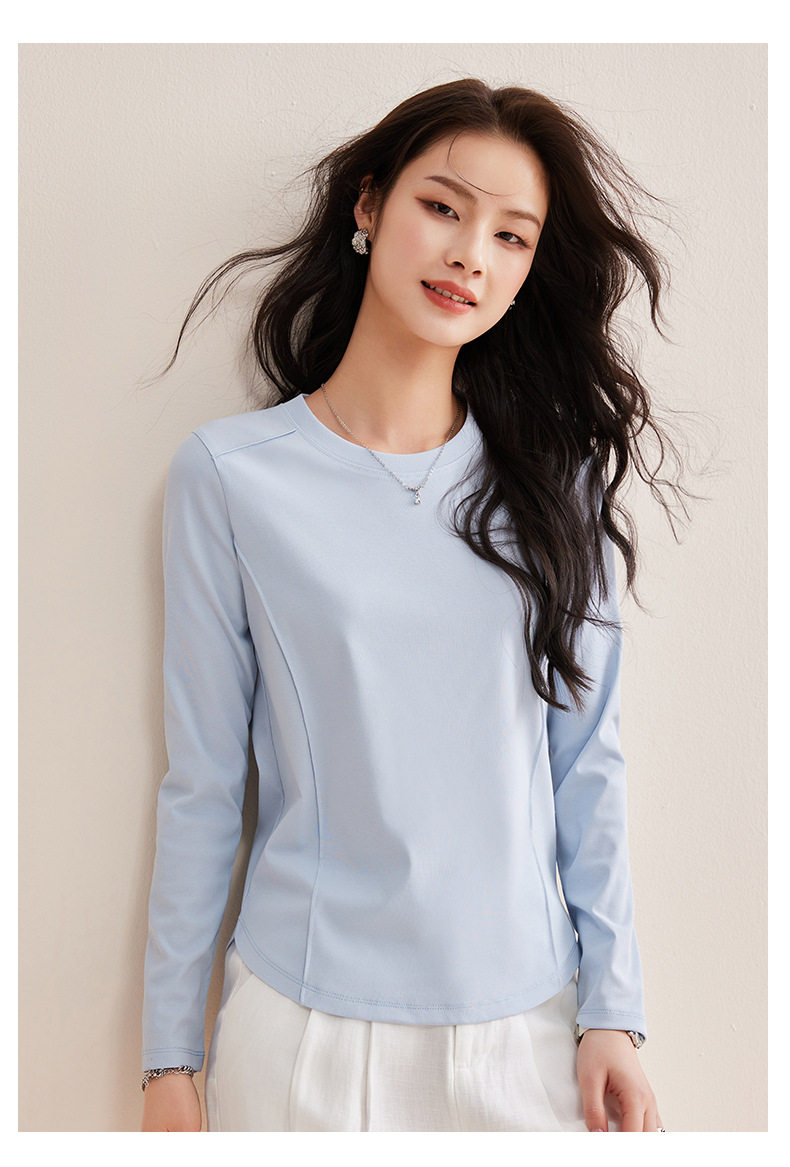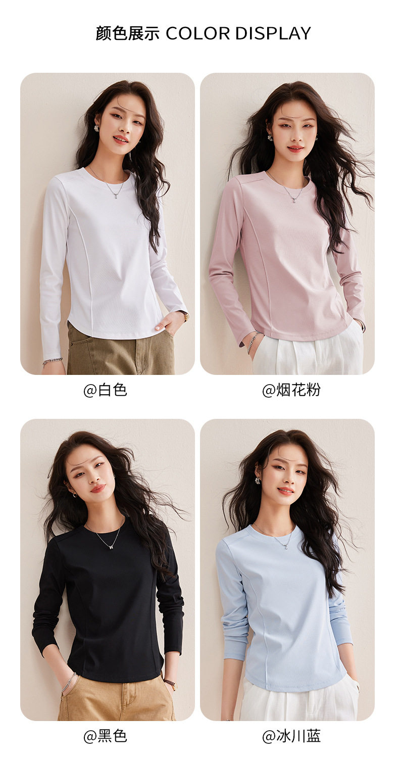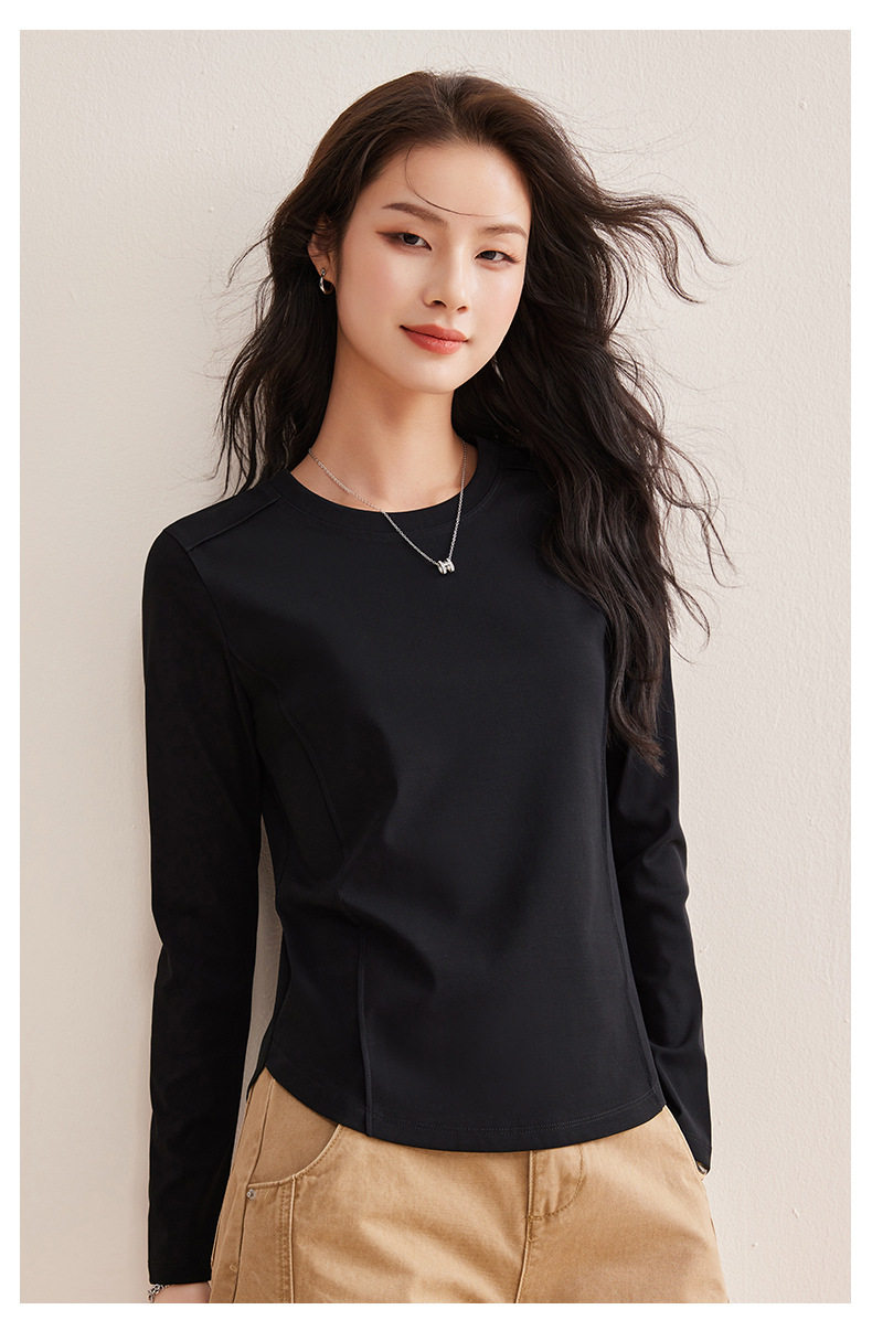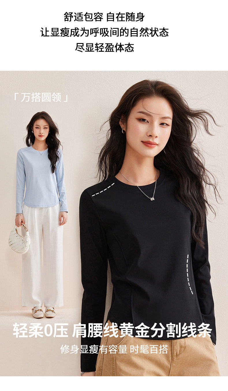 「自j」全新升级【铂金会员119/天猫159/差价40】(85442)洛诗琳鱼骨分割圆弧下摆长袖T2026春季新款圆领纯色打底上衣