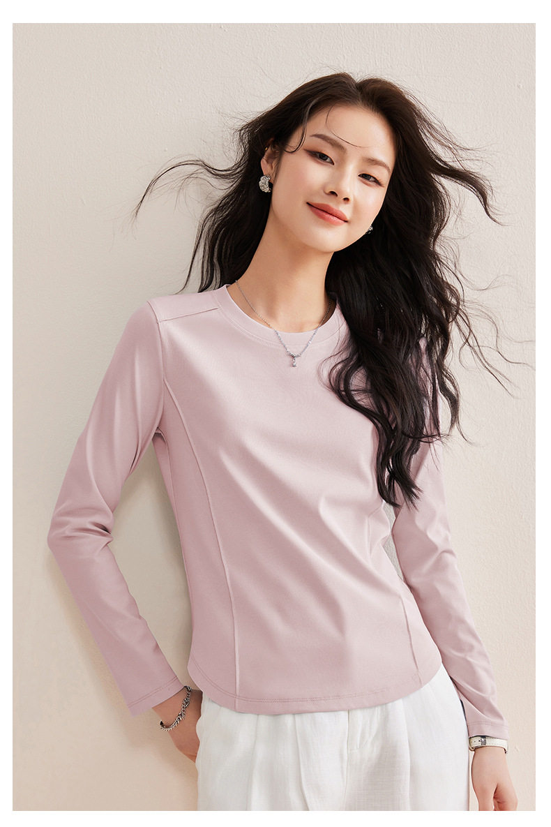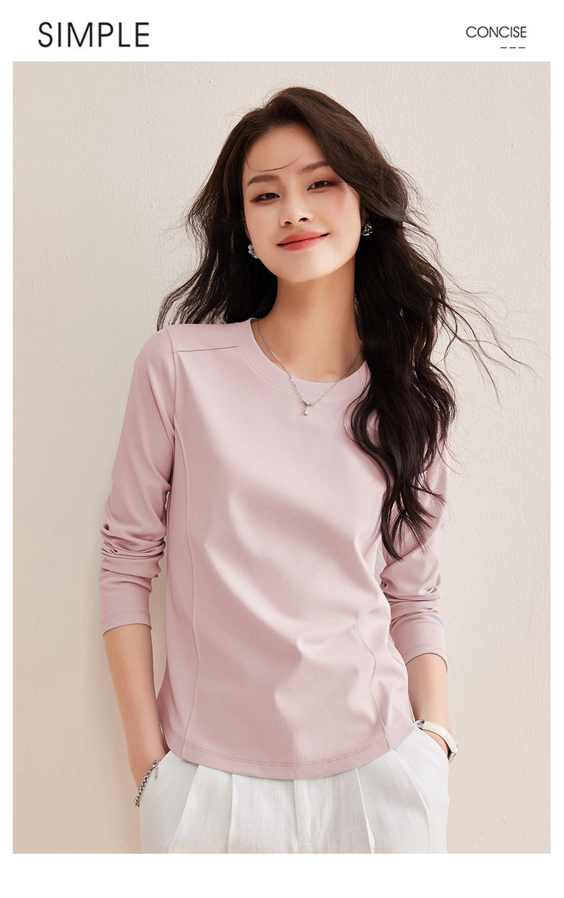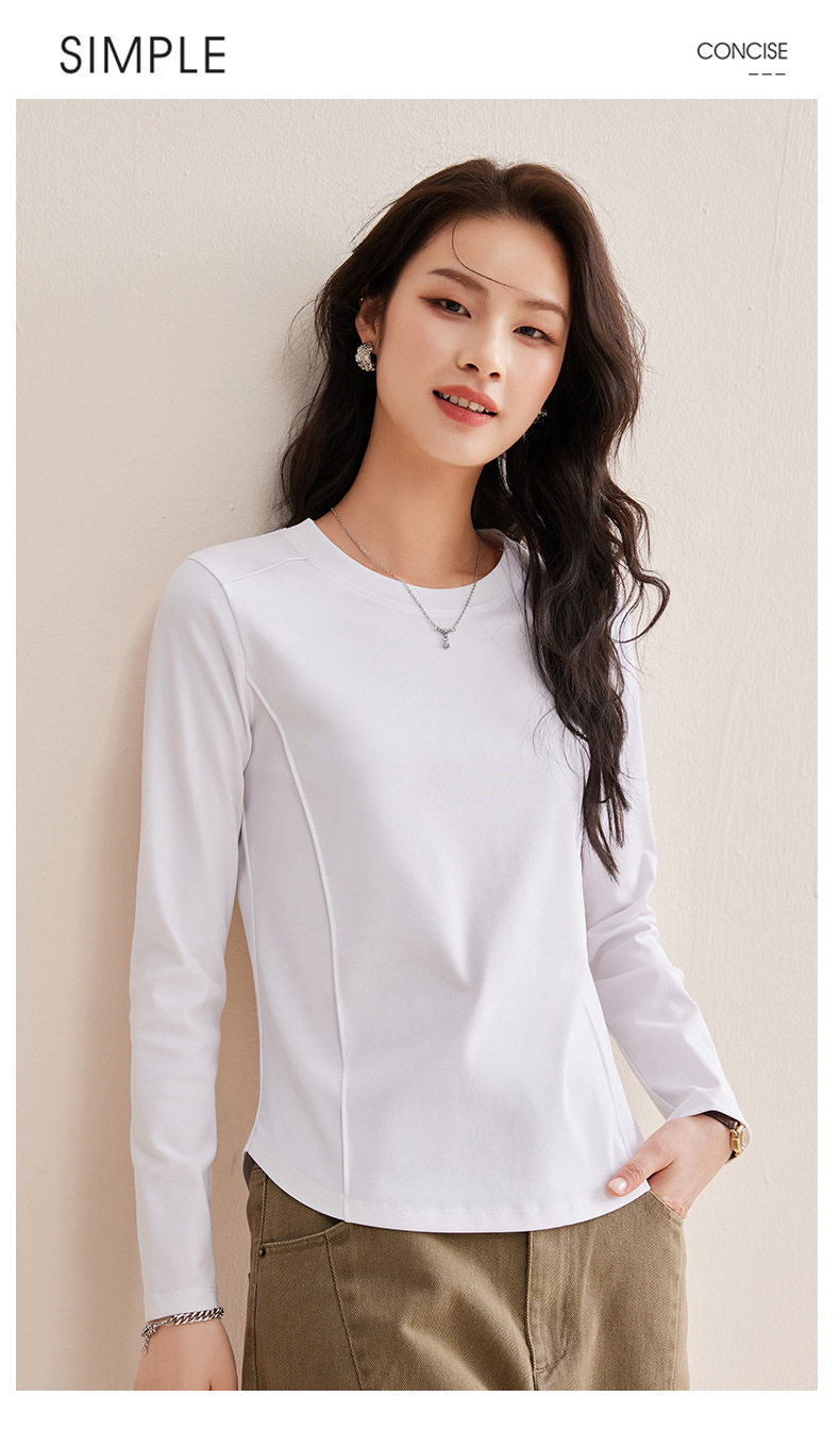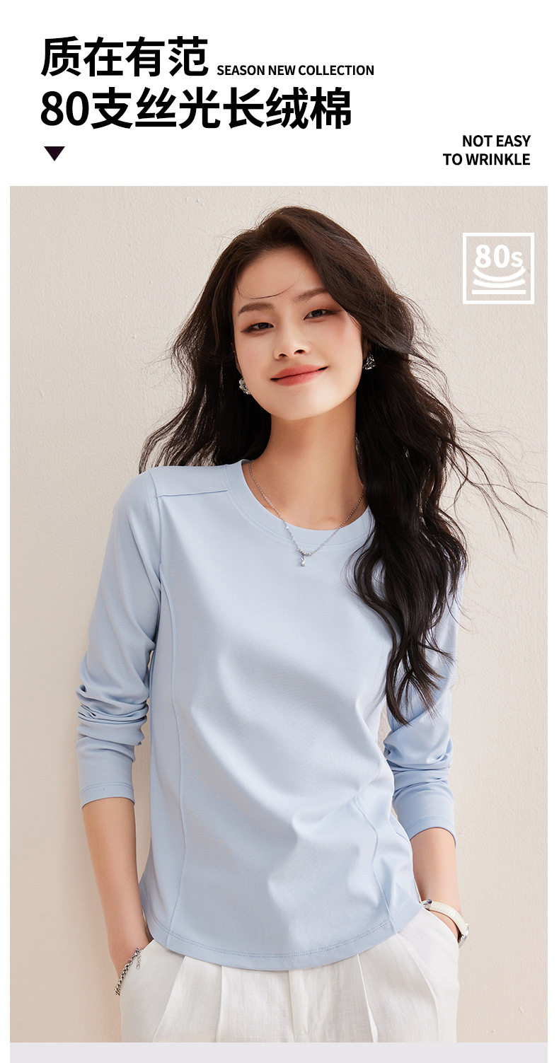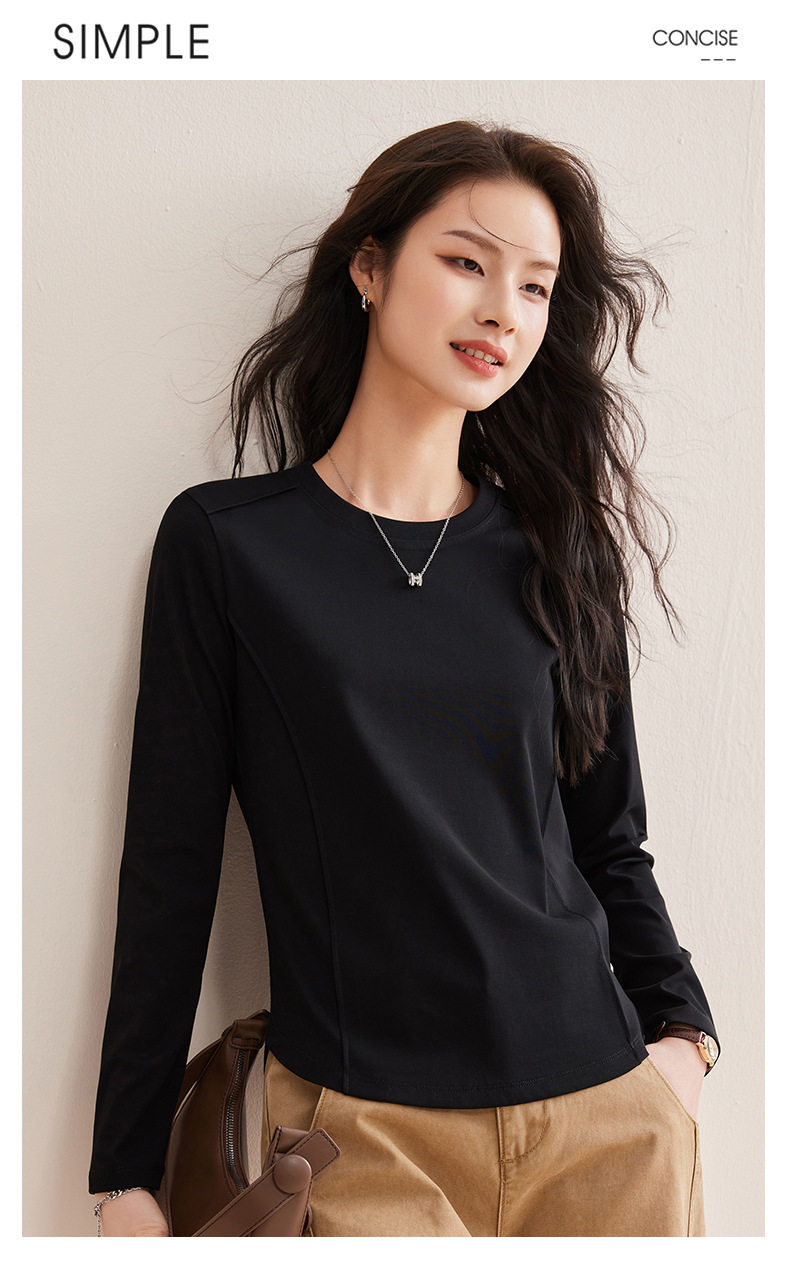 「自j」全新升级【铂金会员119/天猫159/差价40】(85442)洛诗琳鱼骨分割圆弧下摆长袖T2026春季新款圆领纯色打底上衣