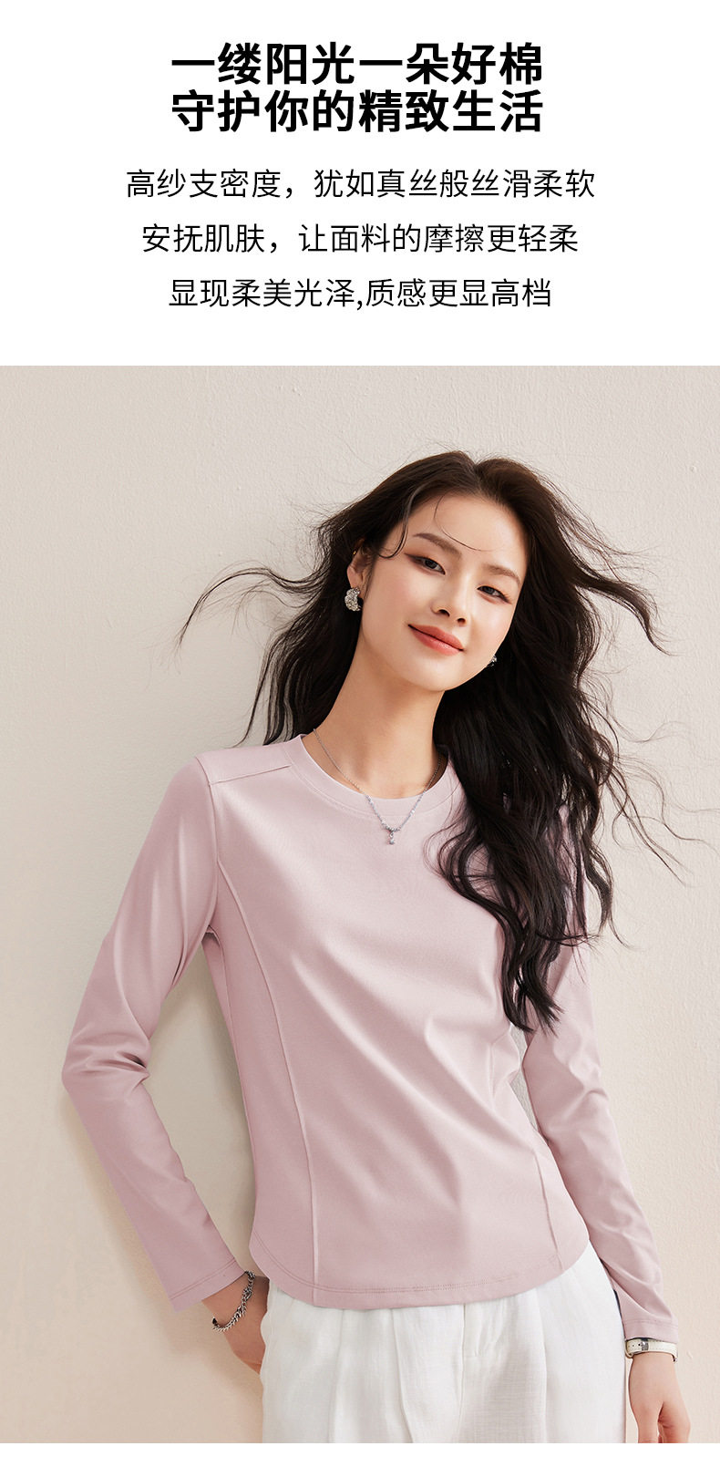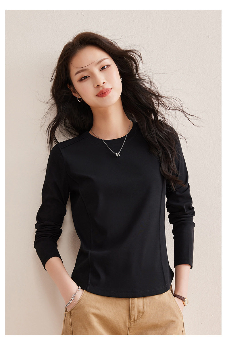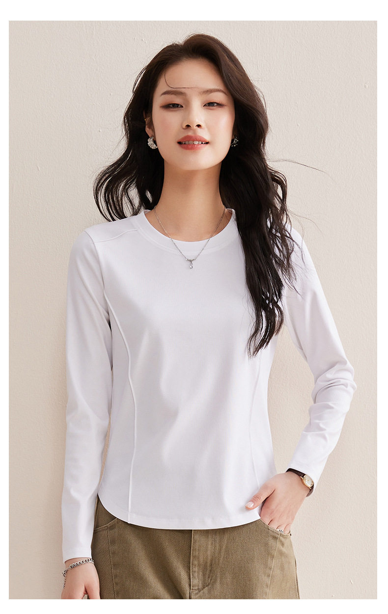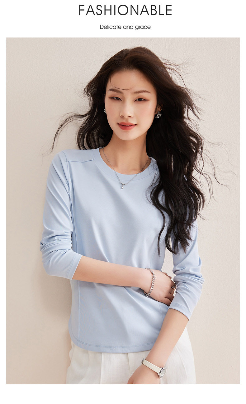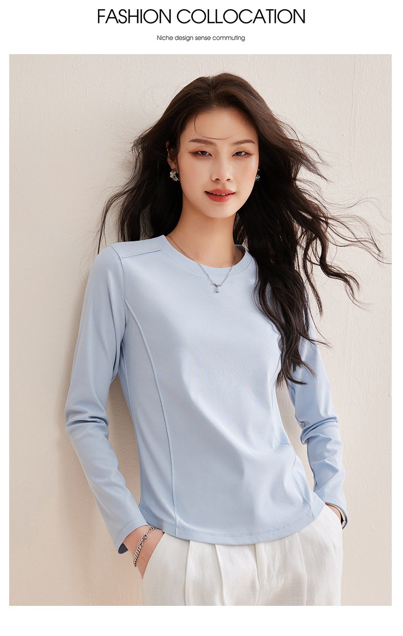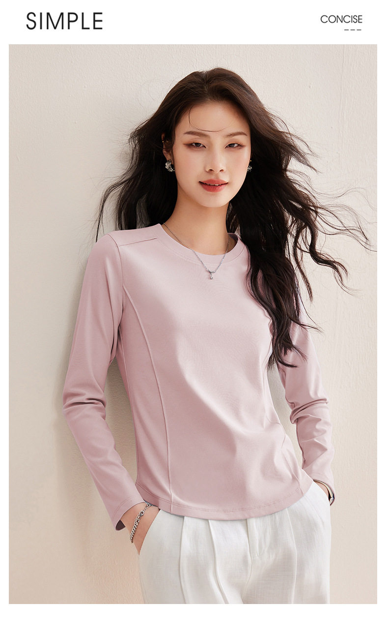 「自j」全新升级【铂金会员119/天猫159/差价40】(85442)洛诗琳鱼骨分割圆弧下摆长袖T2026春季新款圆领纯色打底上衣