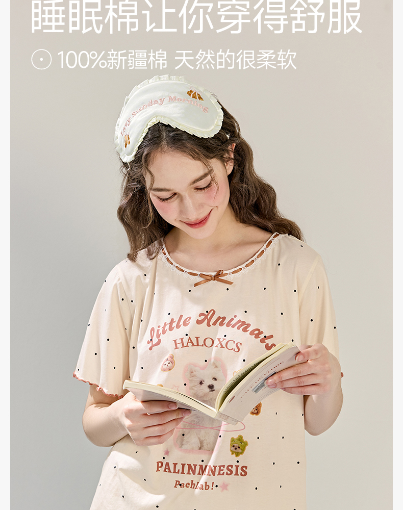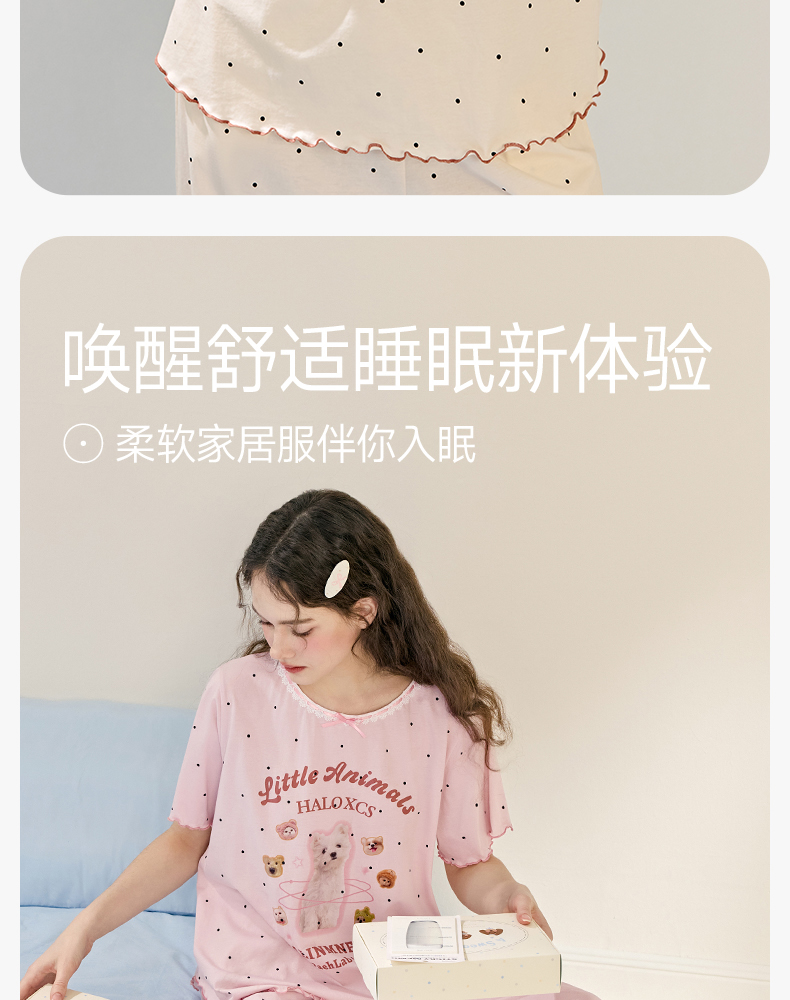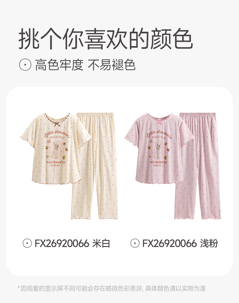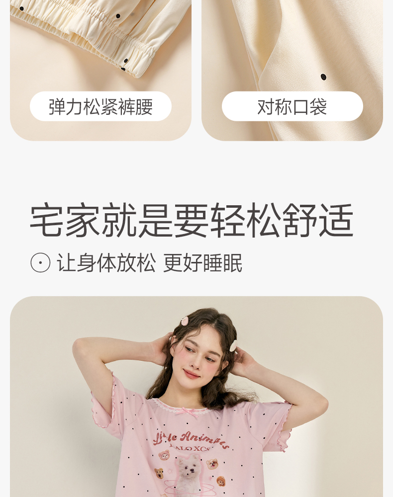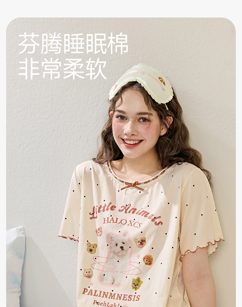 商场同款新品芬腾睡衣女夏季纯棉短袖圆领套装宽松女款全棉家居服