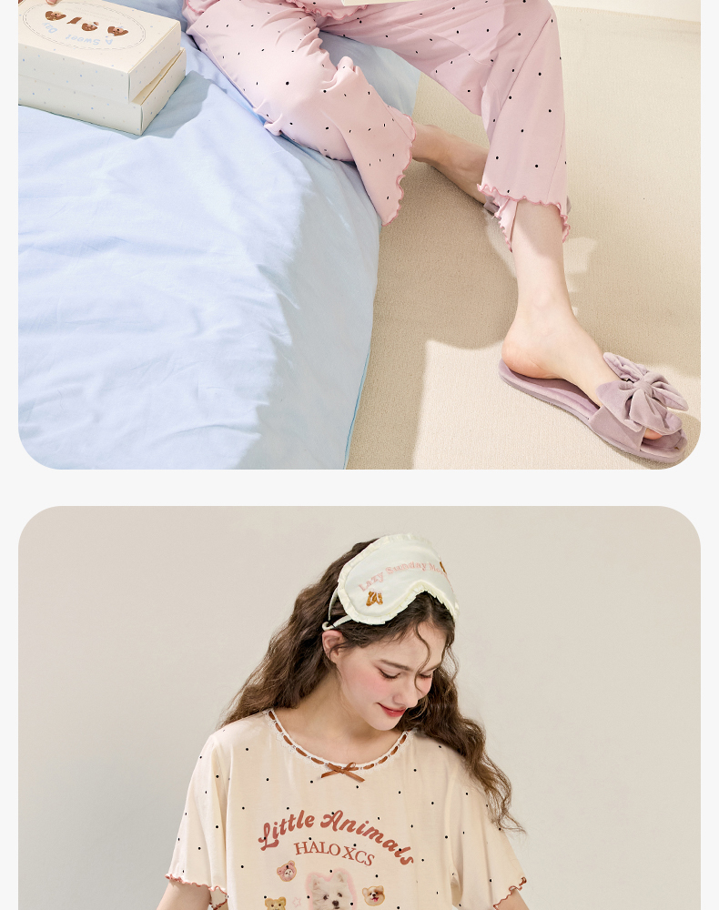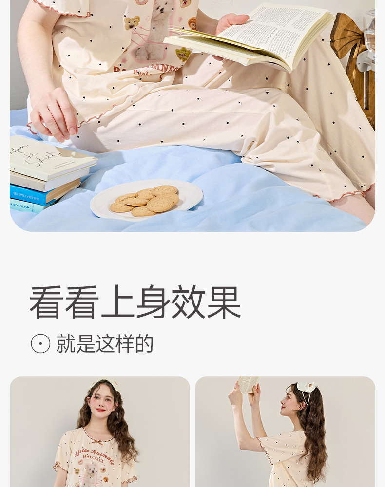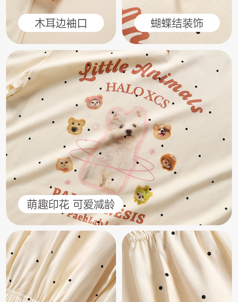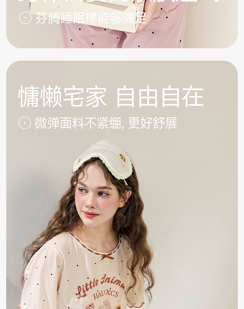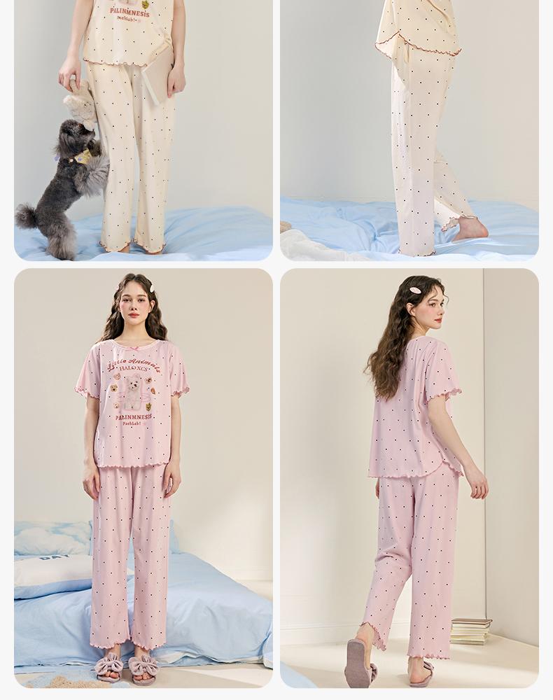 商场同款新品芬腾睡衣女夏季纯棉短袖圆领套装宽松女款全棉家居服