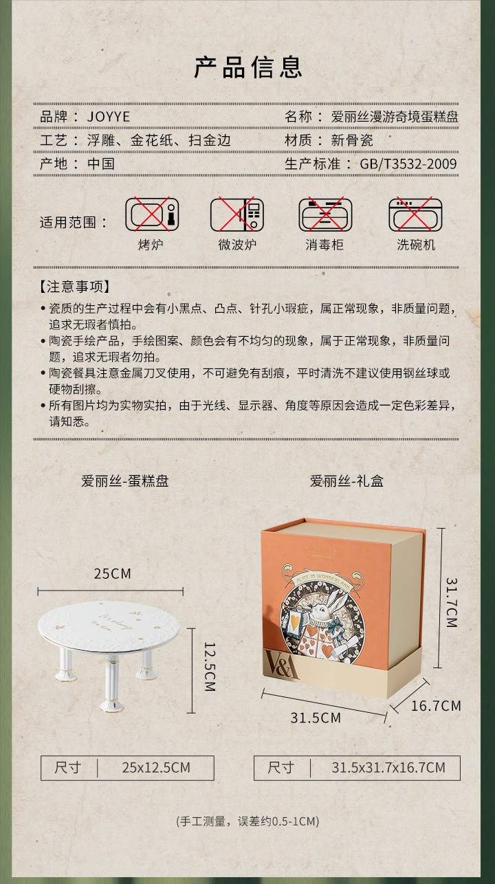 JOYYE爱丽丝-蛋糕盘用陶瓷浮雕简约点心架高档礼盒