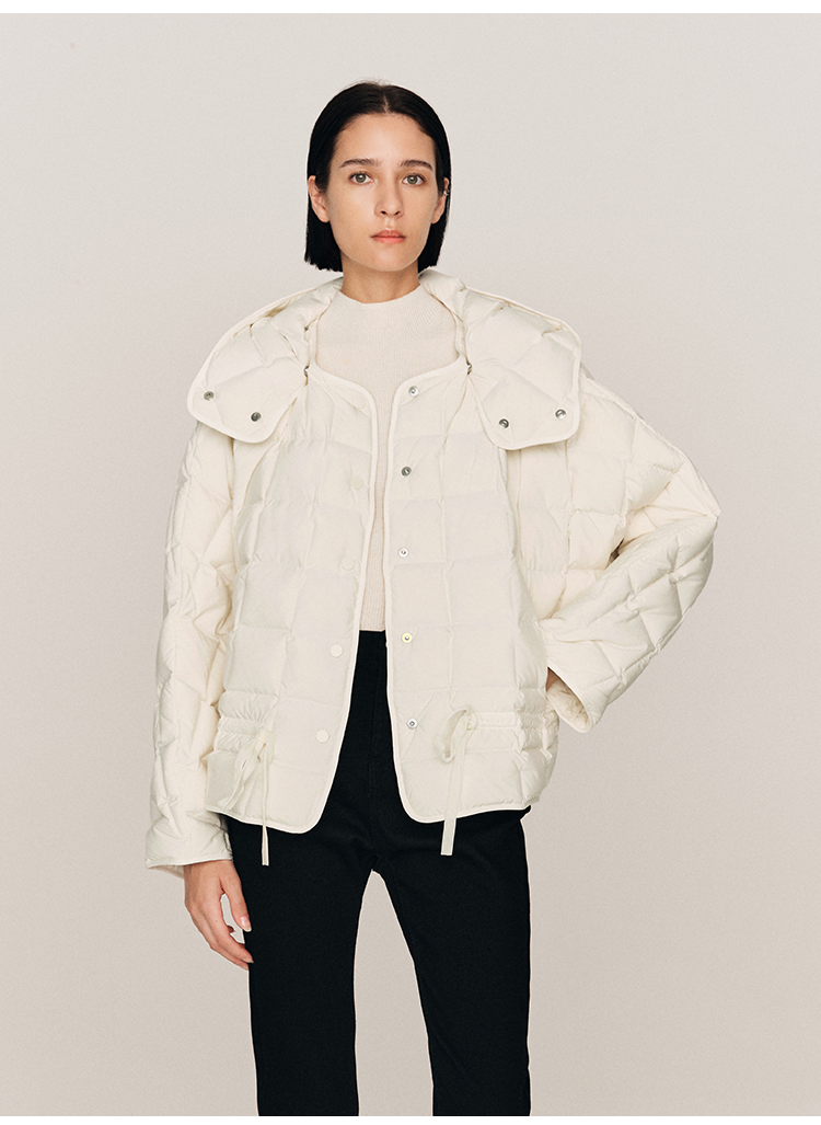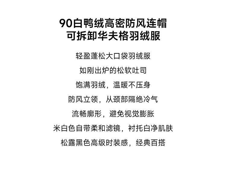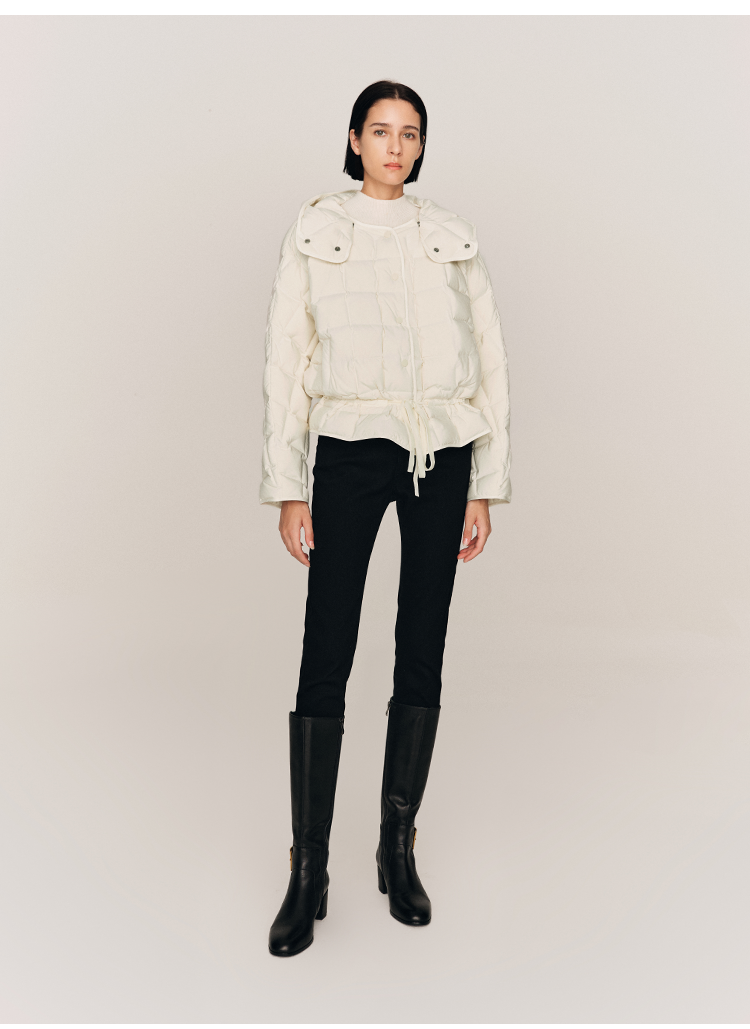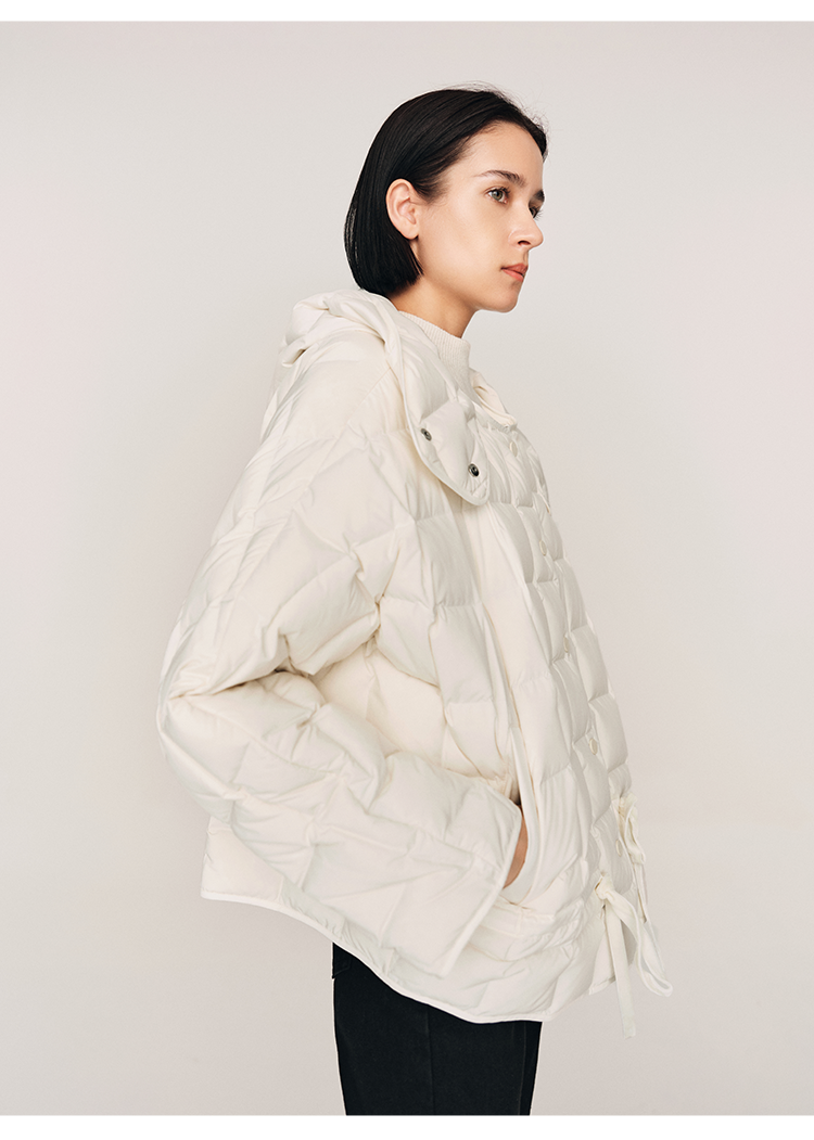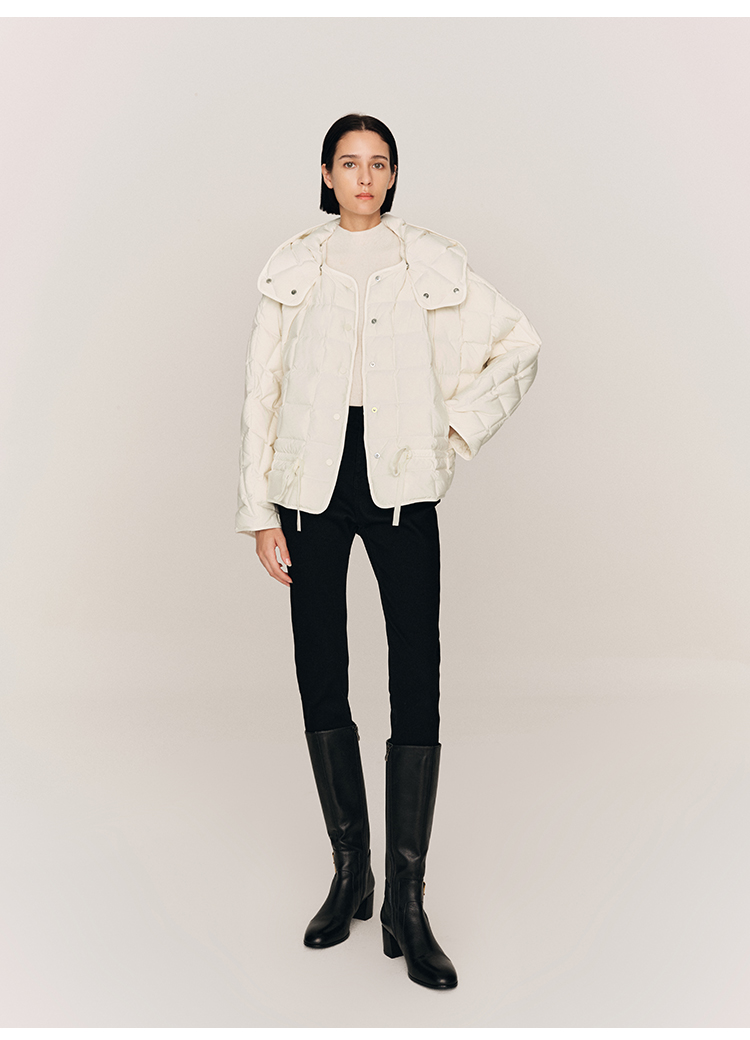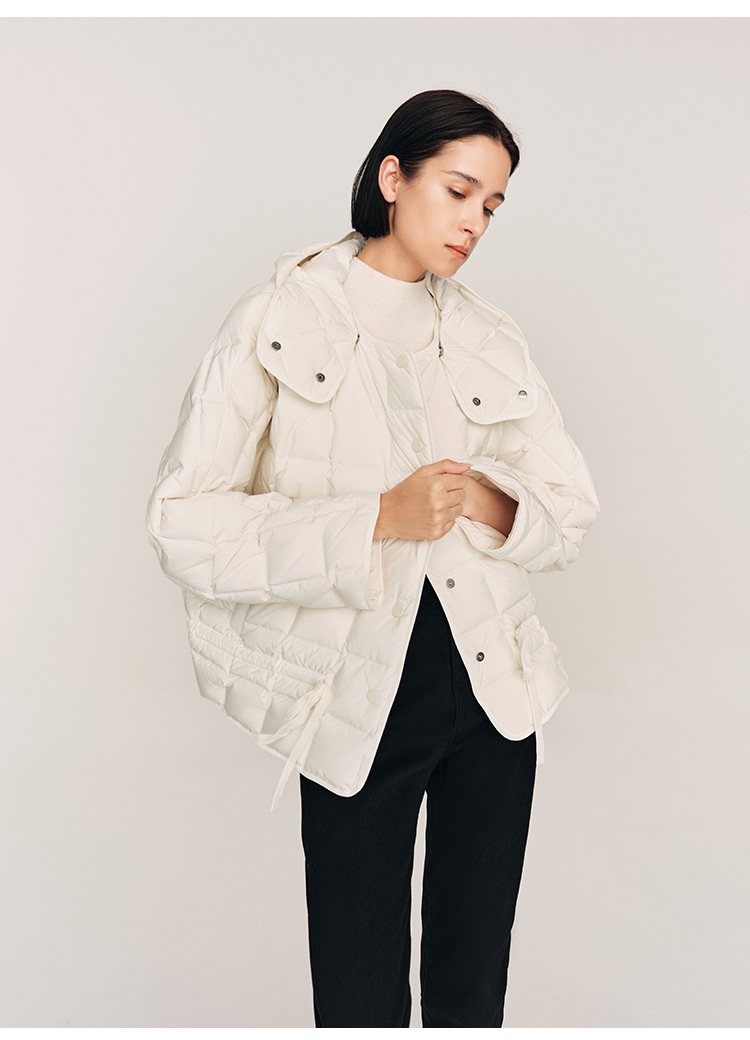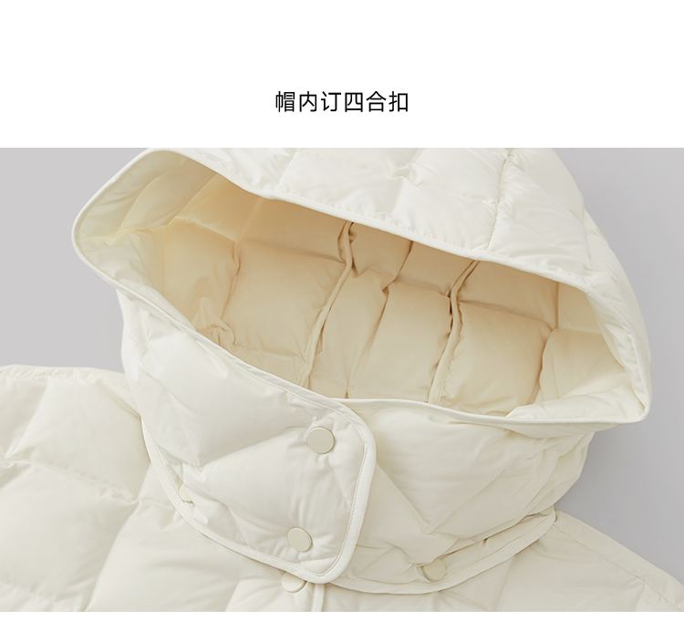 90白鸭绒高密防风连帽可拆卸华夫格羽绒服FO475523O