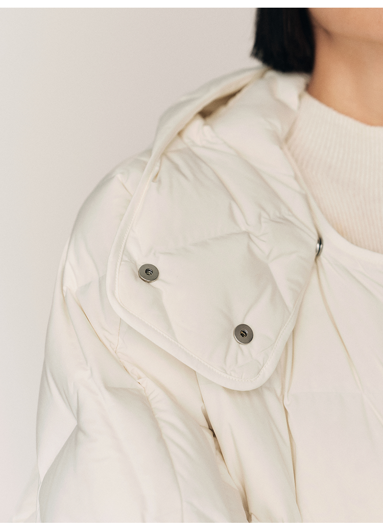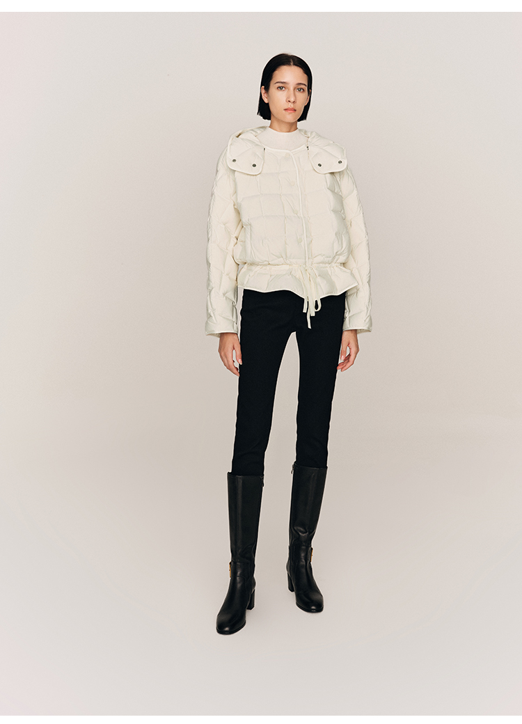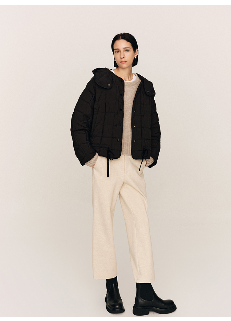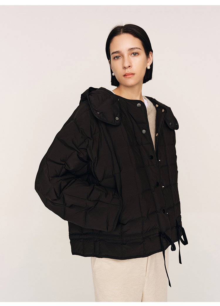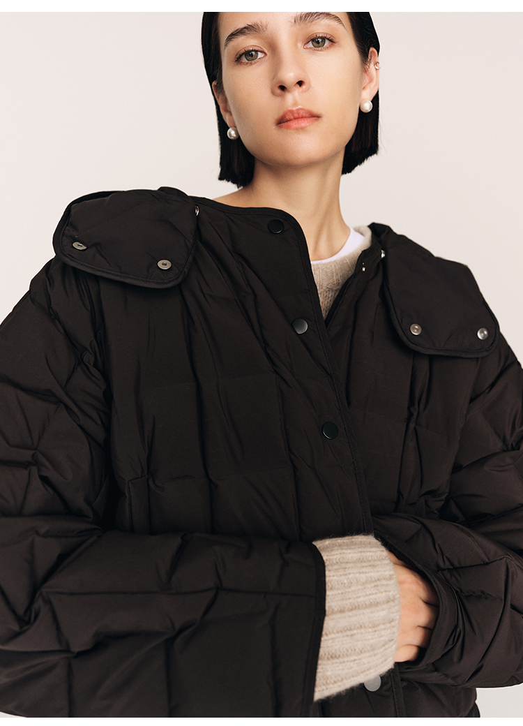90白鸭绒高密防风连帽可拆卸华夫格羽绒服FO475523O