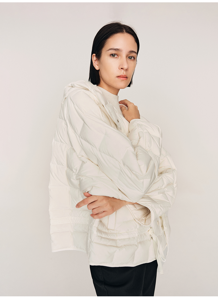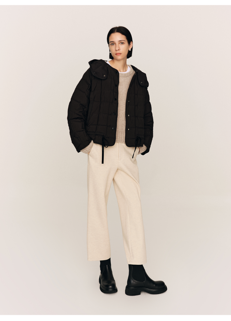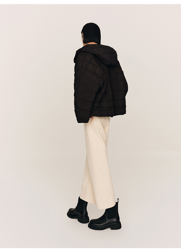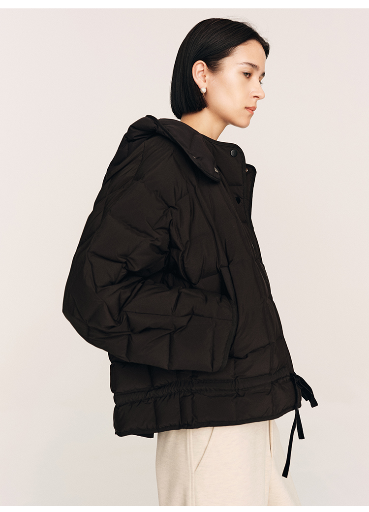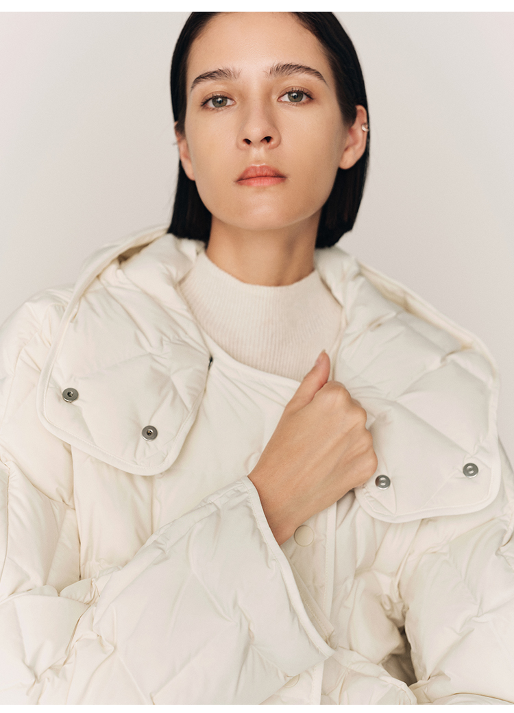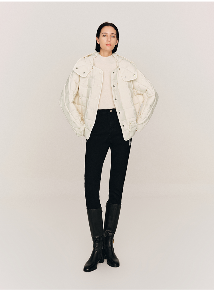 90白鸭绒高密防风连帽可拆卸华夫格羽绒服FO475523O